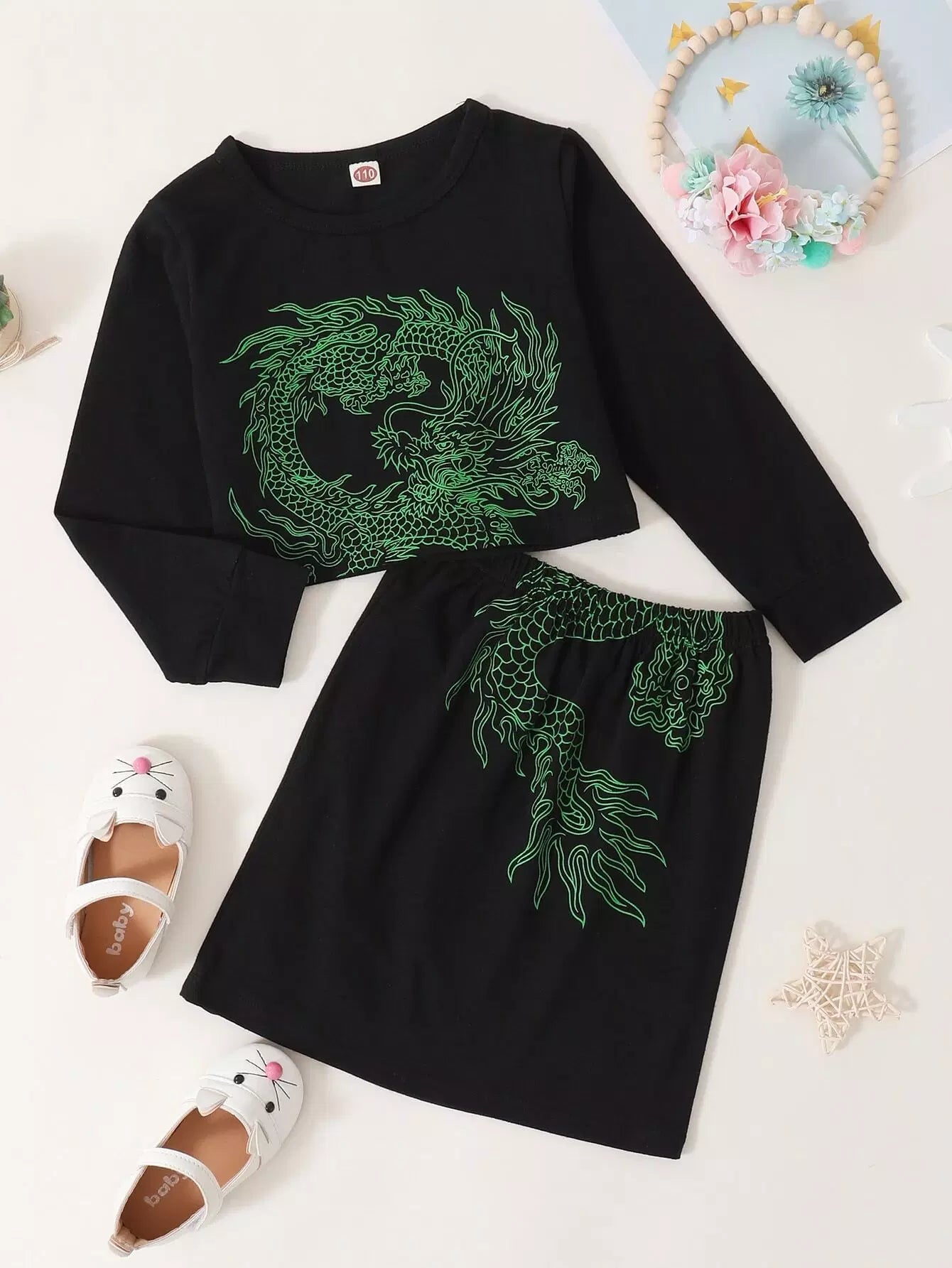 Girls Chinese Dragon Graphic Sweatshirt & Skirt