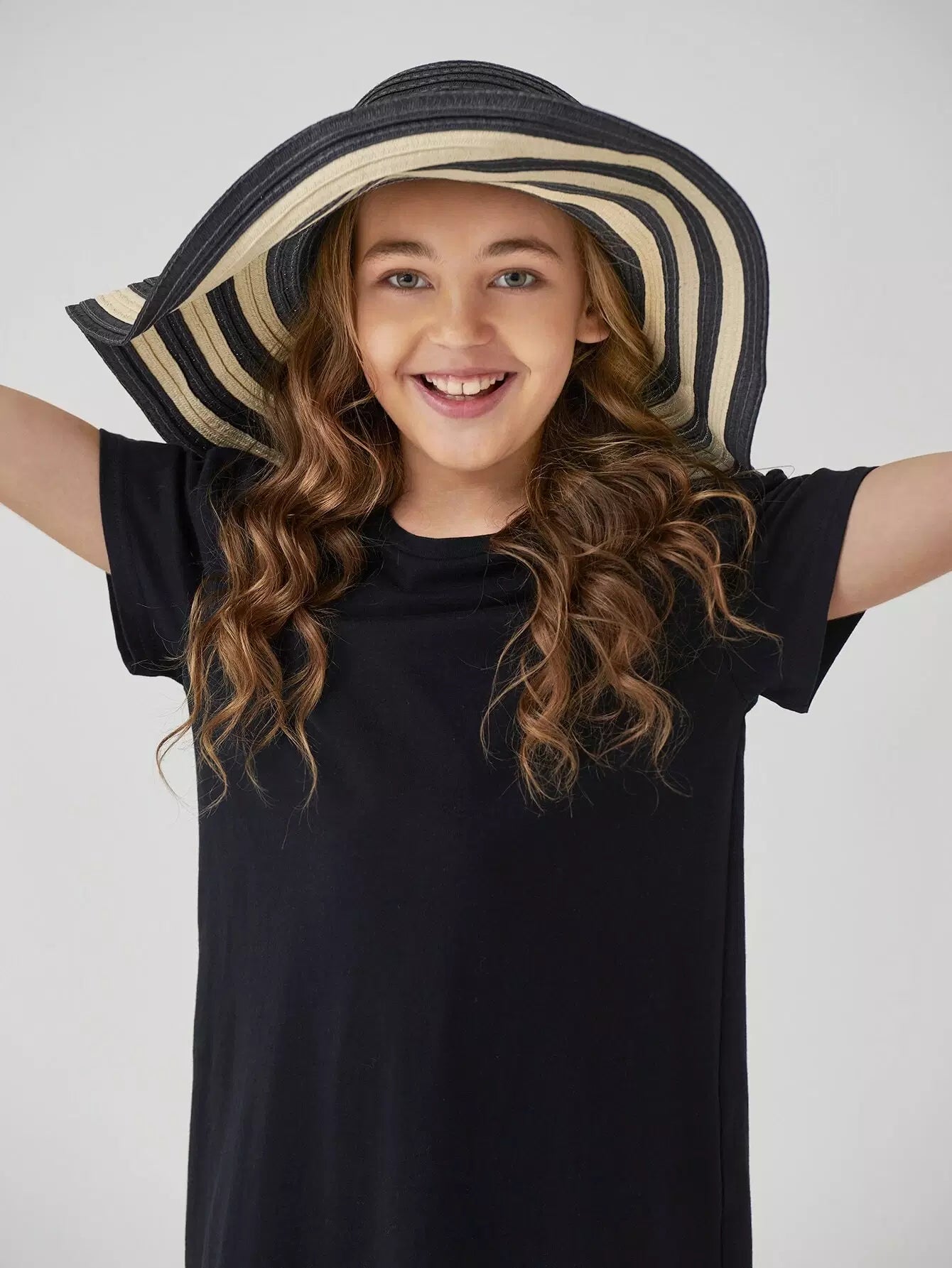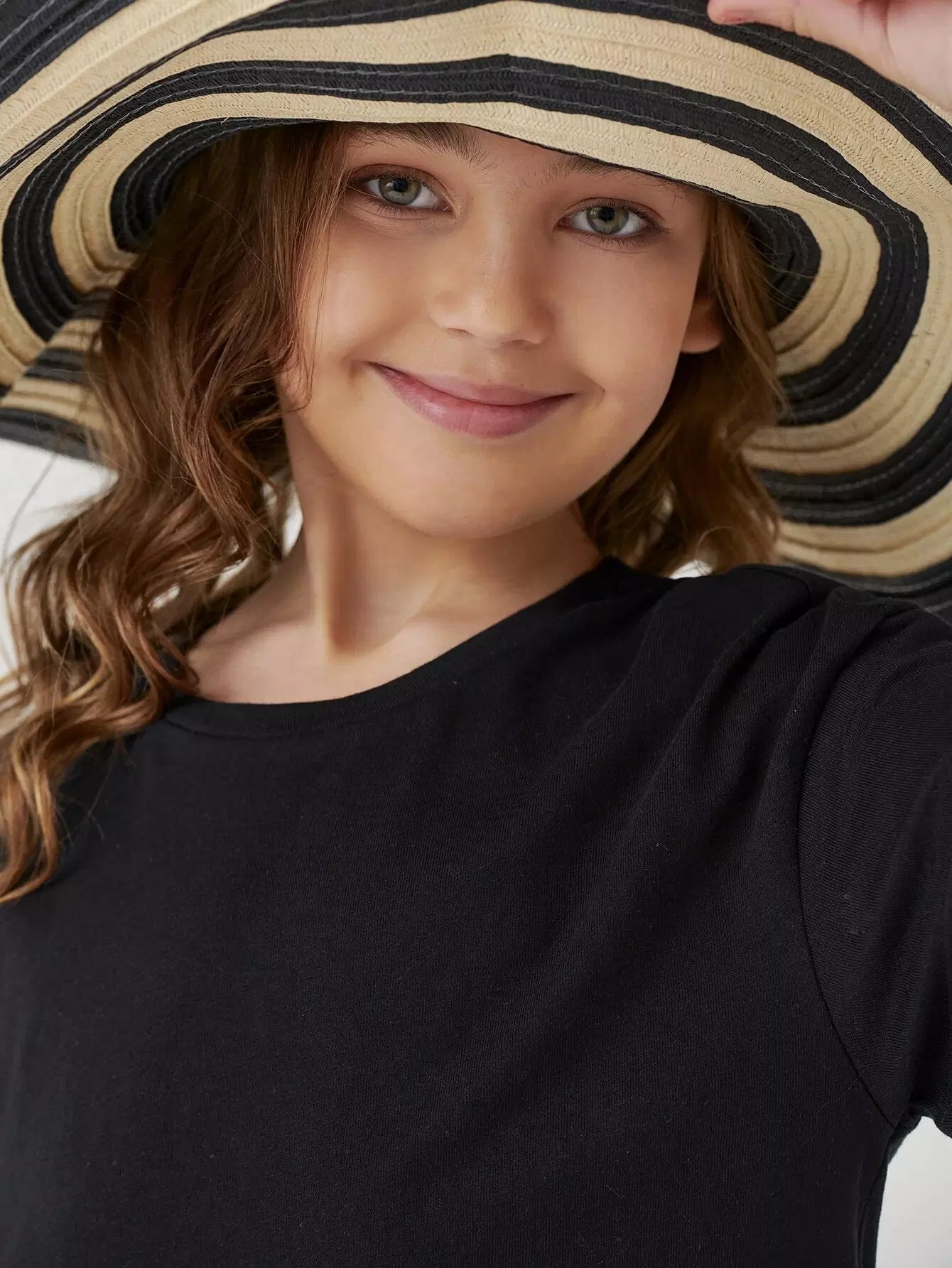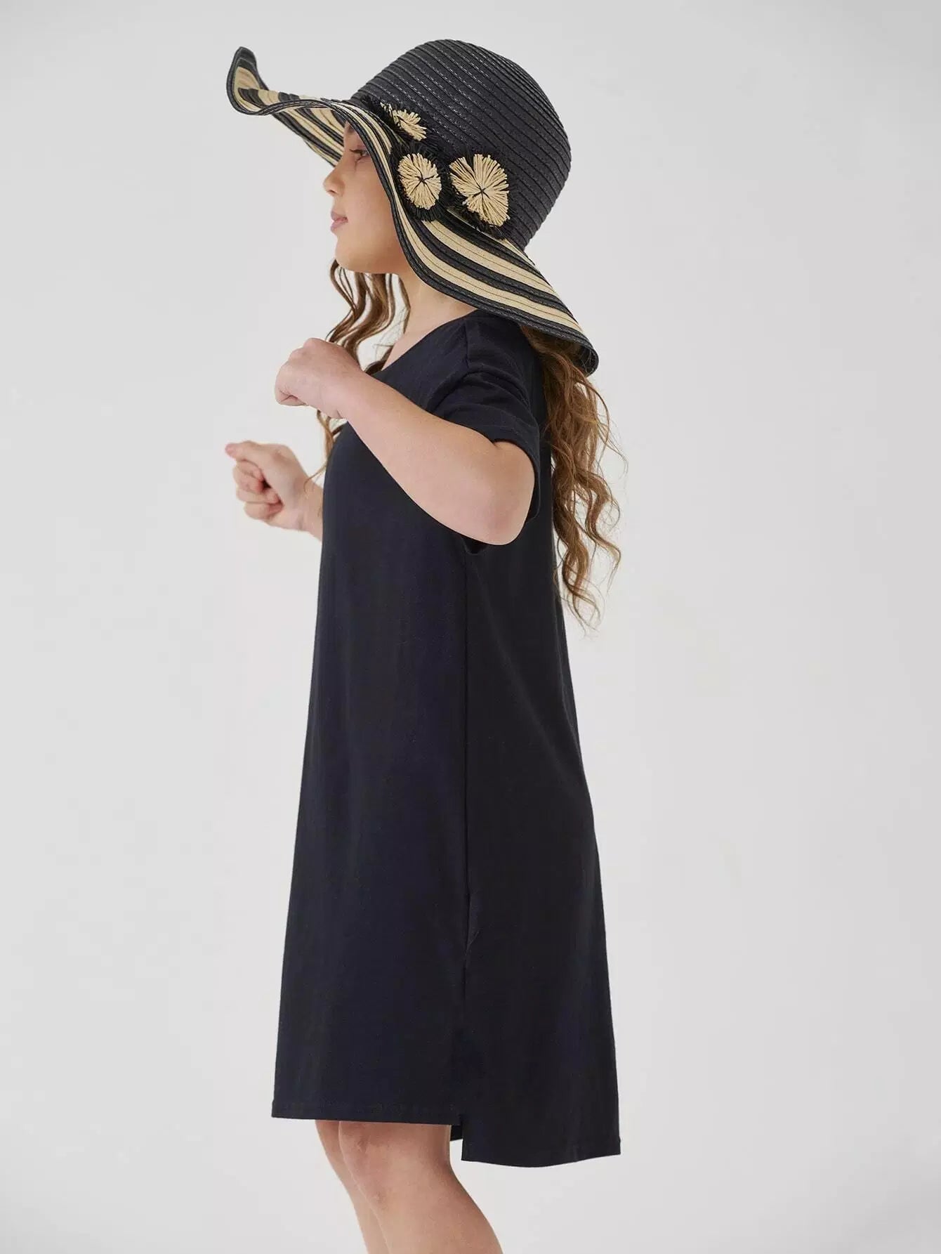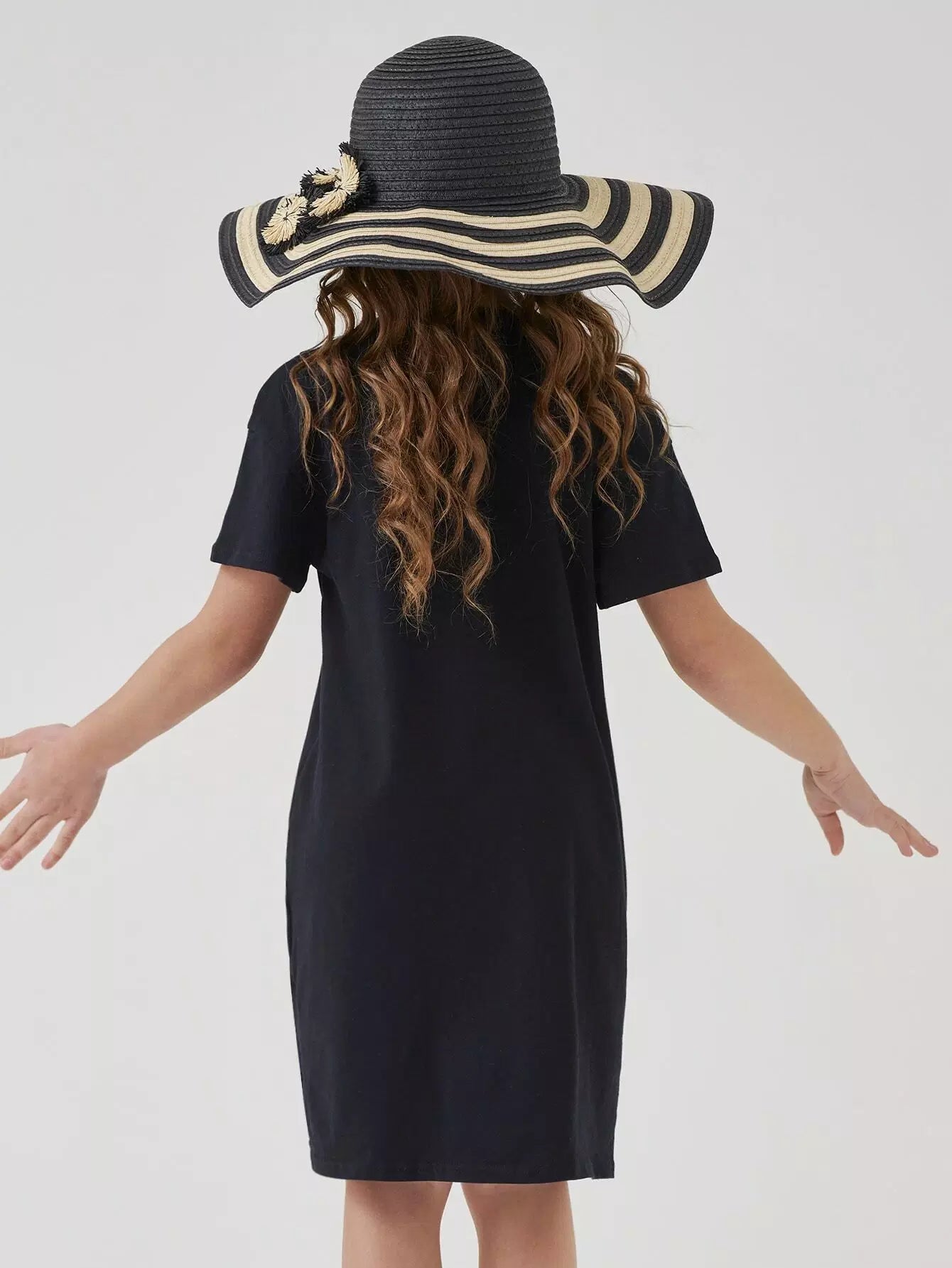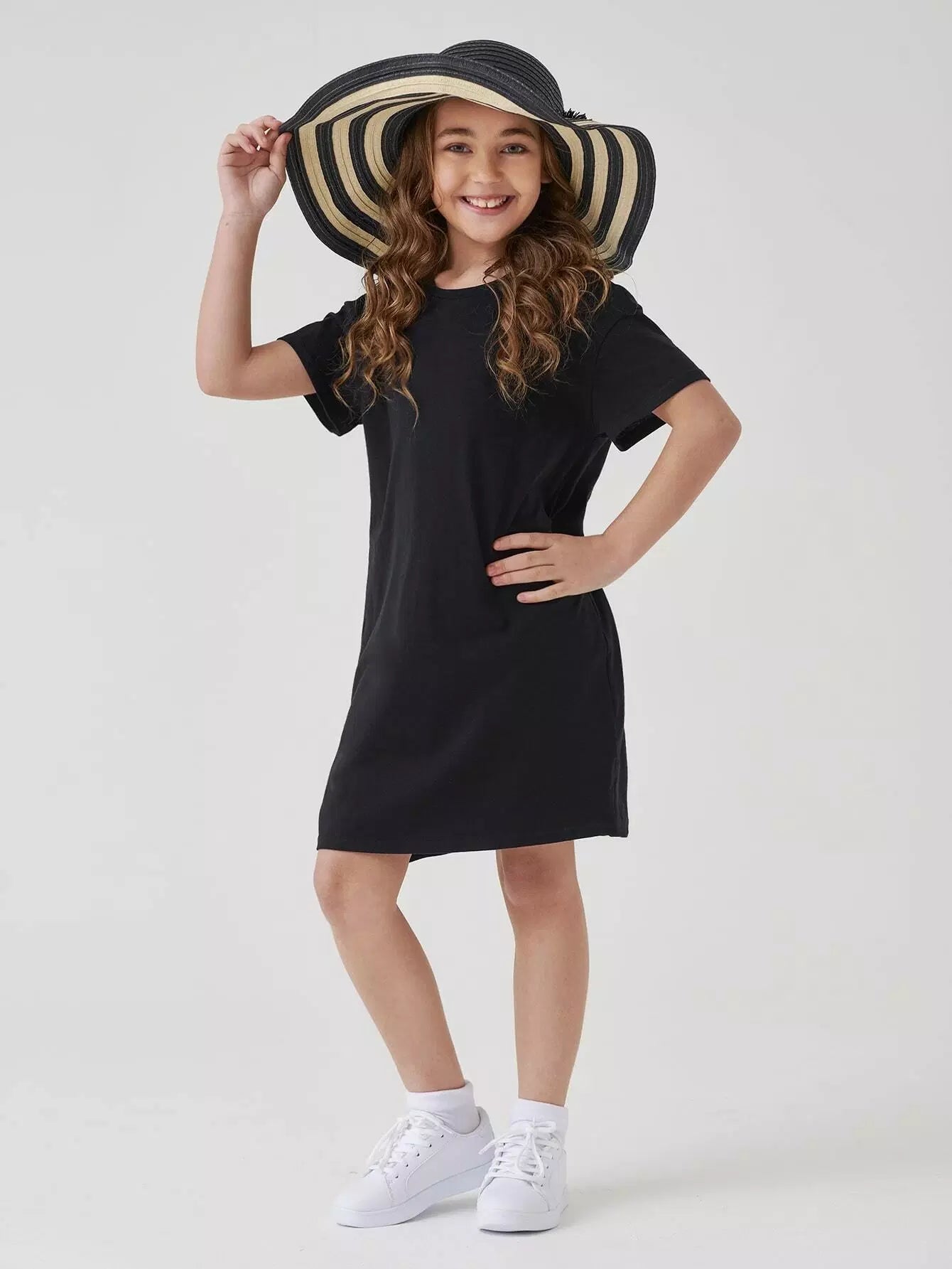 Girls Cotton Solid Drop Shoulder Tee Dress