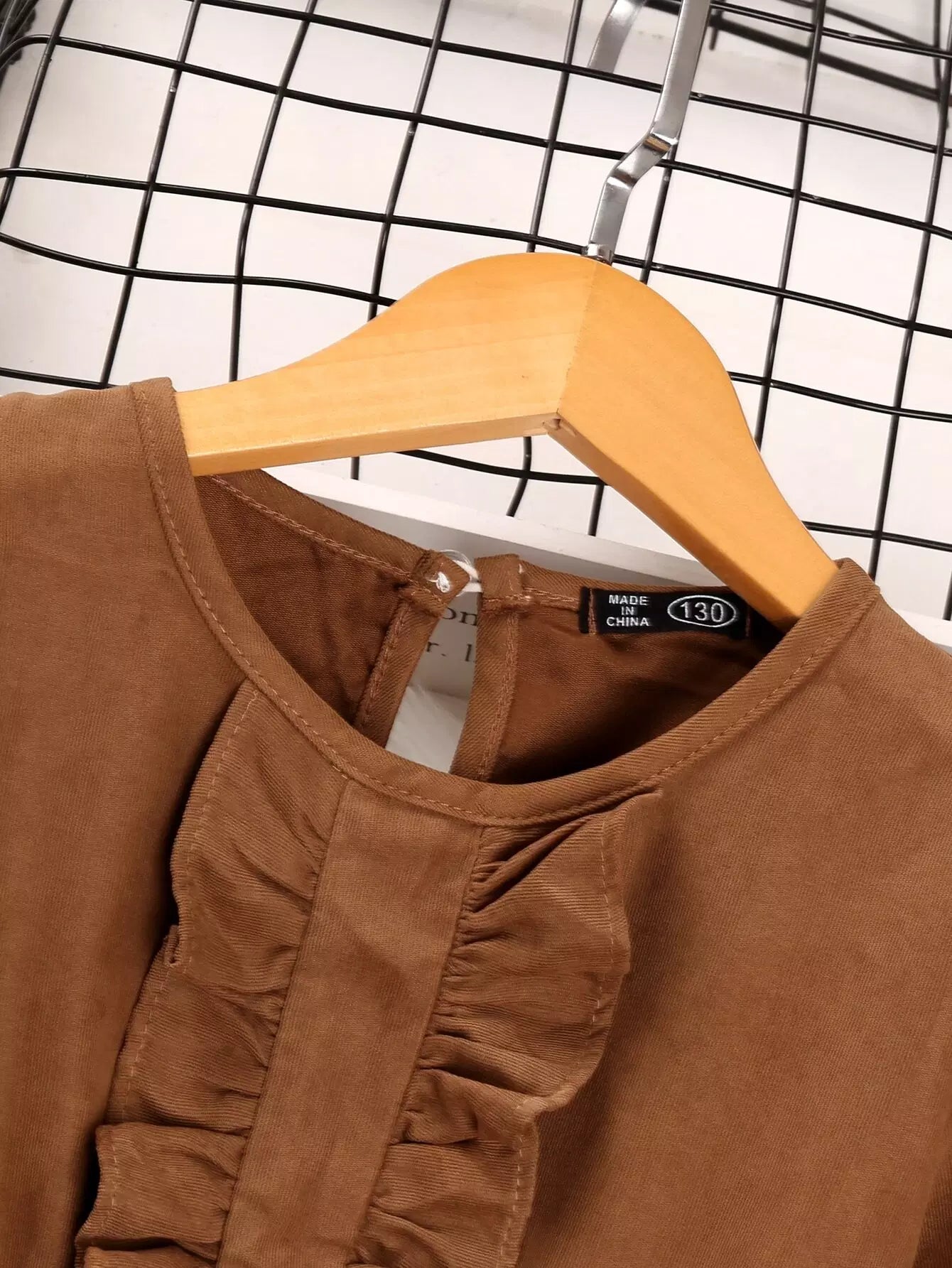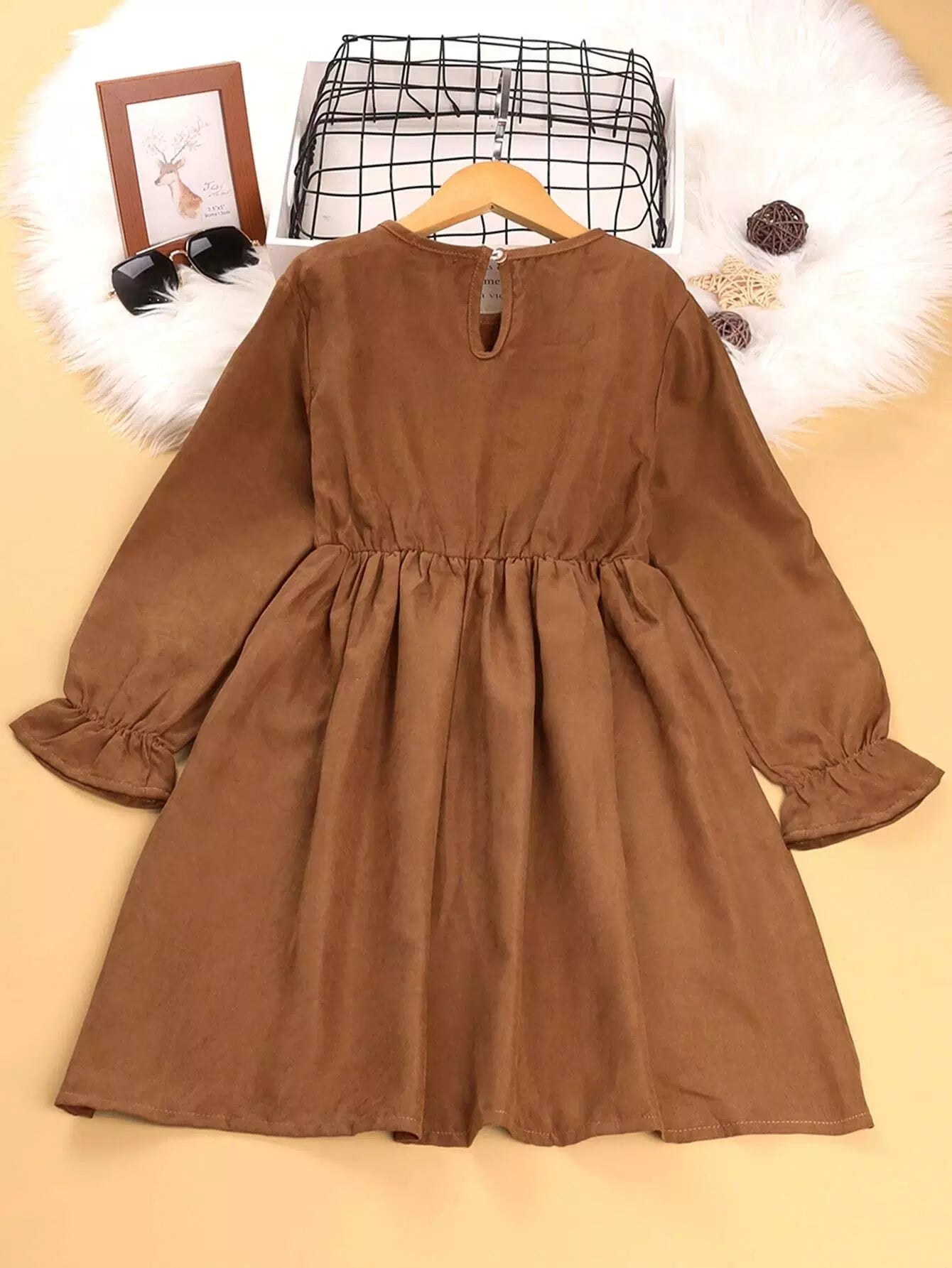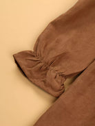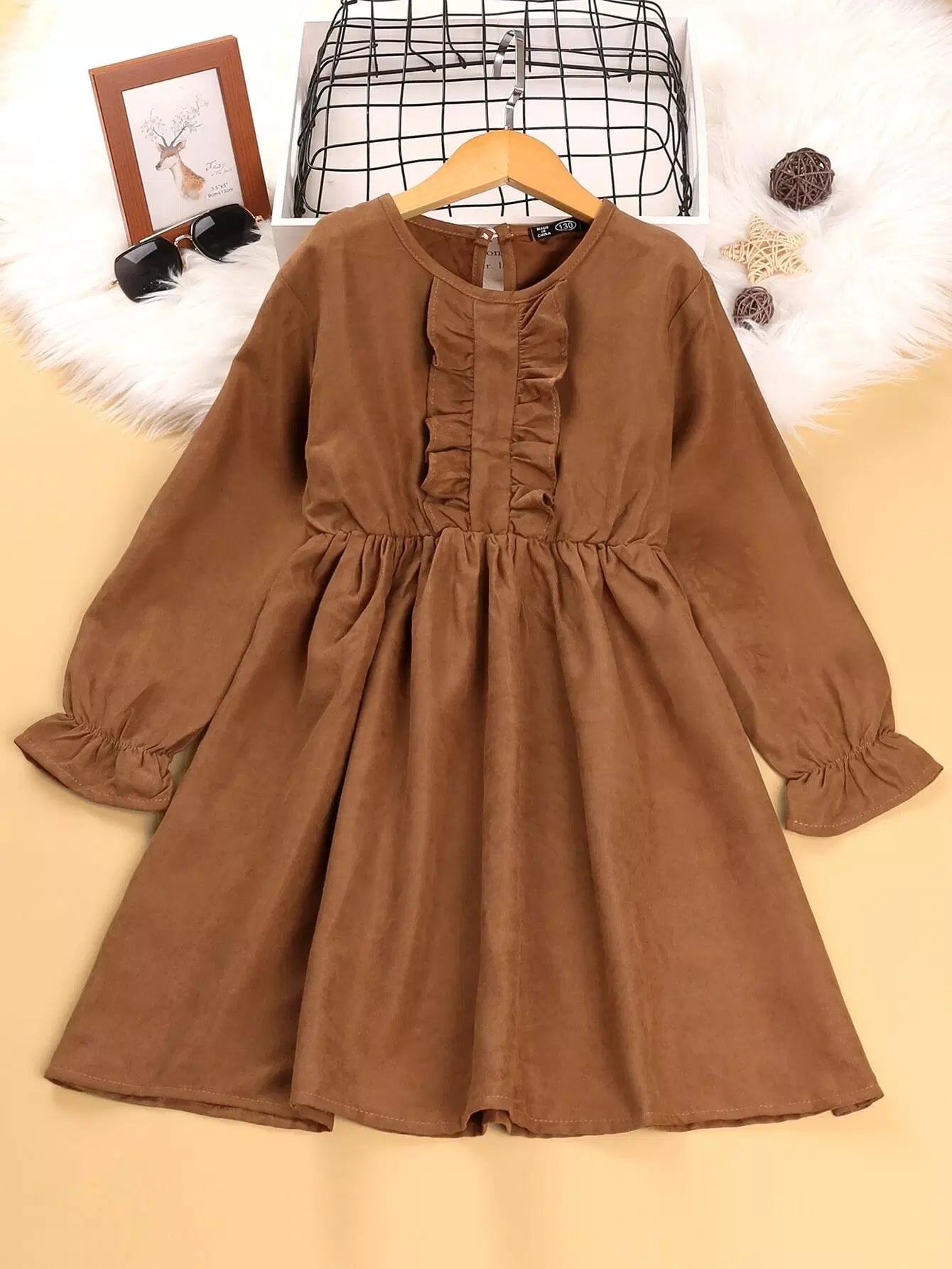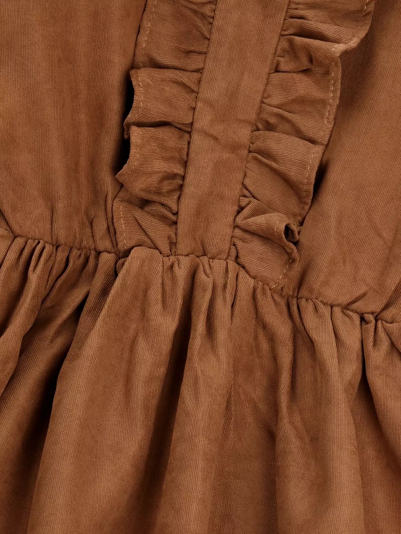 Girls Flounce Sleeve Ruffle Trim Corduroy Dress