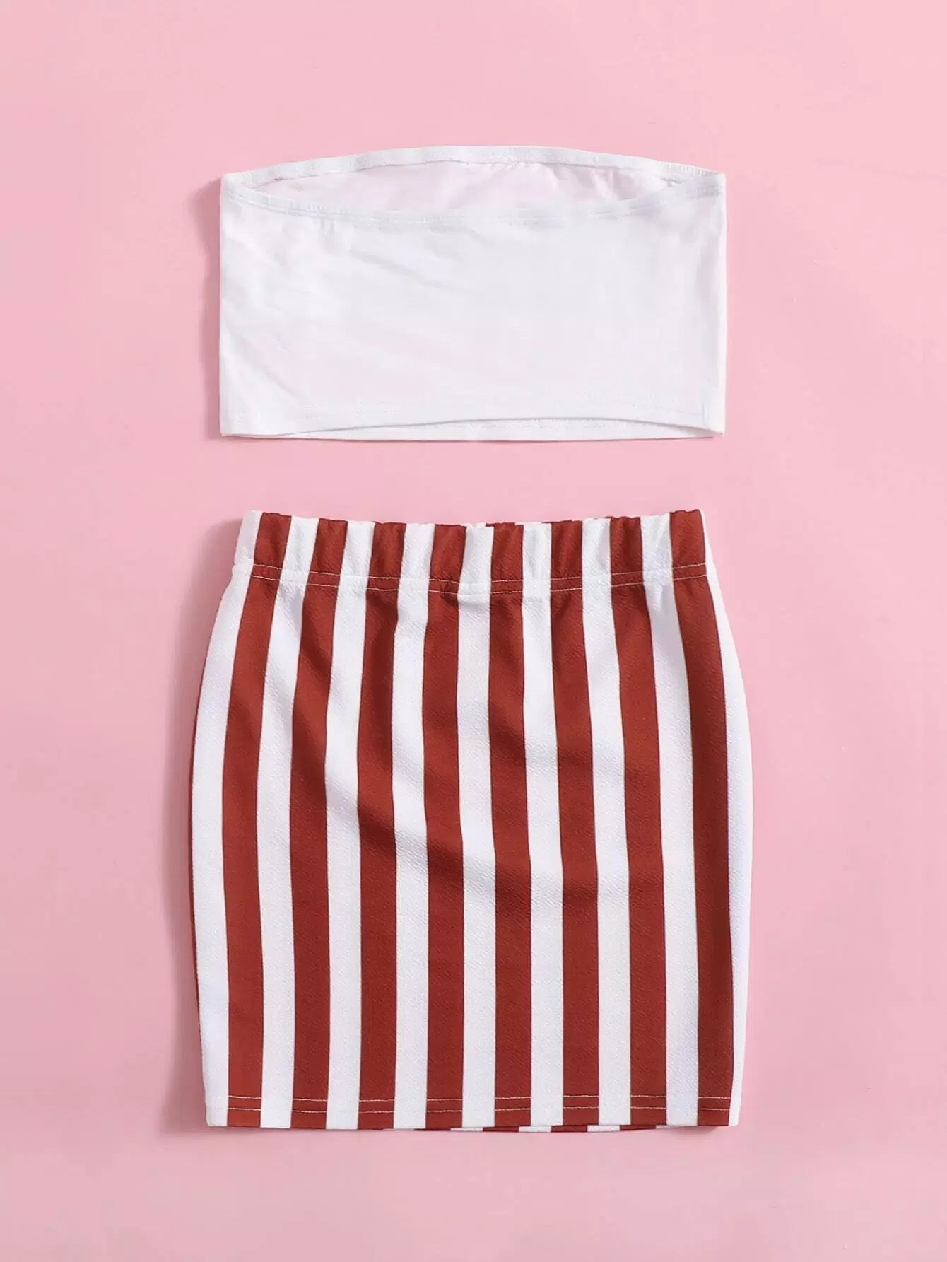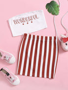 Girls Letter & Star Print Tube Top and Striped Skirt Set