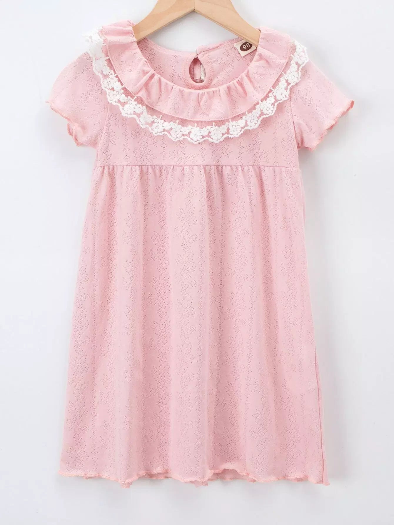 Toddler Girls Contrast Lace Ruffle Trim Sleep Dress