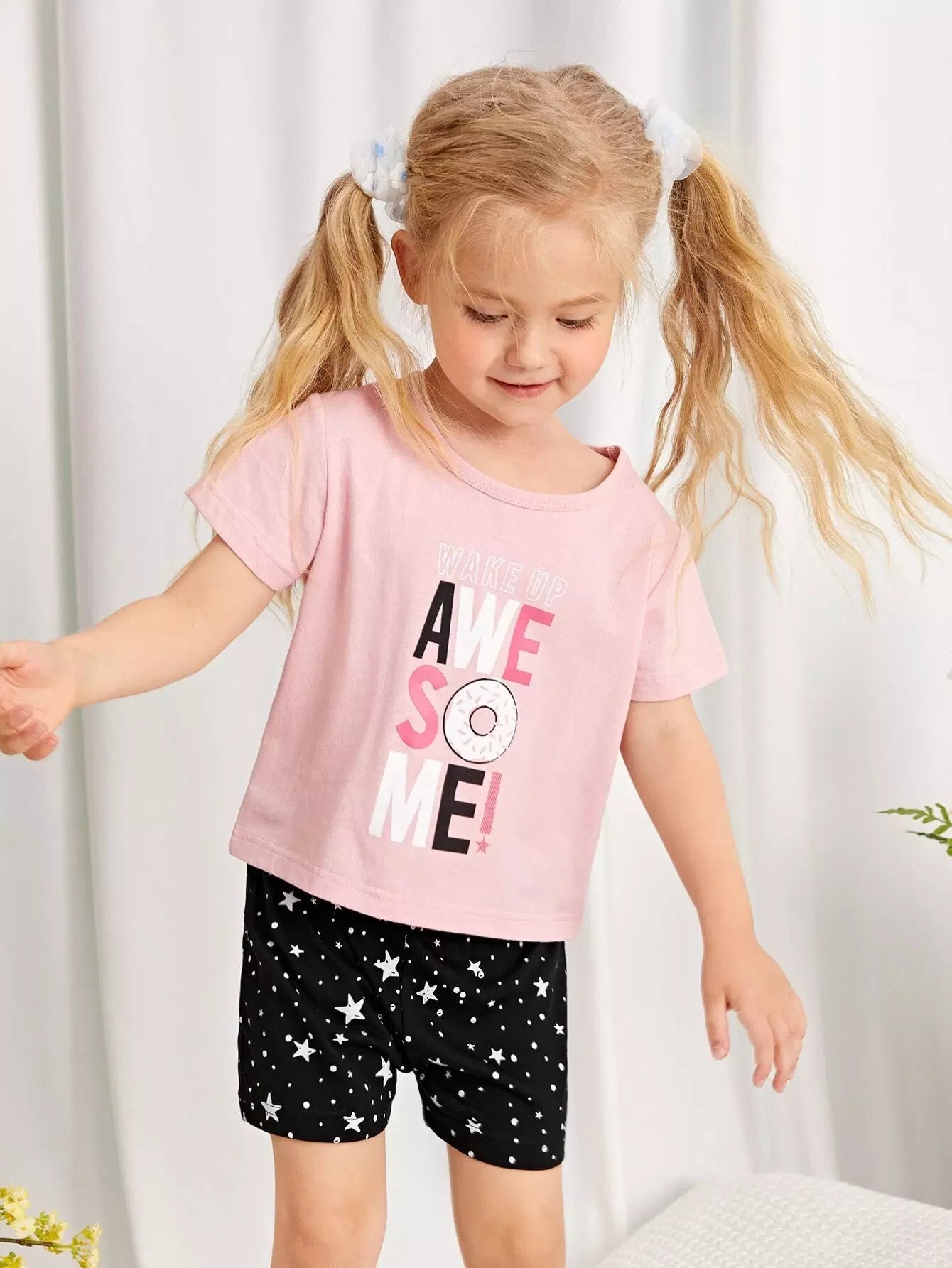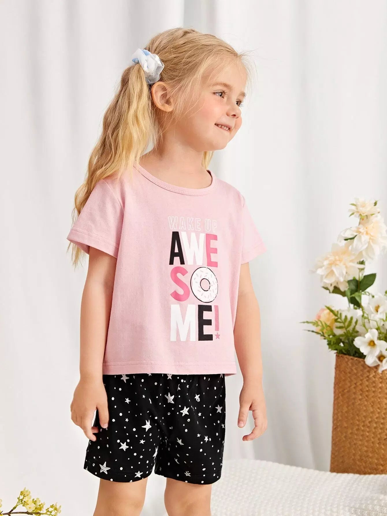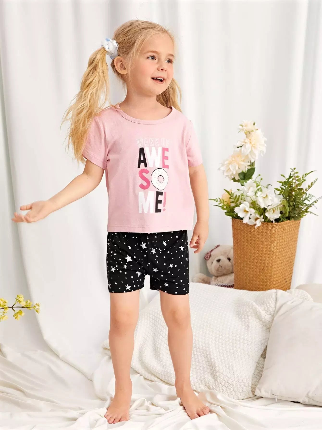 Toddler Girls Star & Slogan Graphic PJ Set