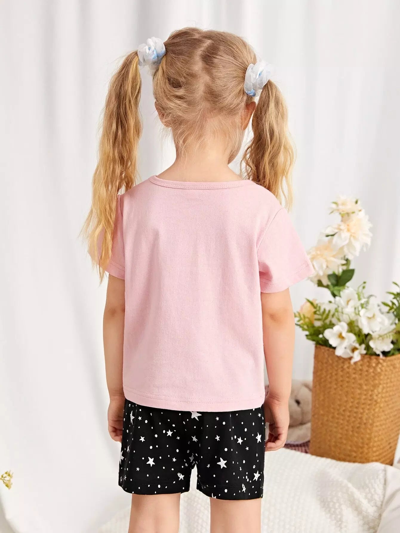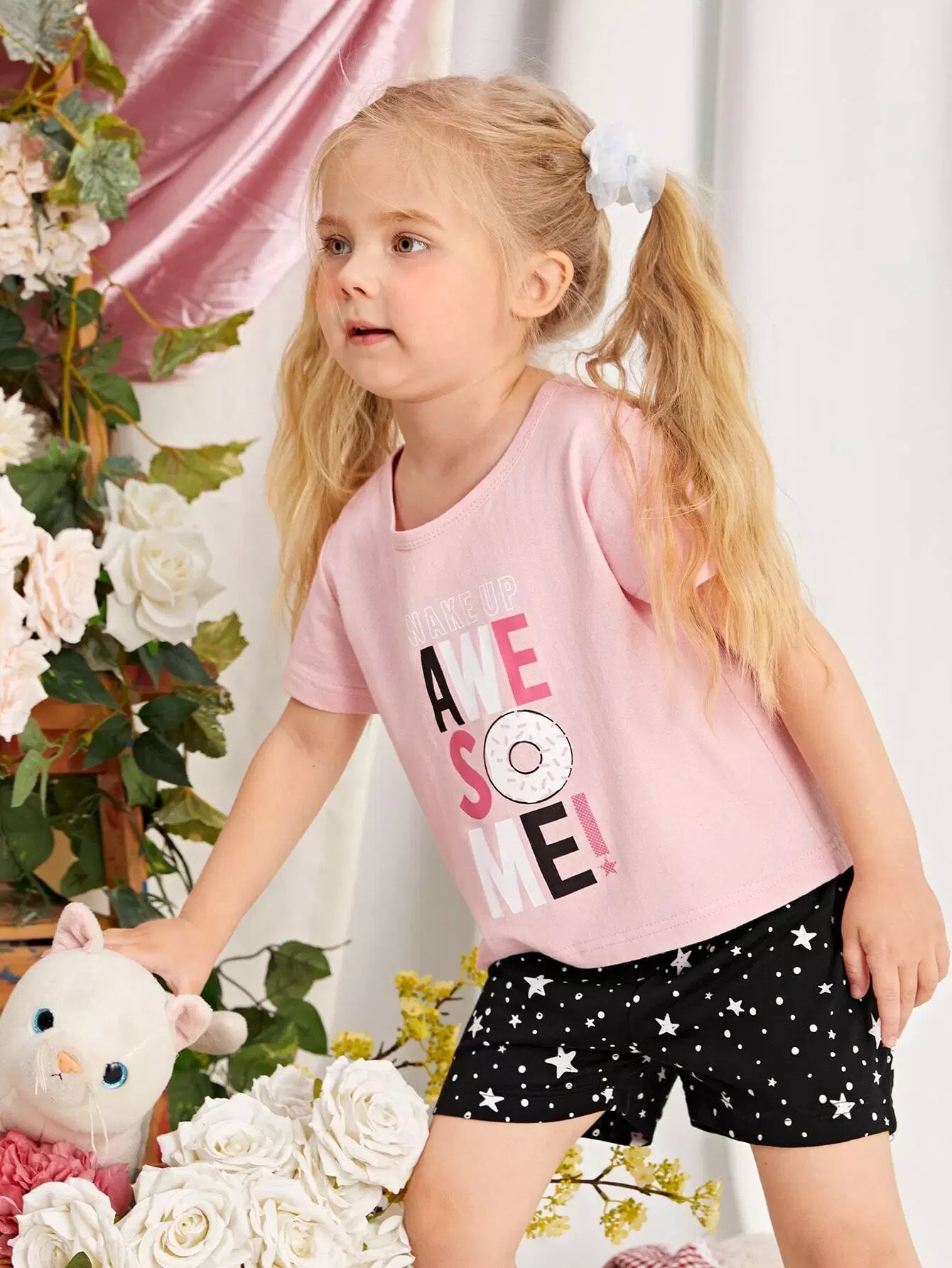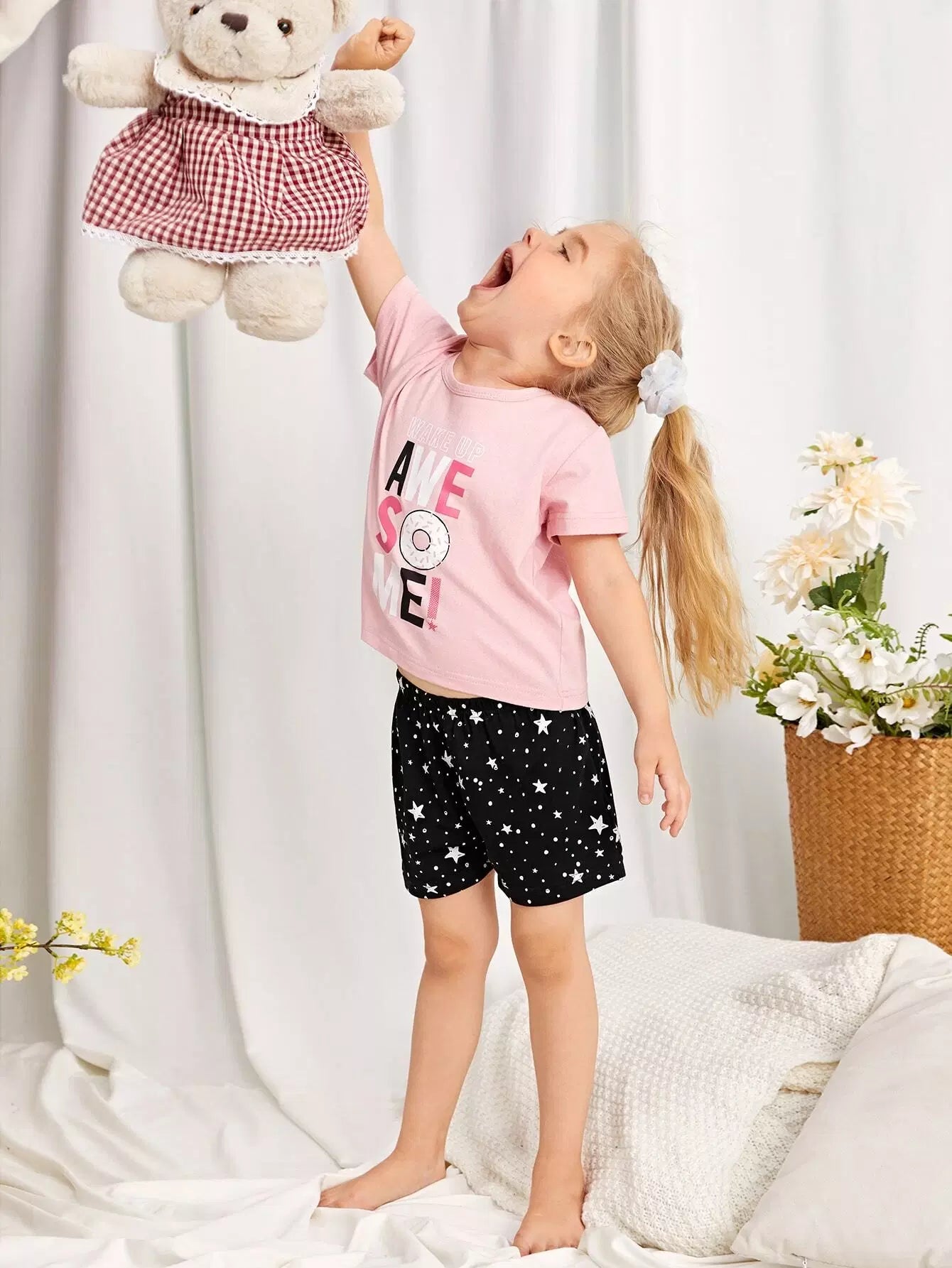 Toddler Girls Star & Slogan Graphic PJ Set