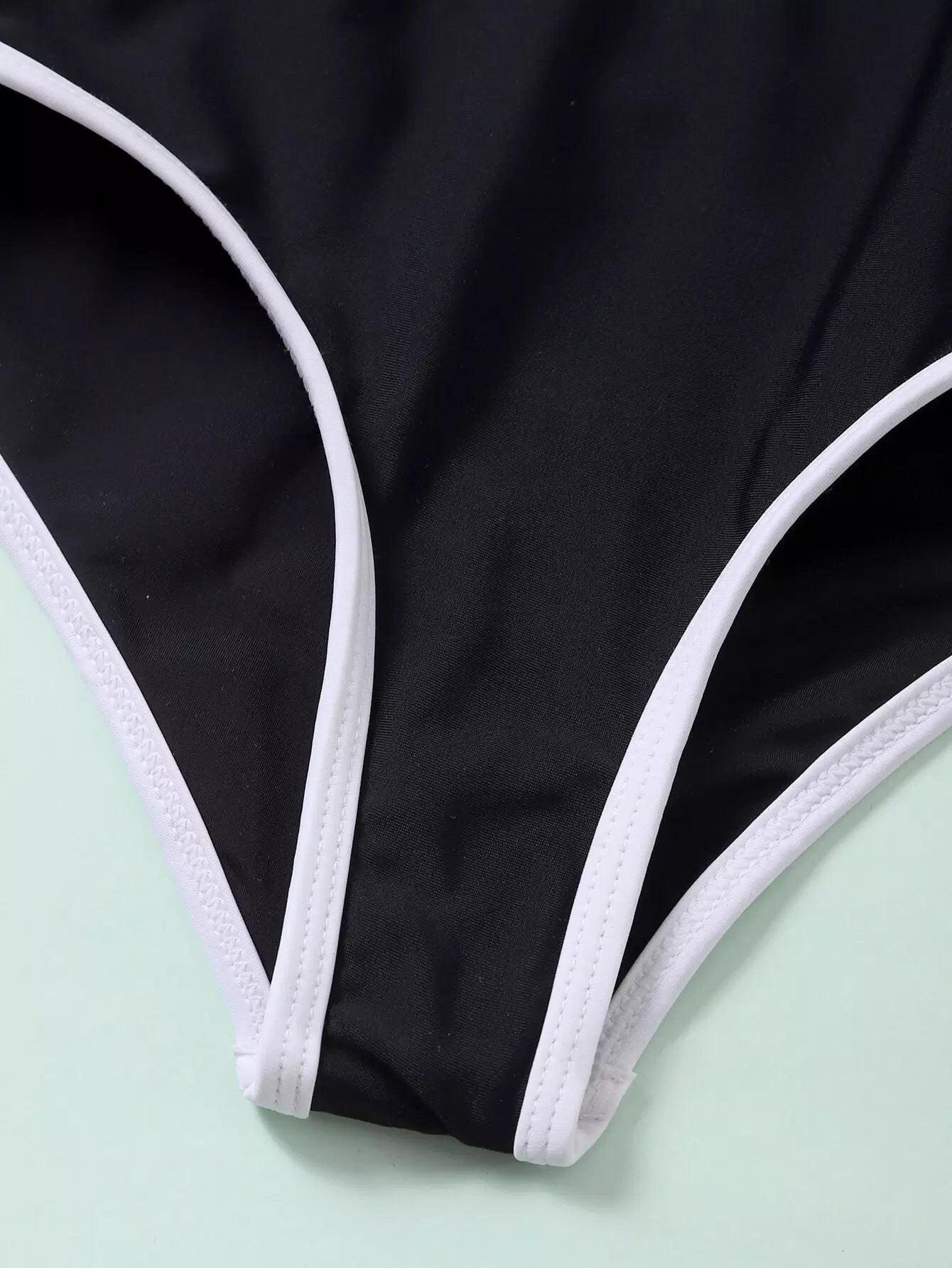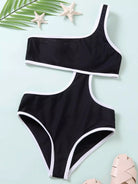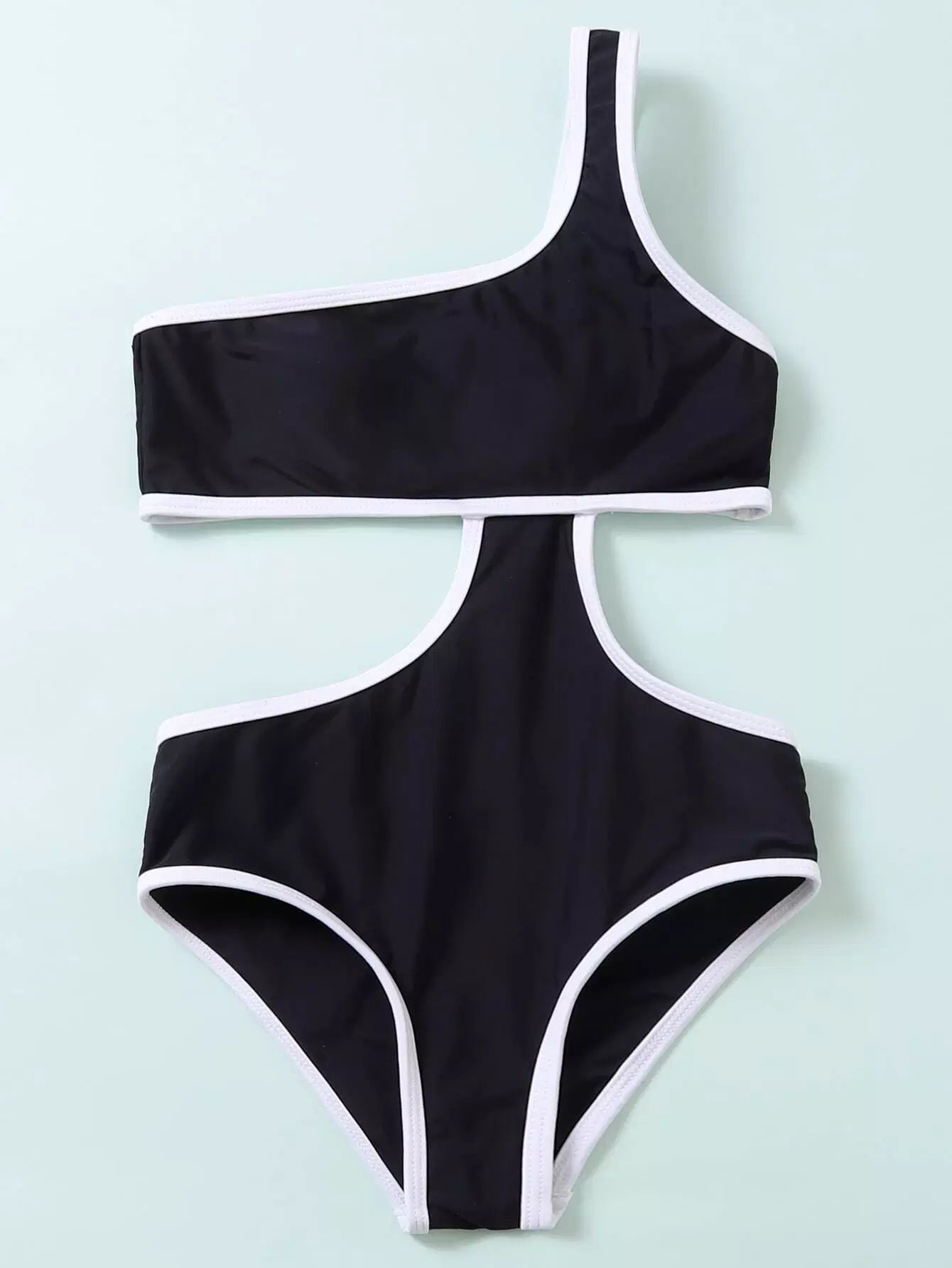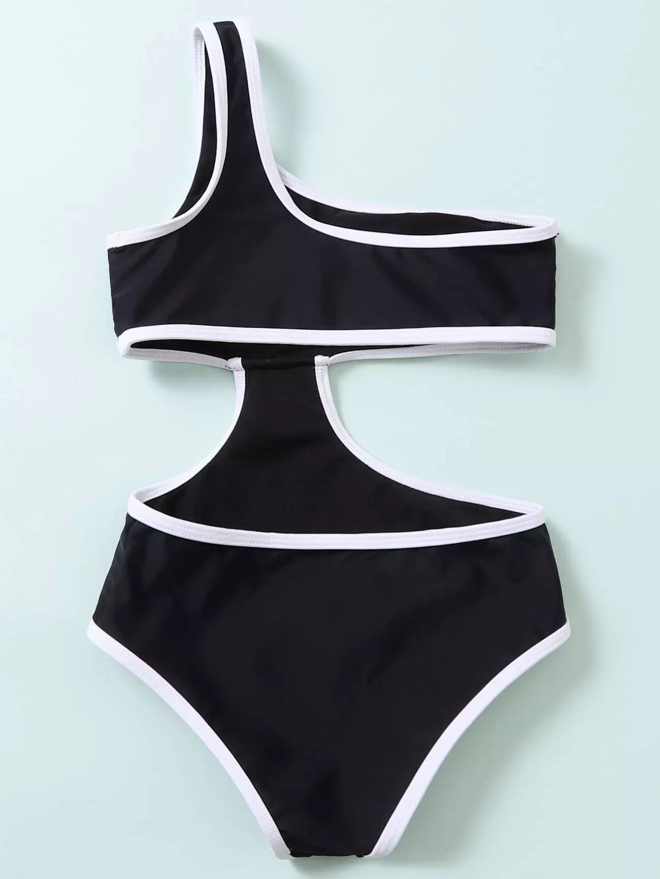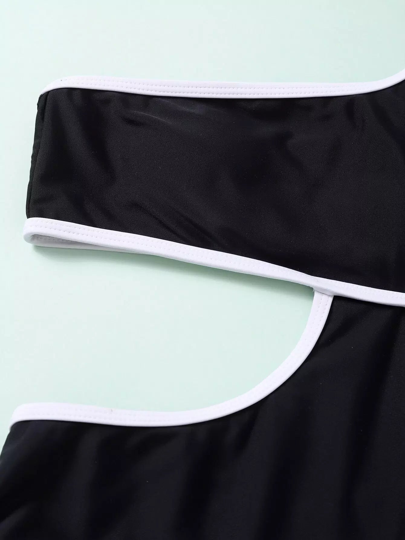 Girls Contrast Binding One Shoulder One Piece Swimsuit