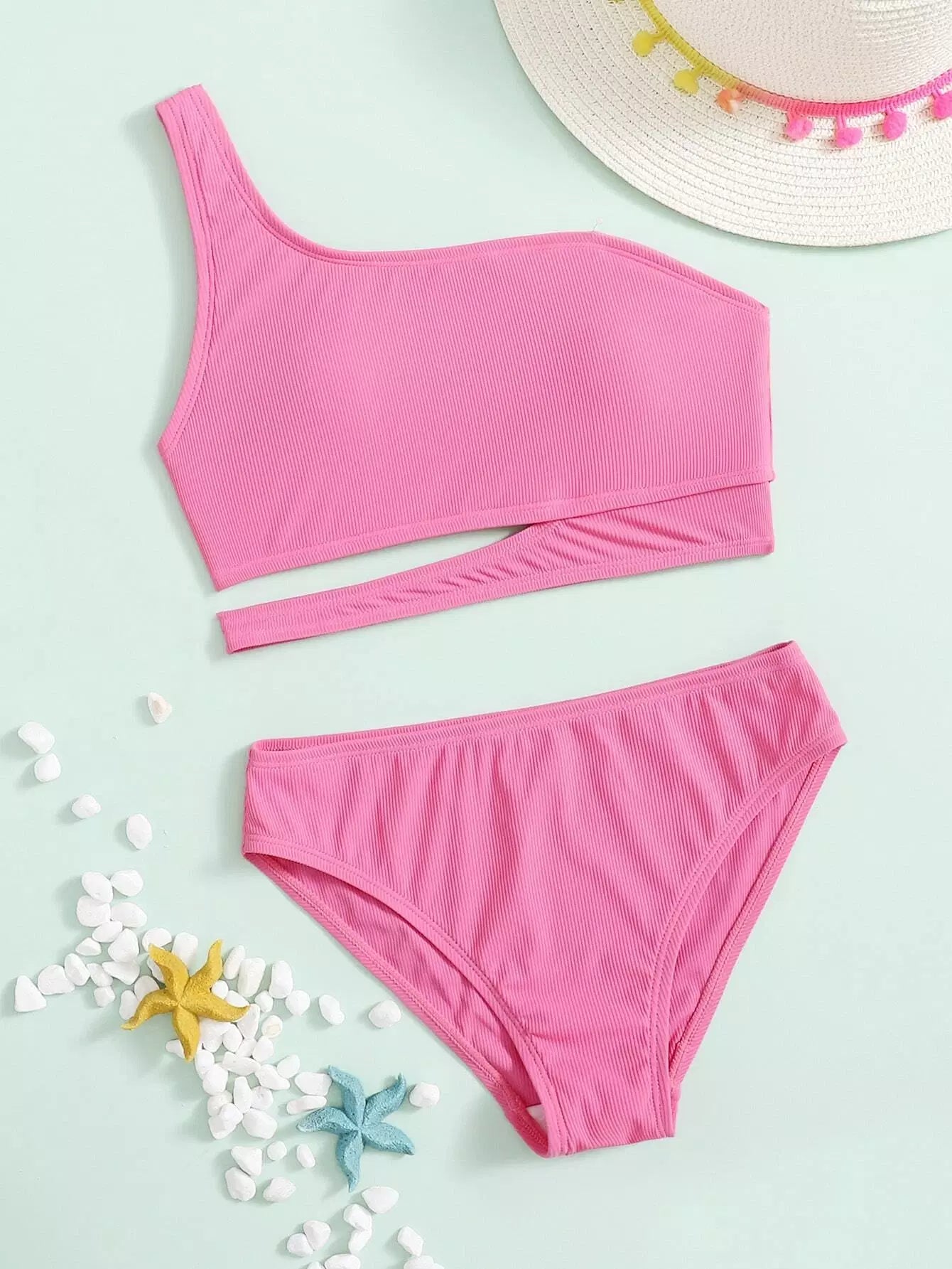 Girls Cut Out One Shoulder Bikini Swimsuit