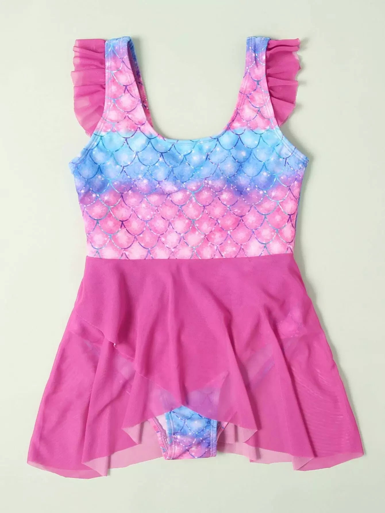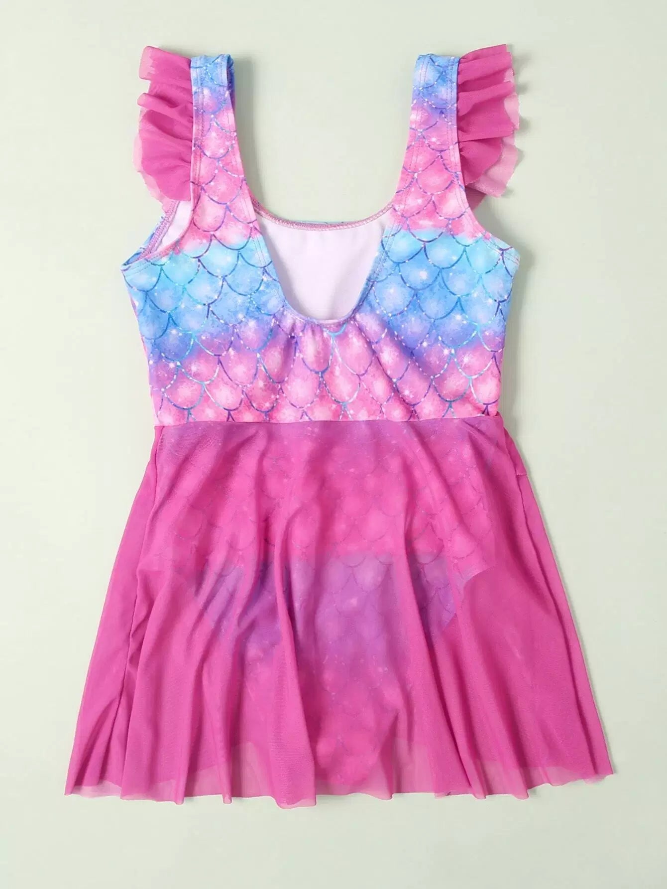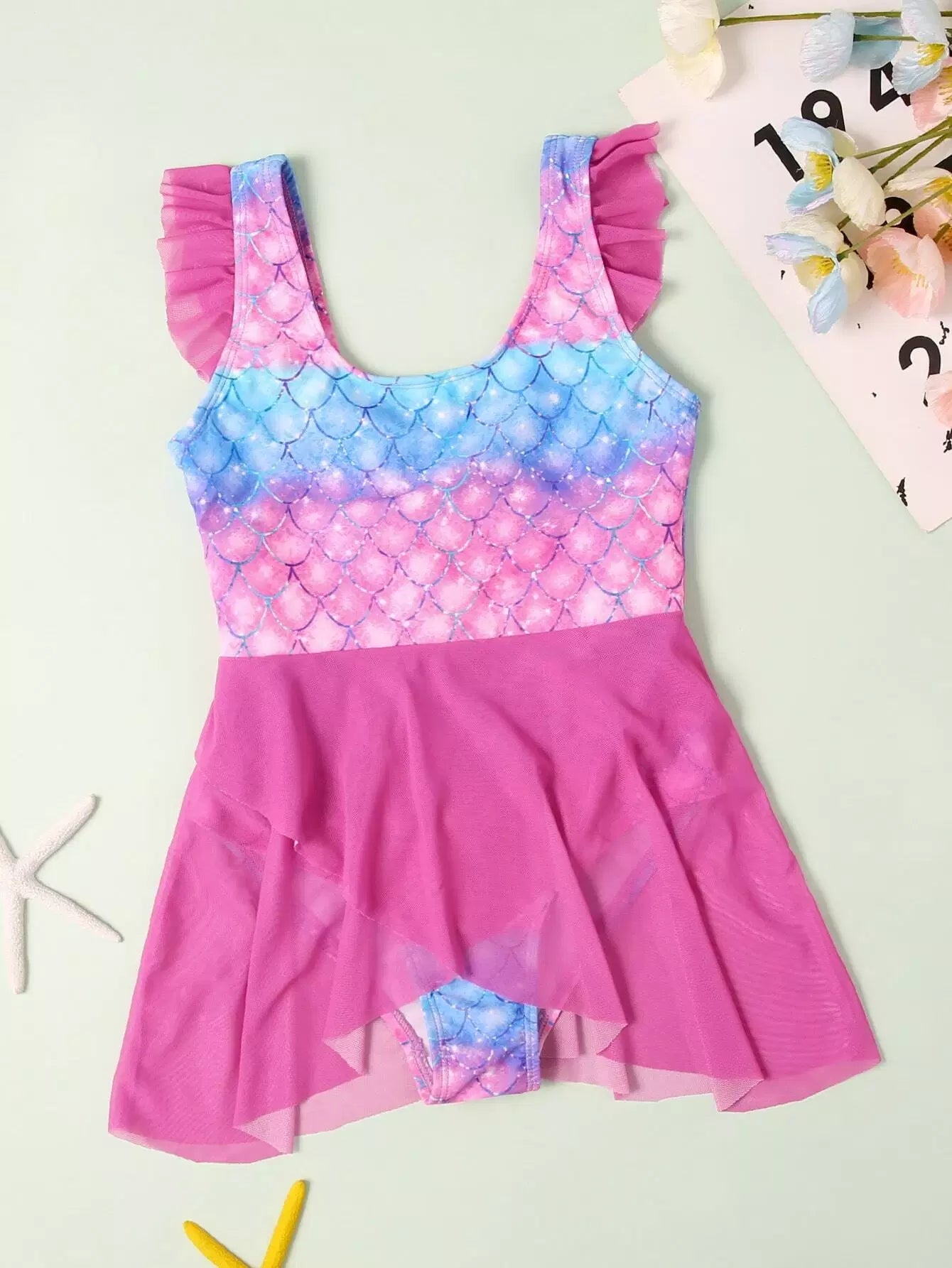 Kids - Girls Fish Scale Print Ruffle One Piece Swimsuit