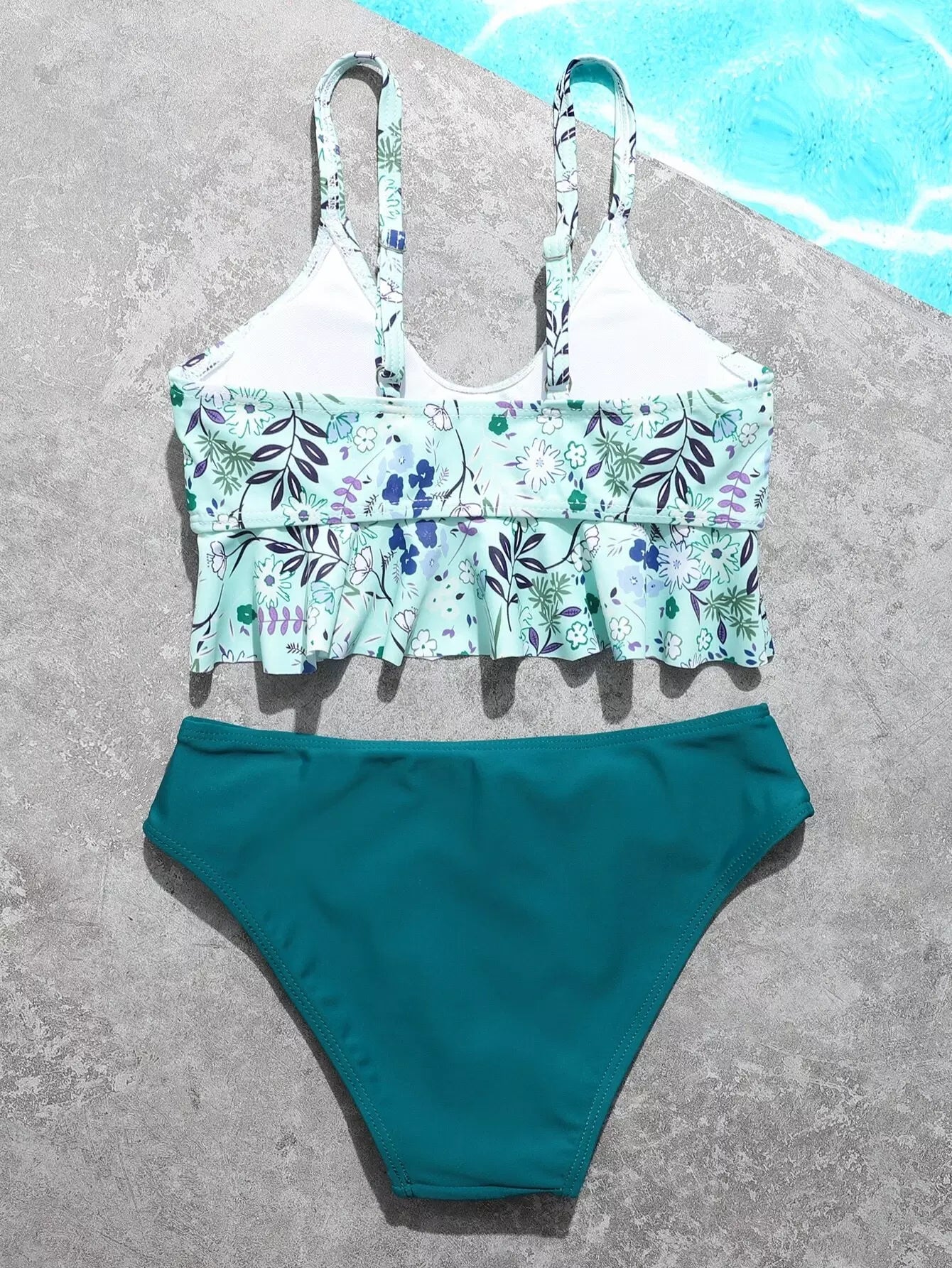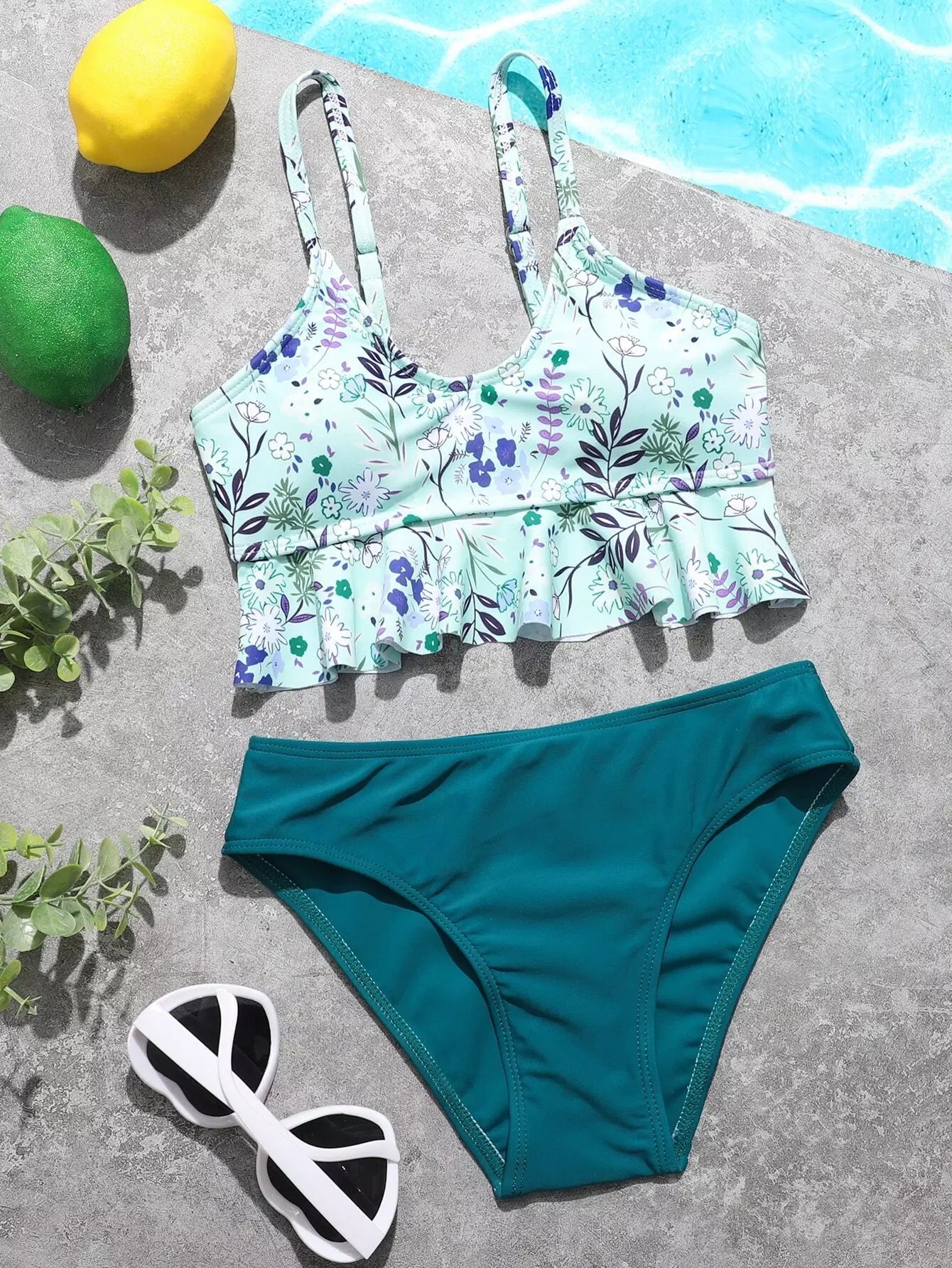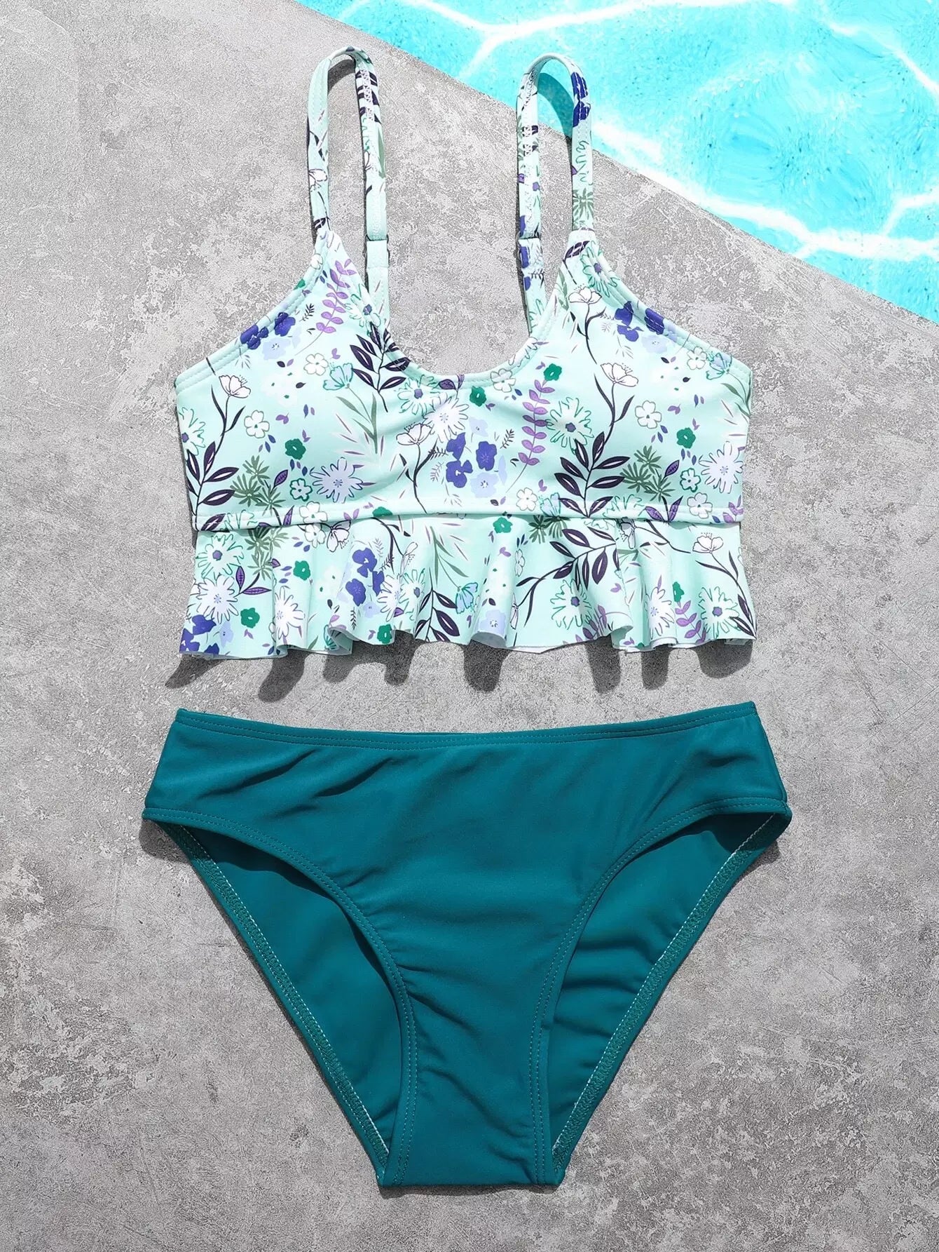 Girls Floral Ruffle Hem Bikini Swimsuit