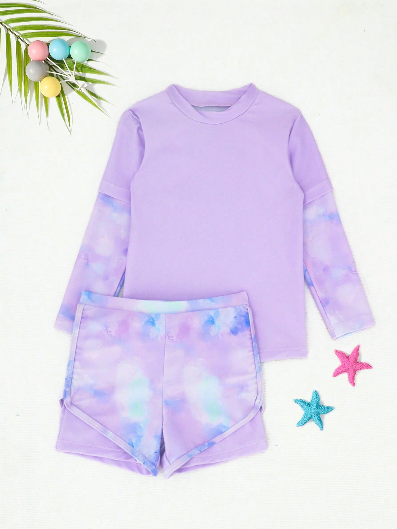 New Young Girl Girl Two-Piece Tankini Swimwear Set, 2 In 1 Design With Sleeveless Top And Shorts, Fashion
