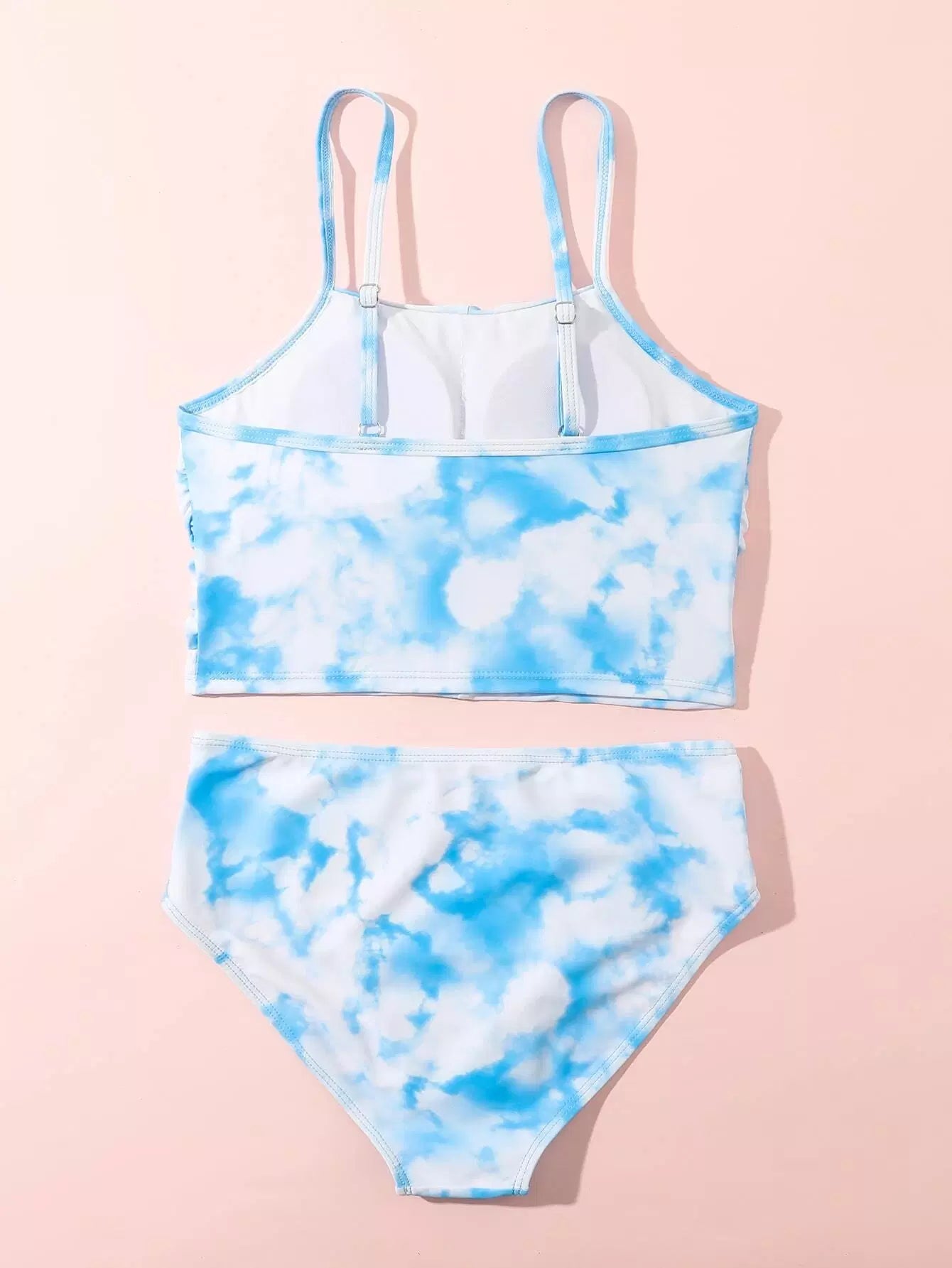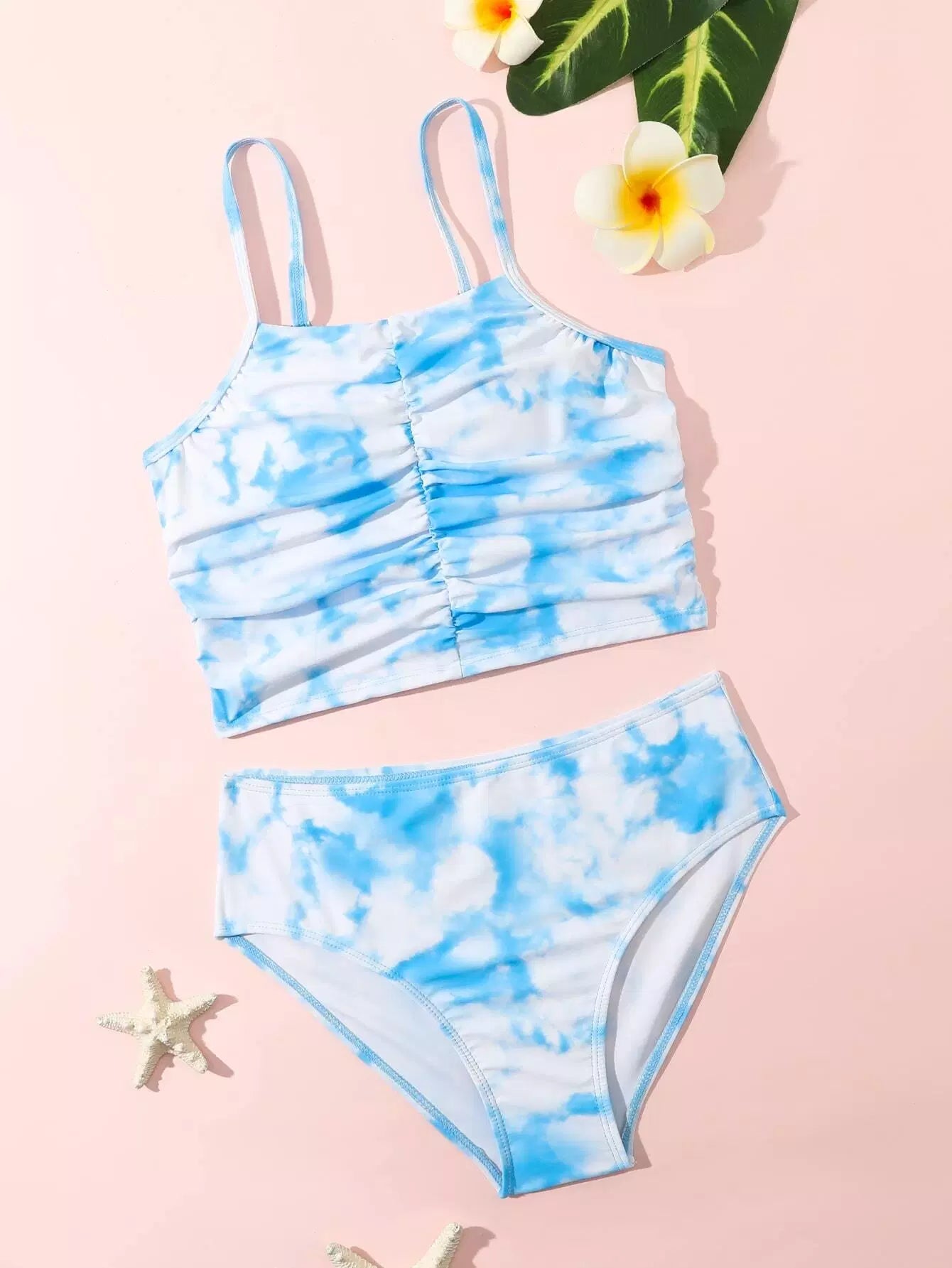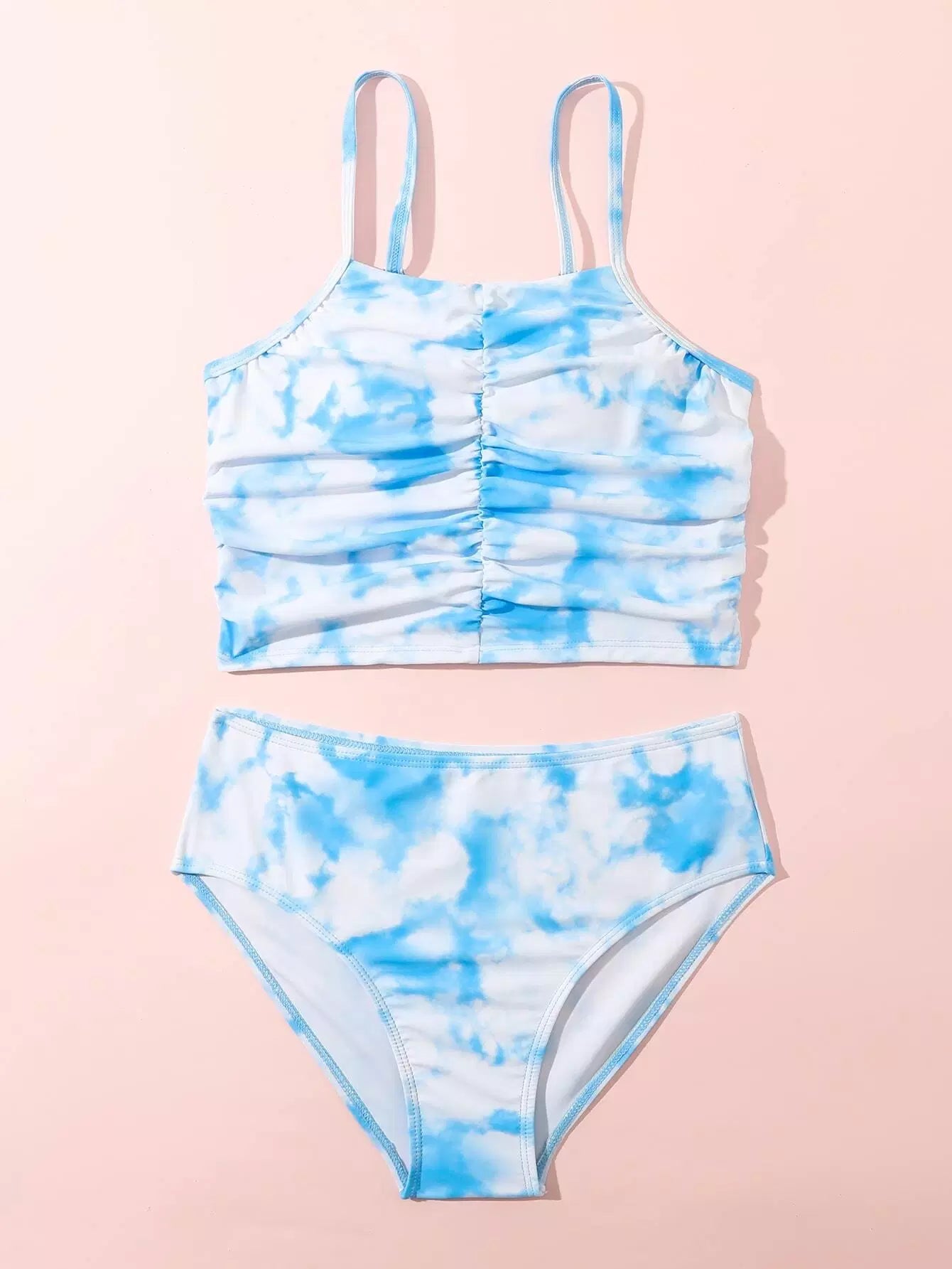 Teen Girls Tie Dye Ruched Bikini Swimsuit