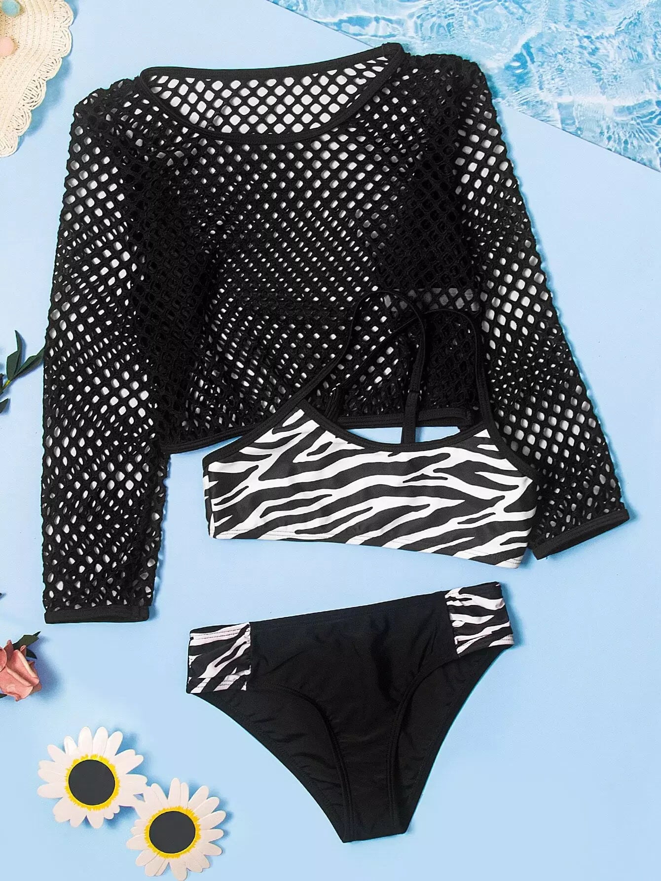 3pack Girls Zebra Stripe Bikini Swimsuit