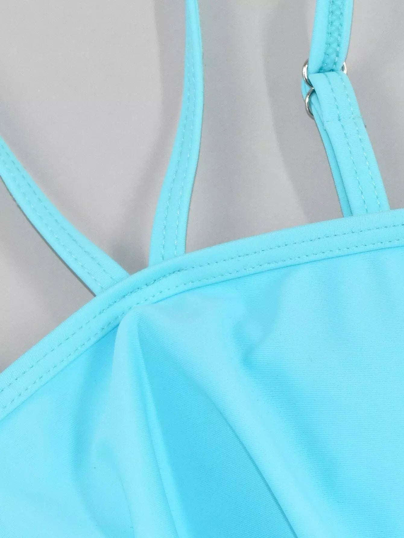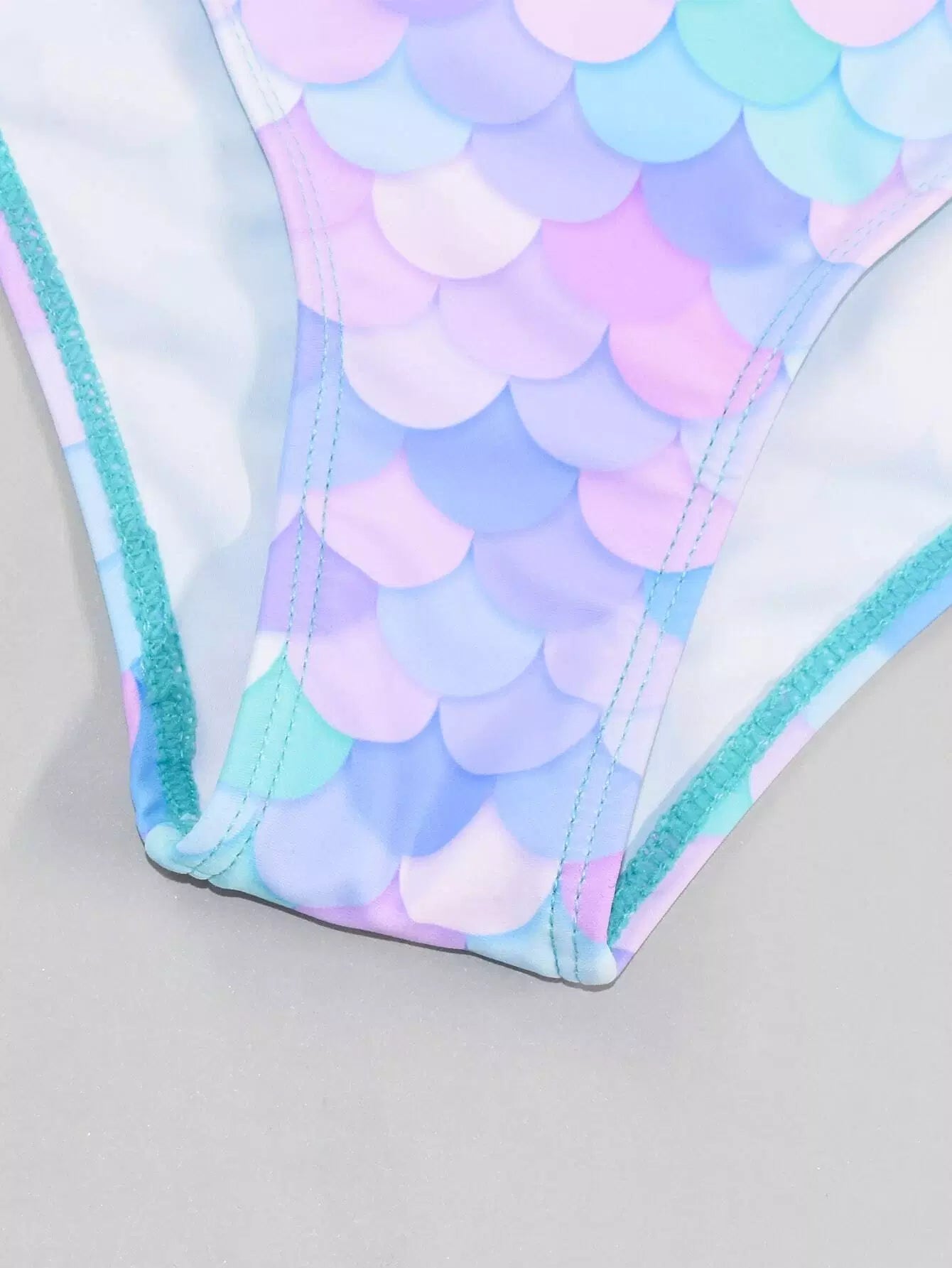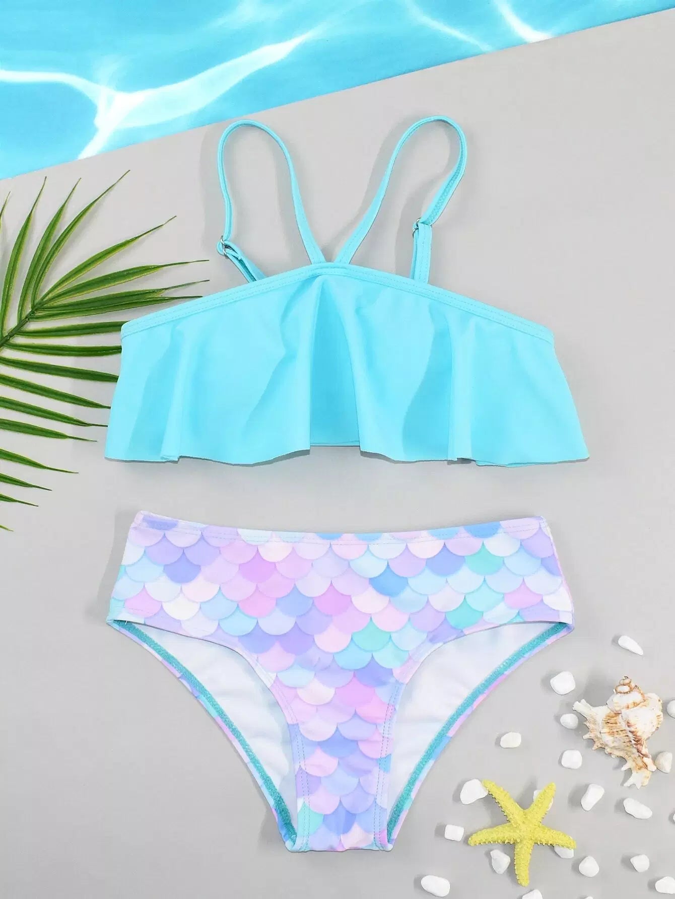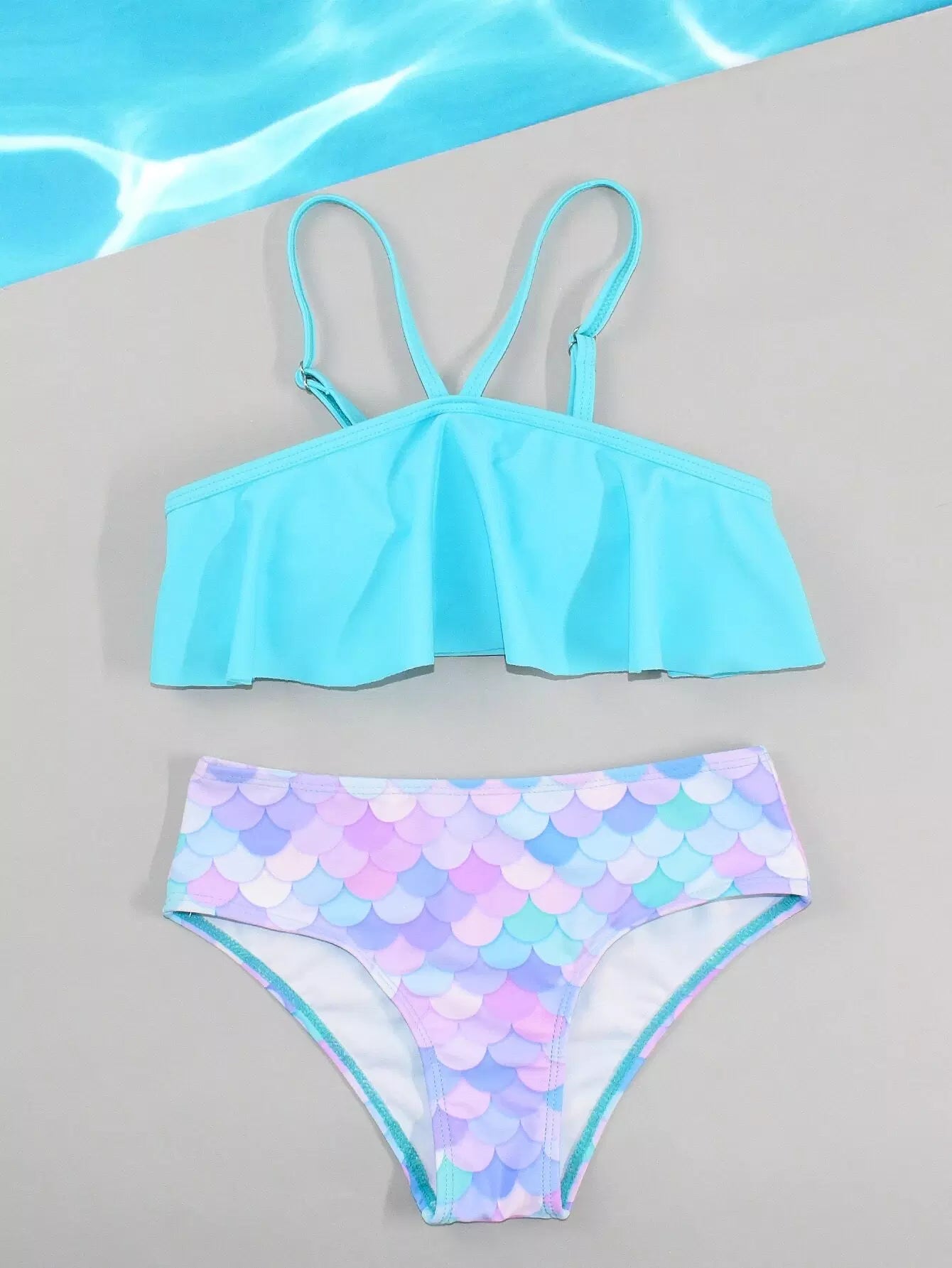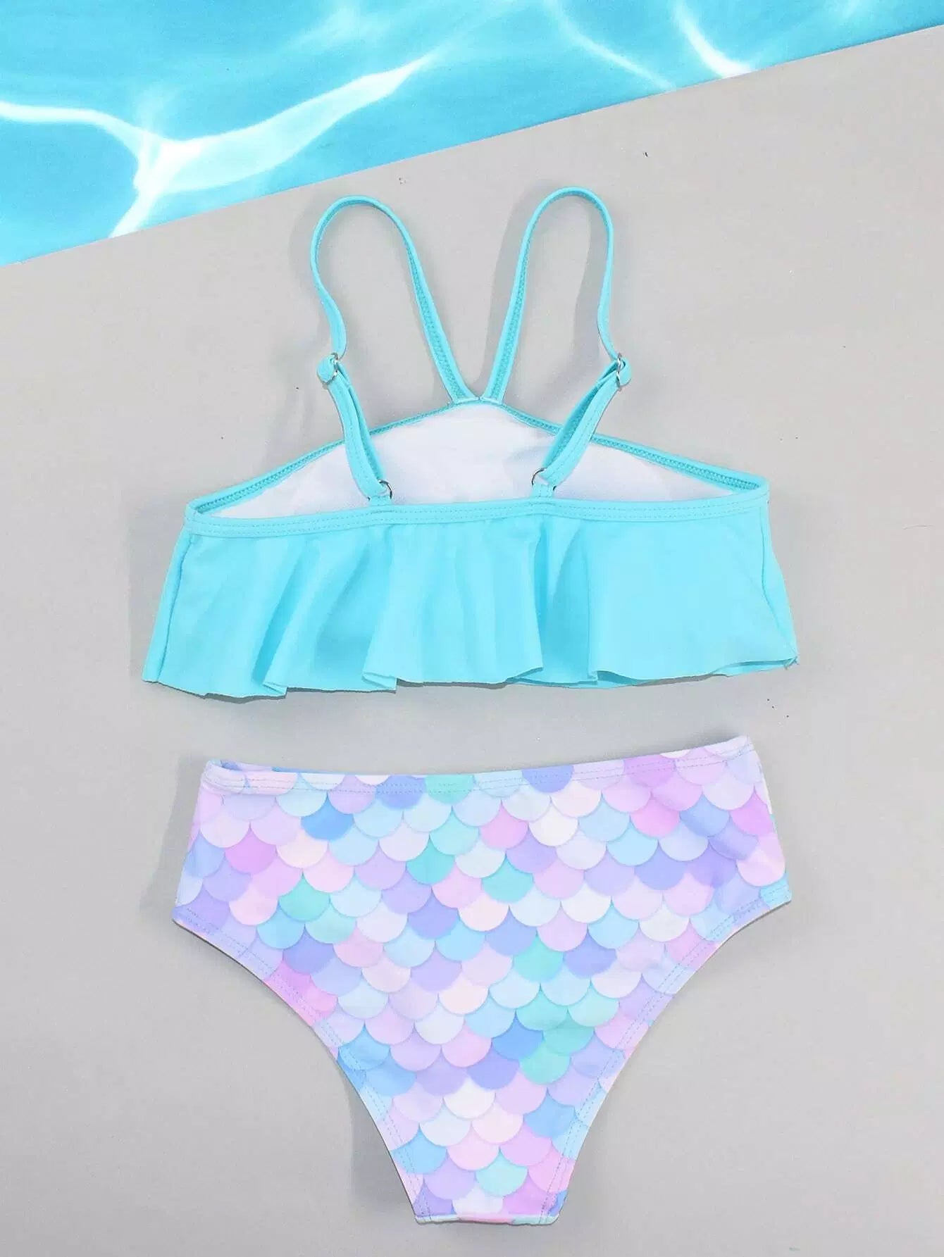 Girls Fish Scale Print Flounce Bikini Swimsuit
