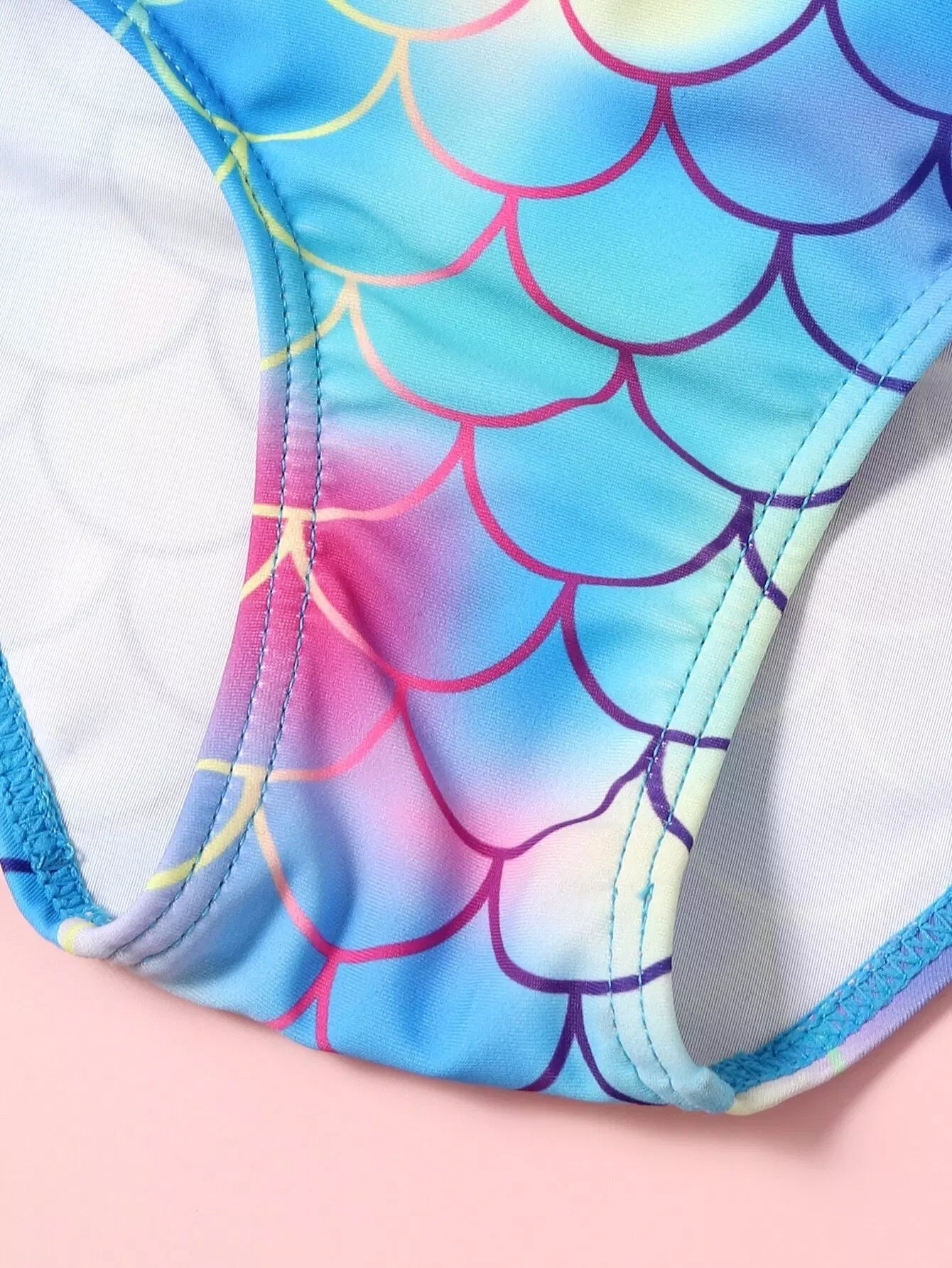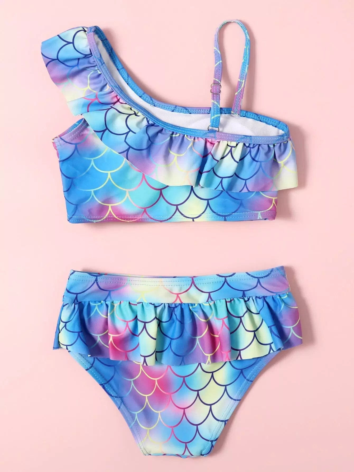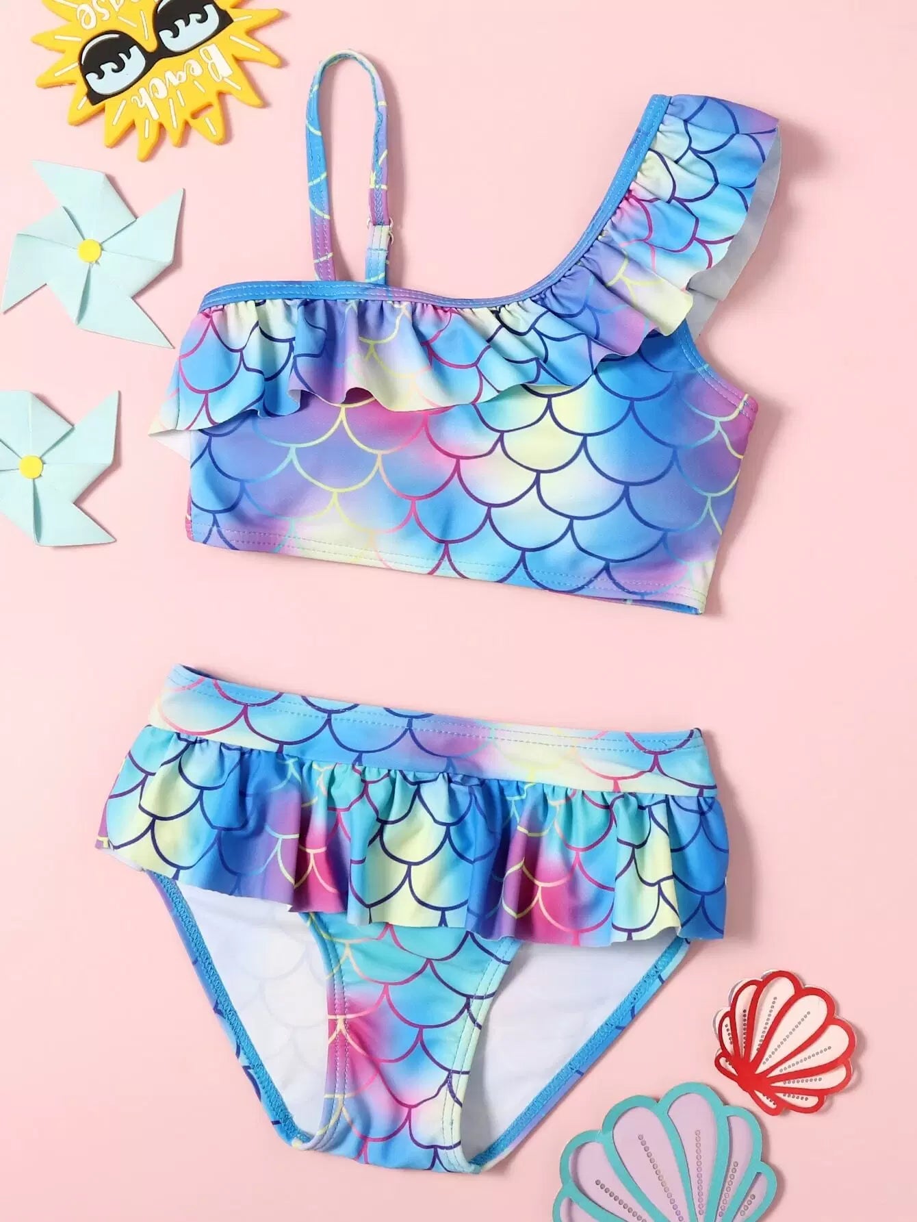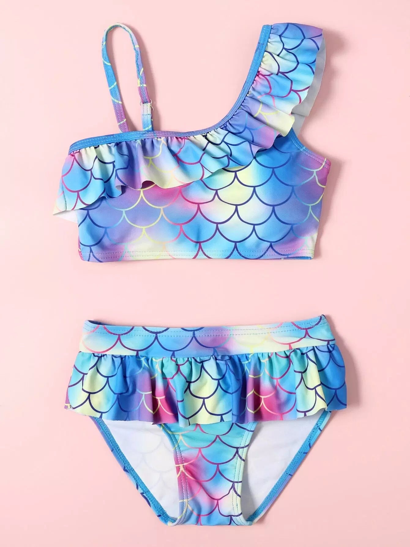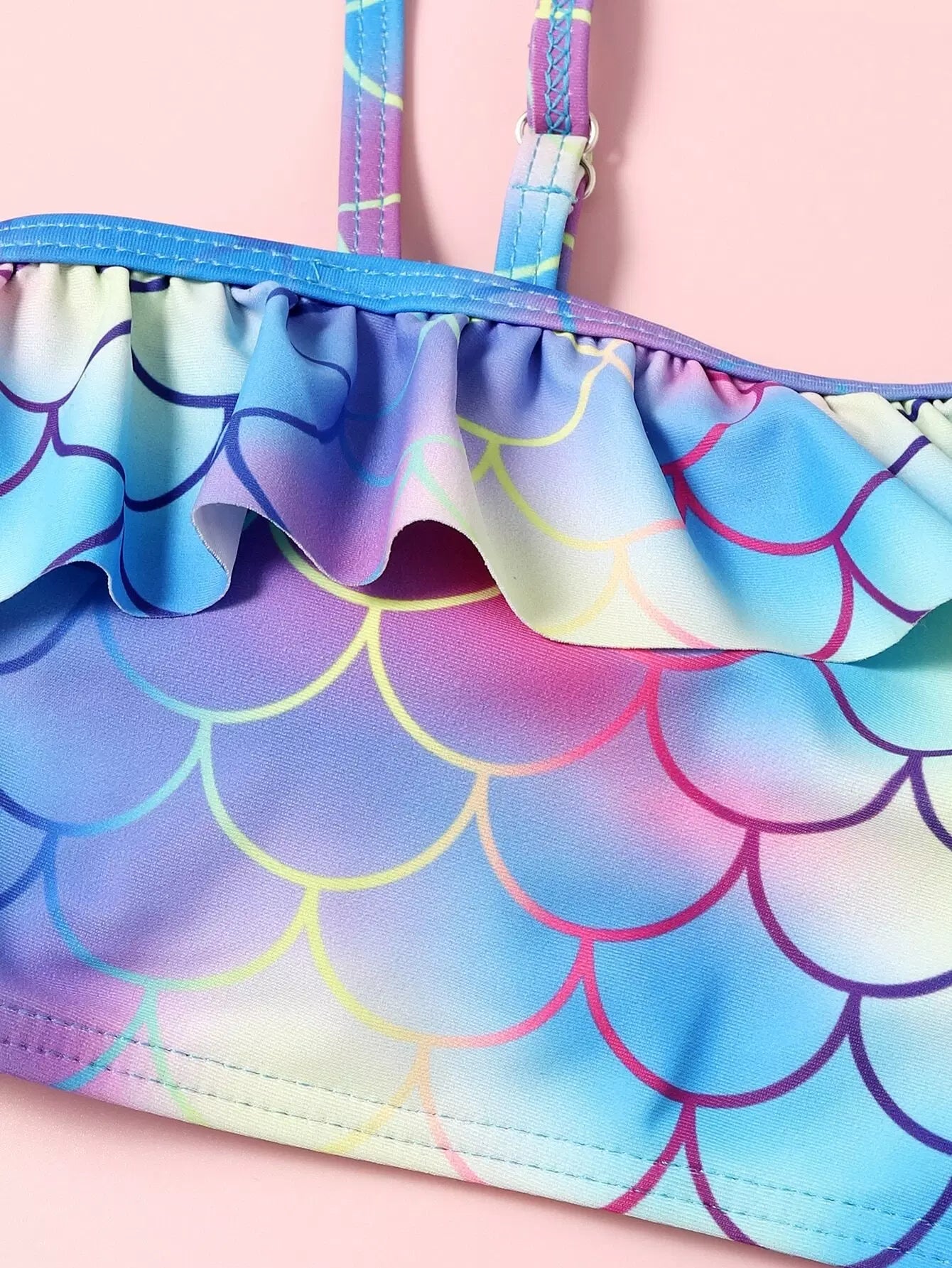 Girls Fish Scales Ruffle Bikini Swimsuit