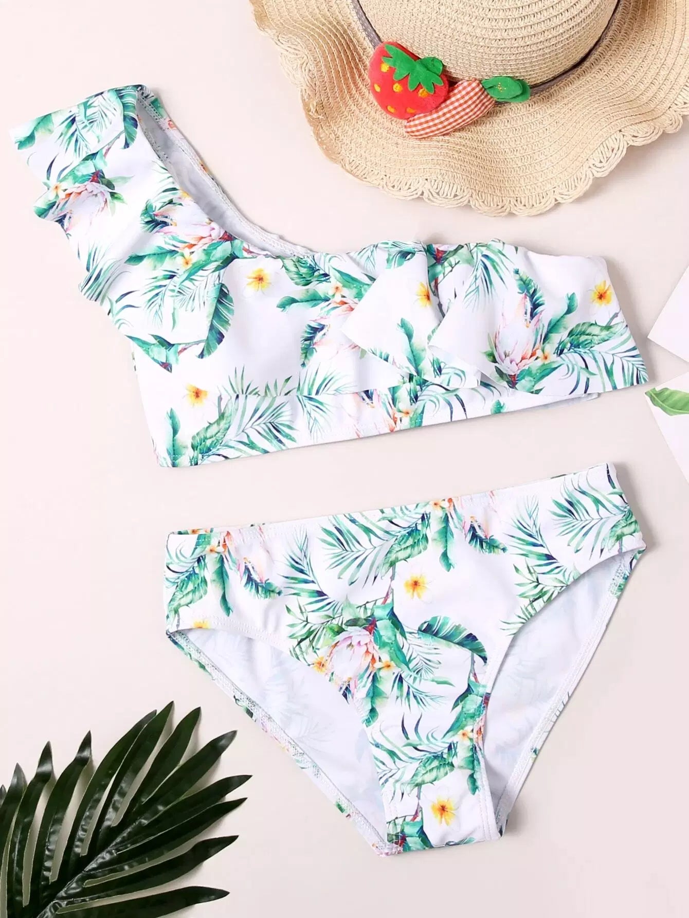 Kids - Girls Floral & Tropical Ruffle Bikini Swimsuit