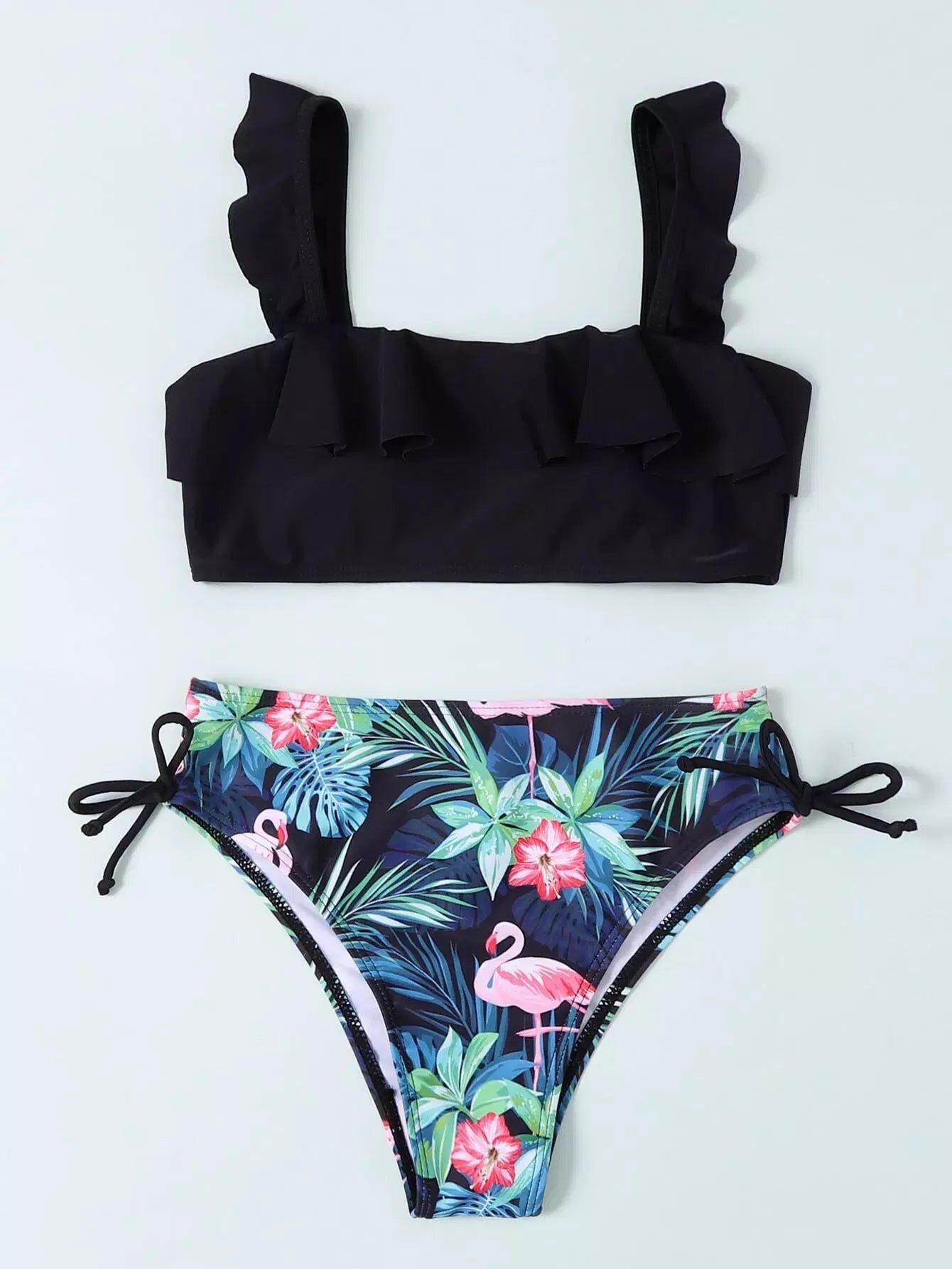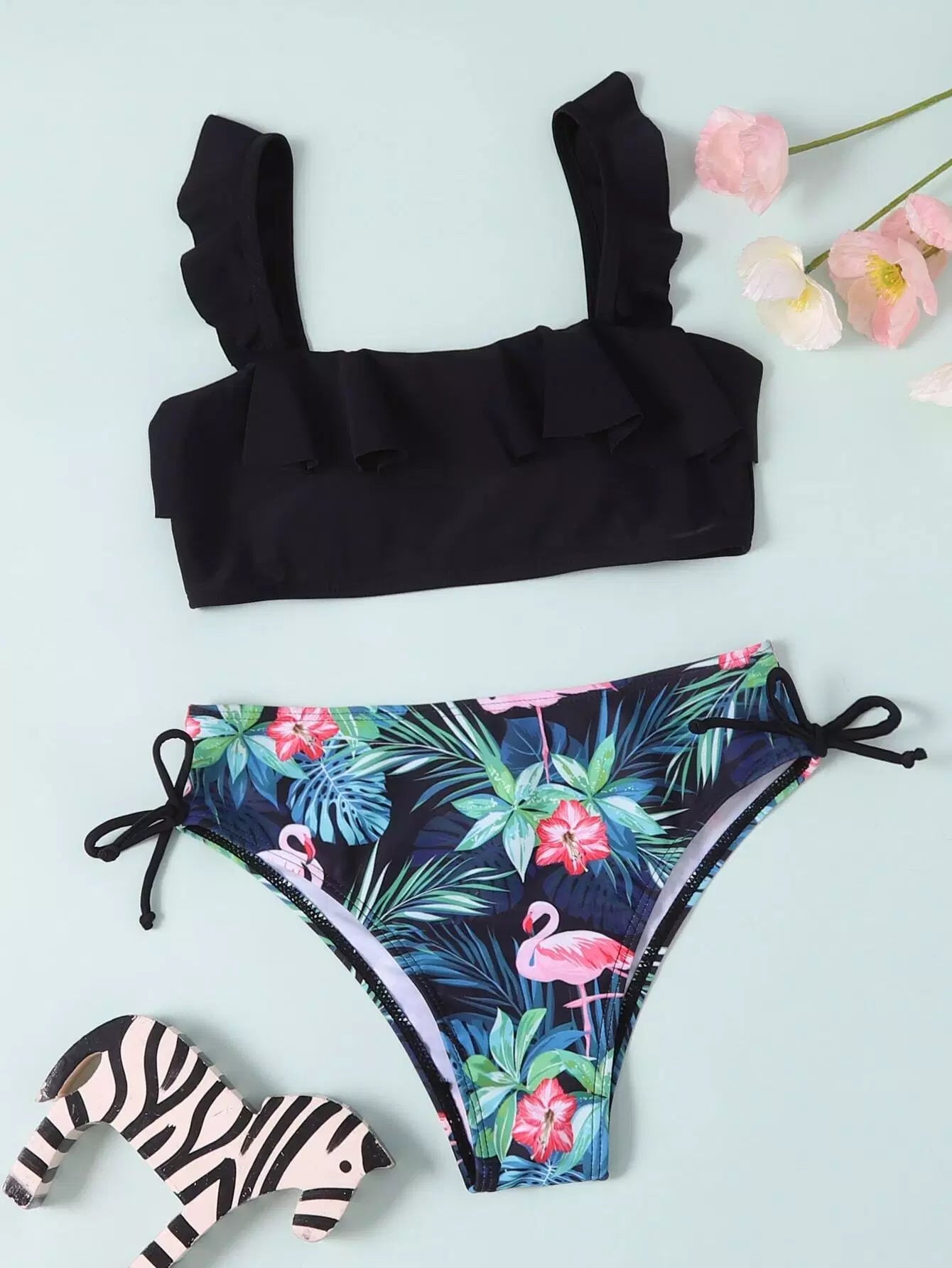 Girls Floral & Tropical Ruffle Bikini Swimsuit