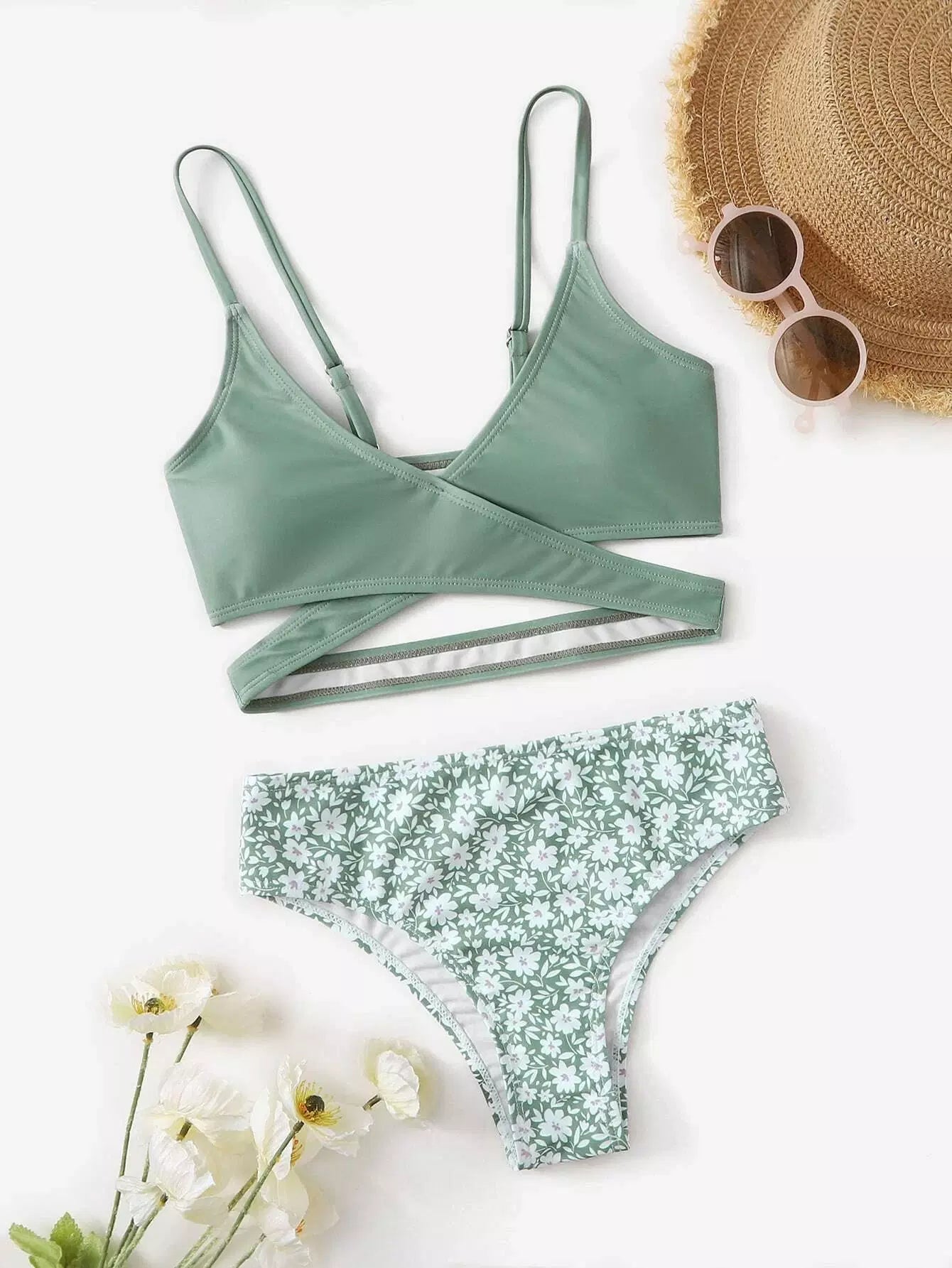 Girls Floral Wrap Bikini Swimsuit