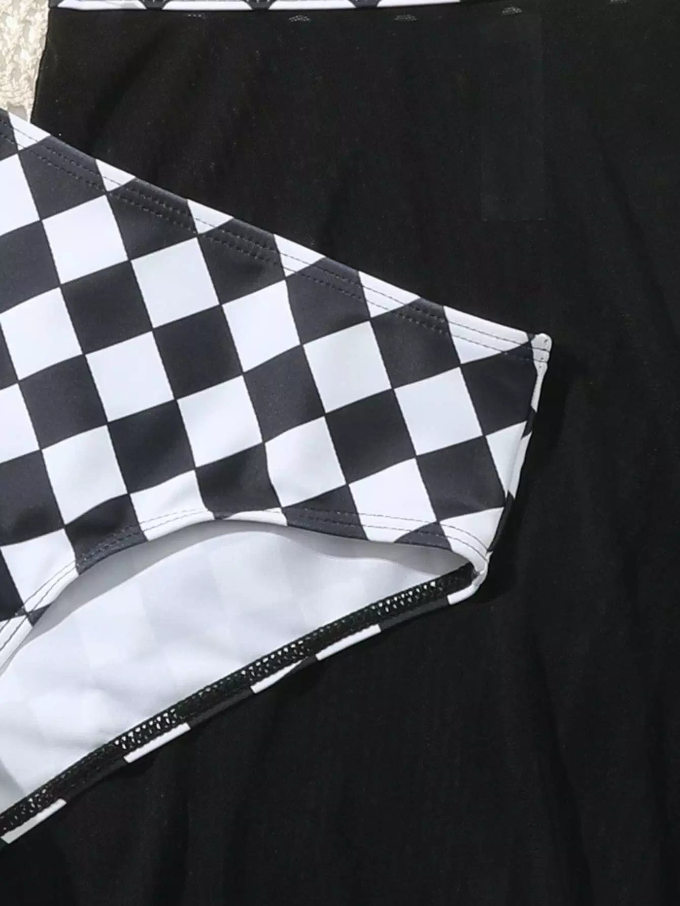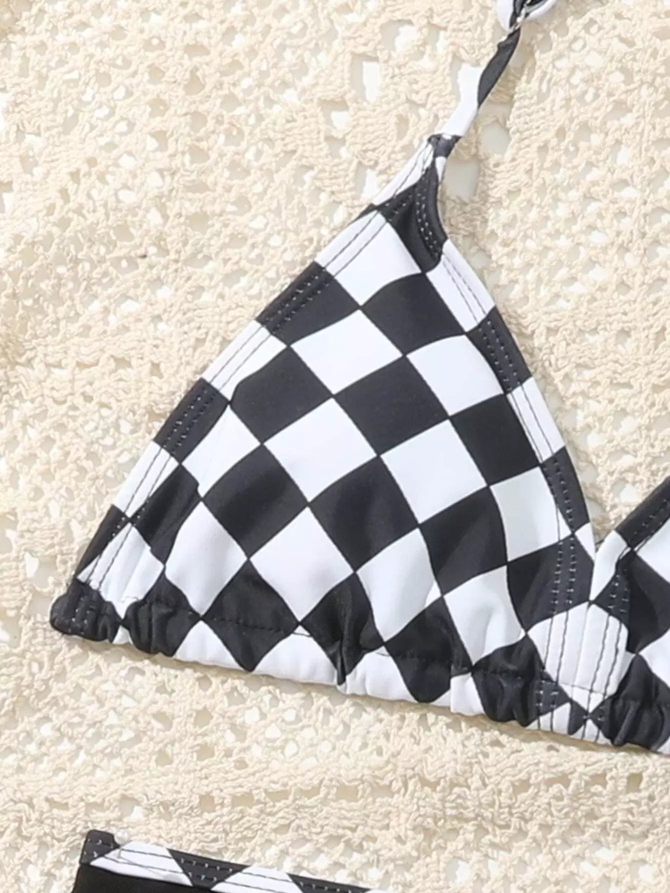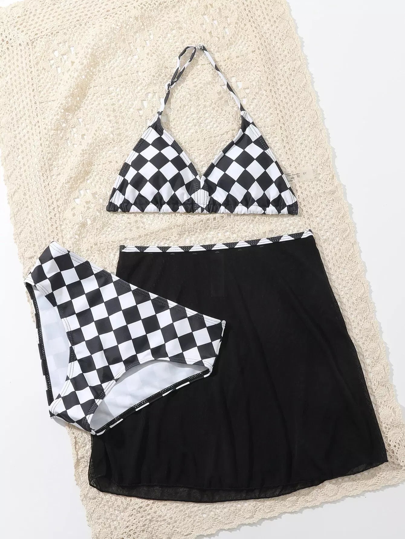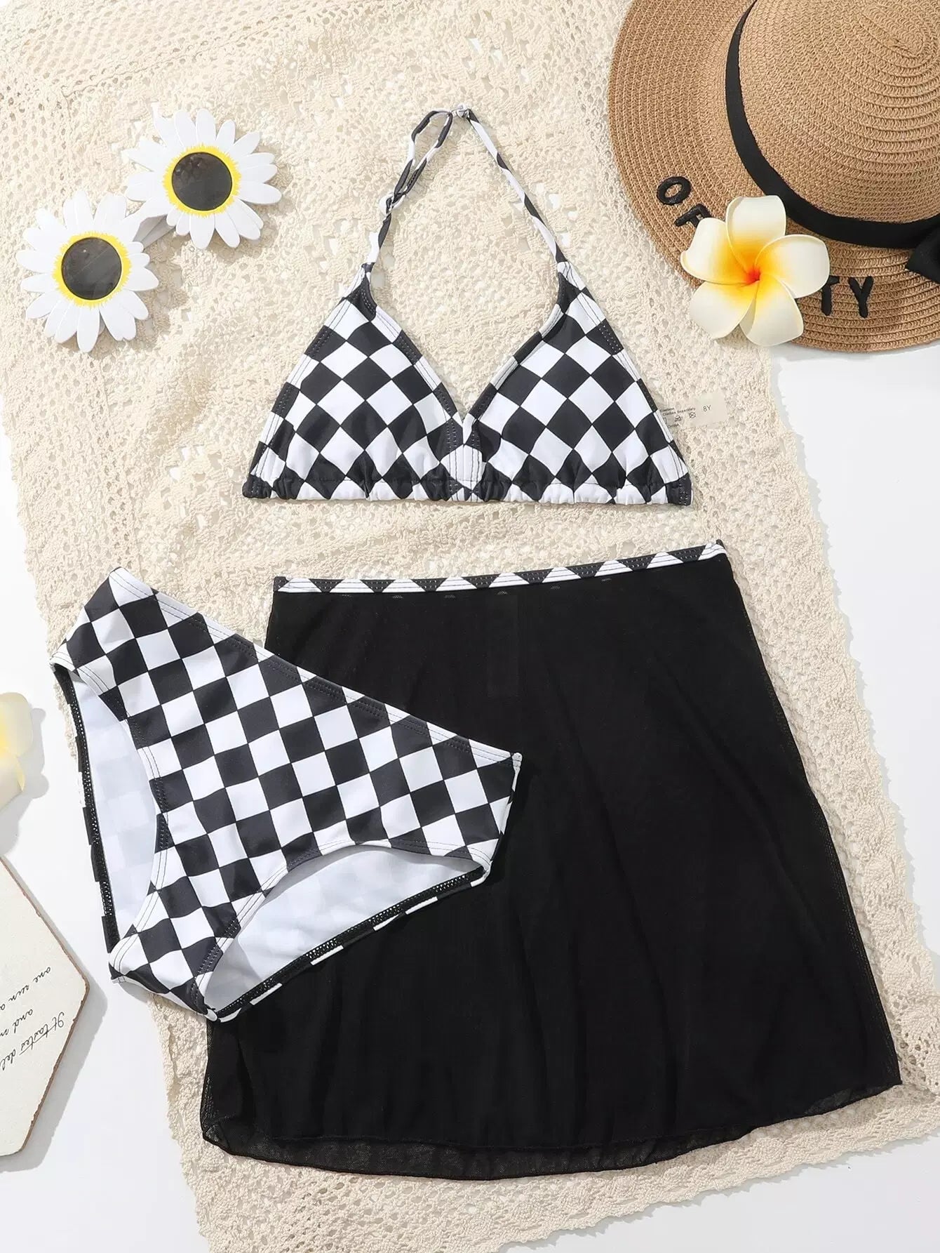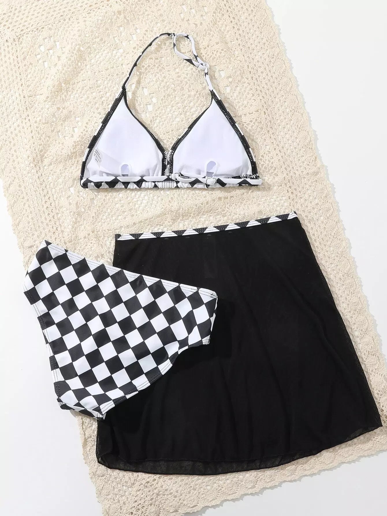 Girls Plaid Bikini Swimsuit With Beach Skirt