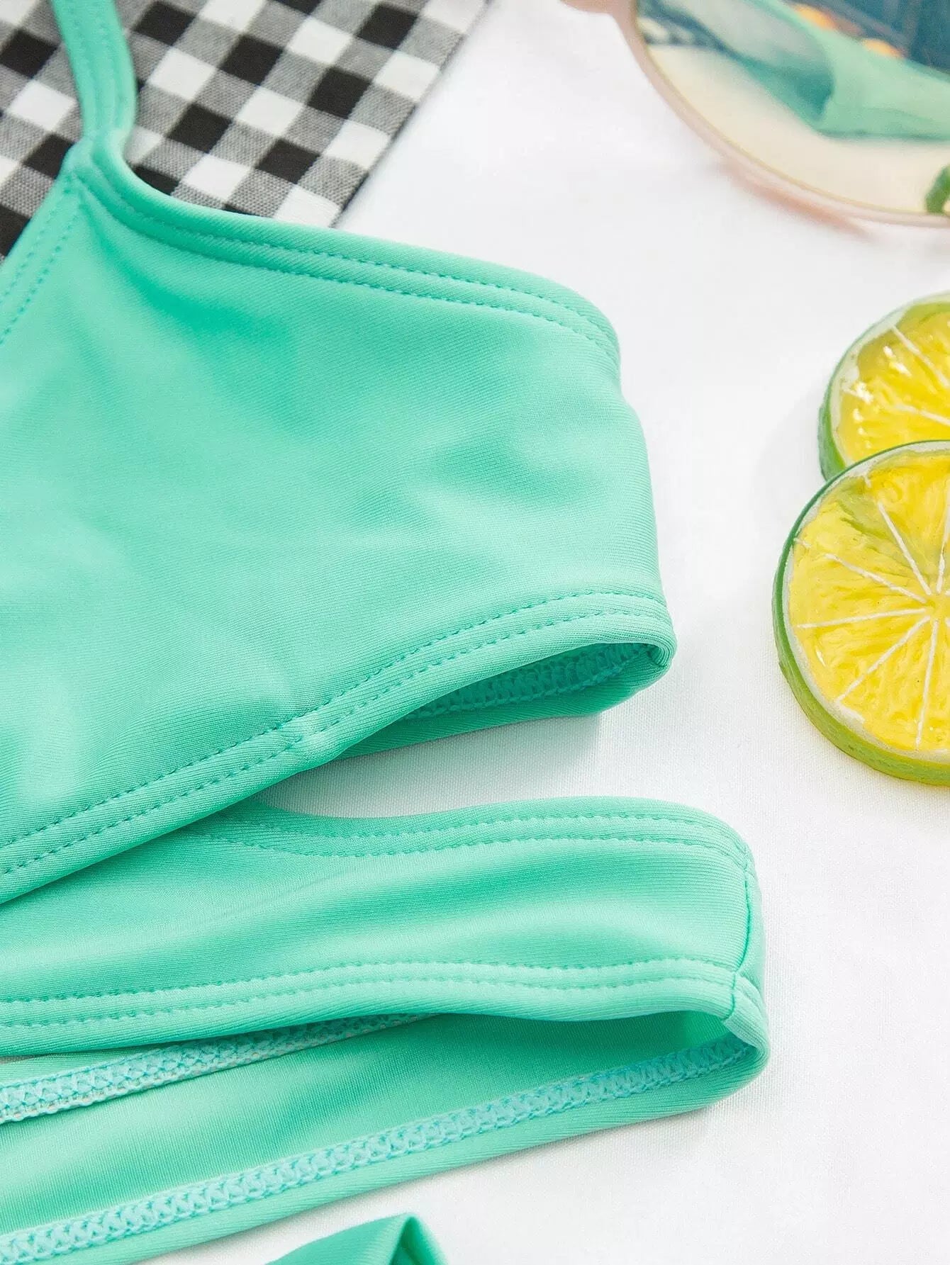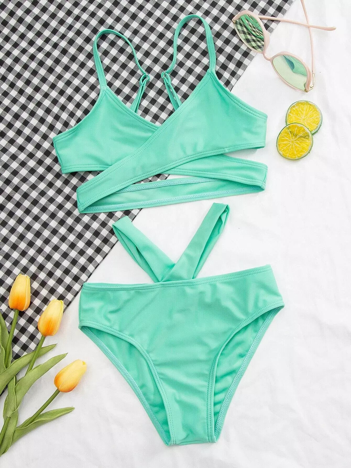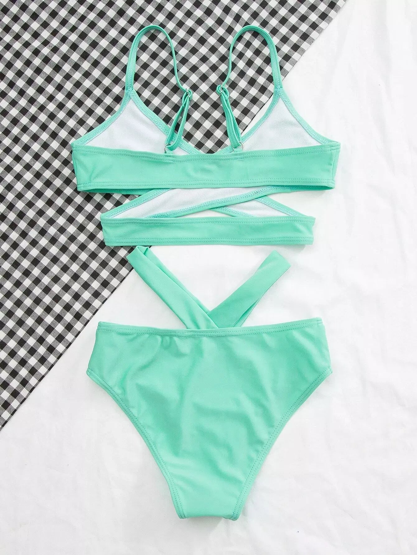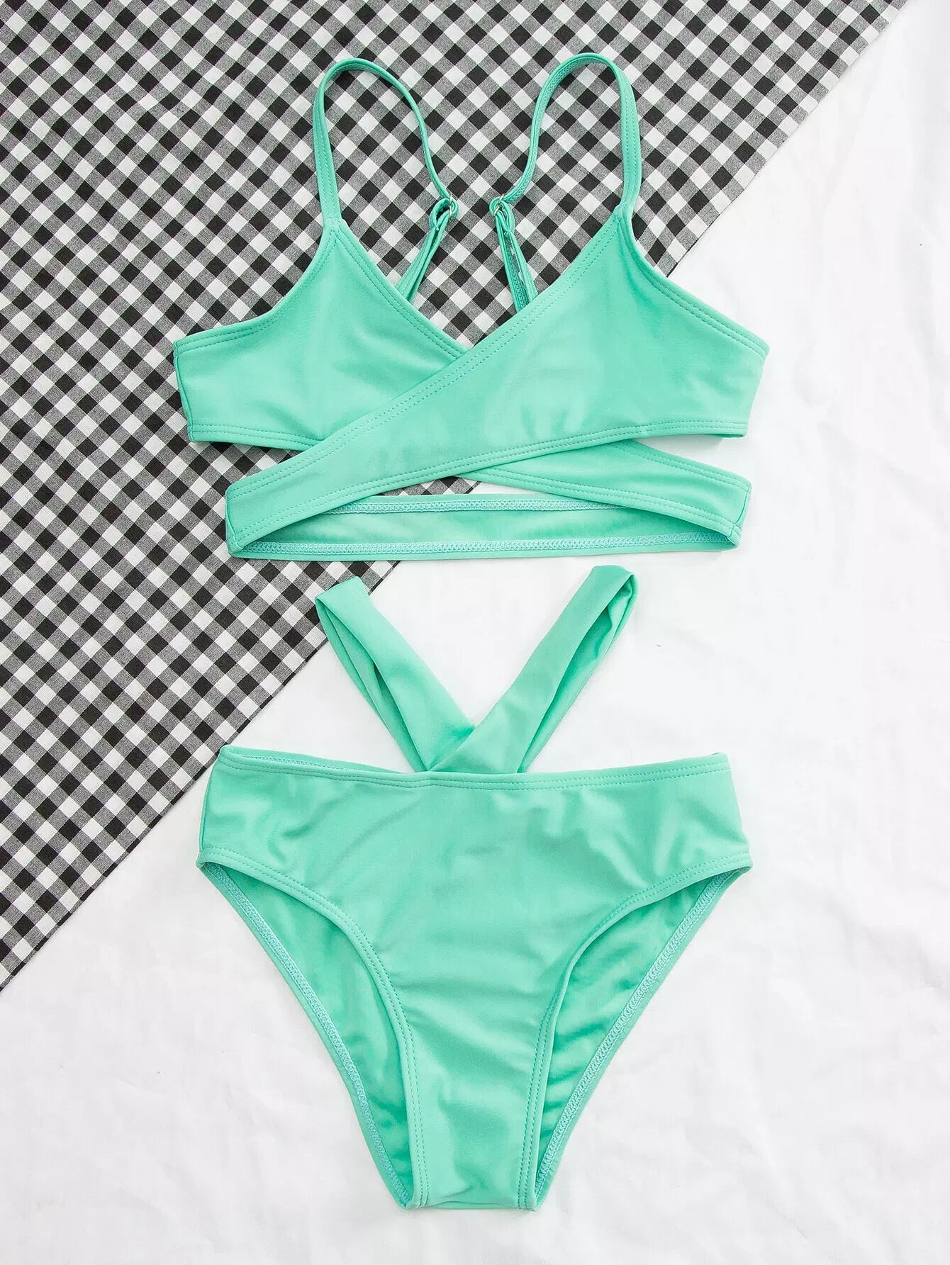 Girls Solid Criss Cross Cut Out Bikini Swimsuit