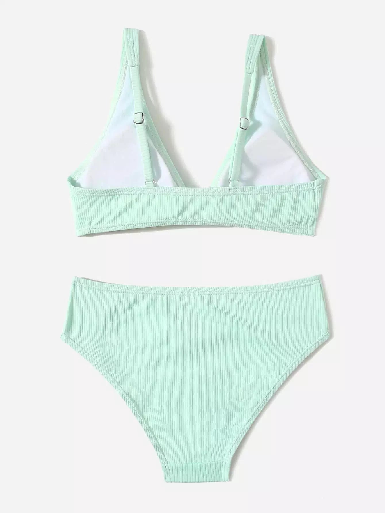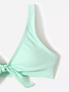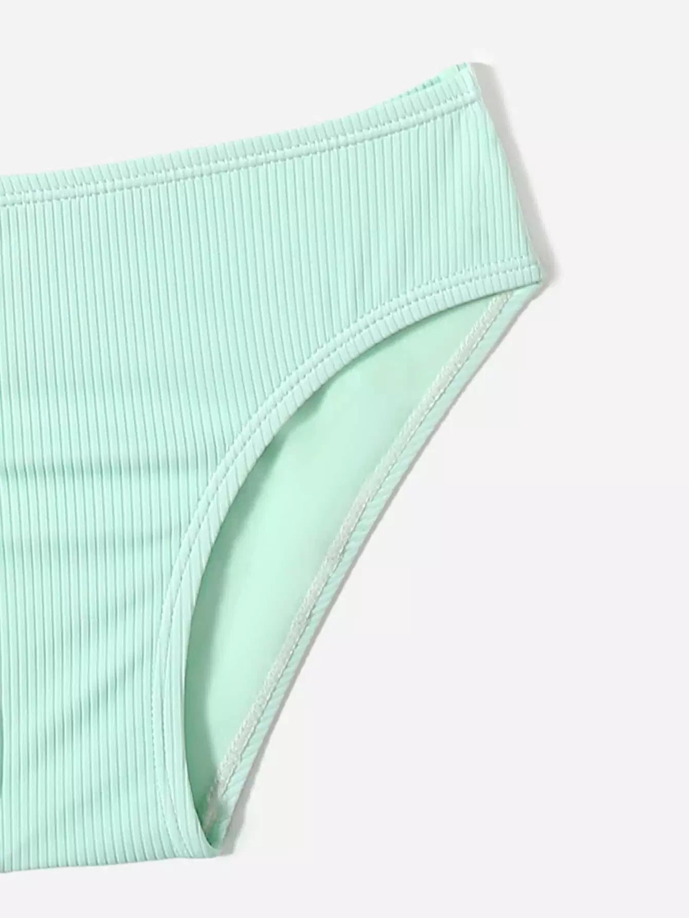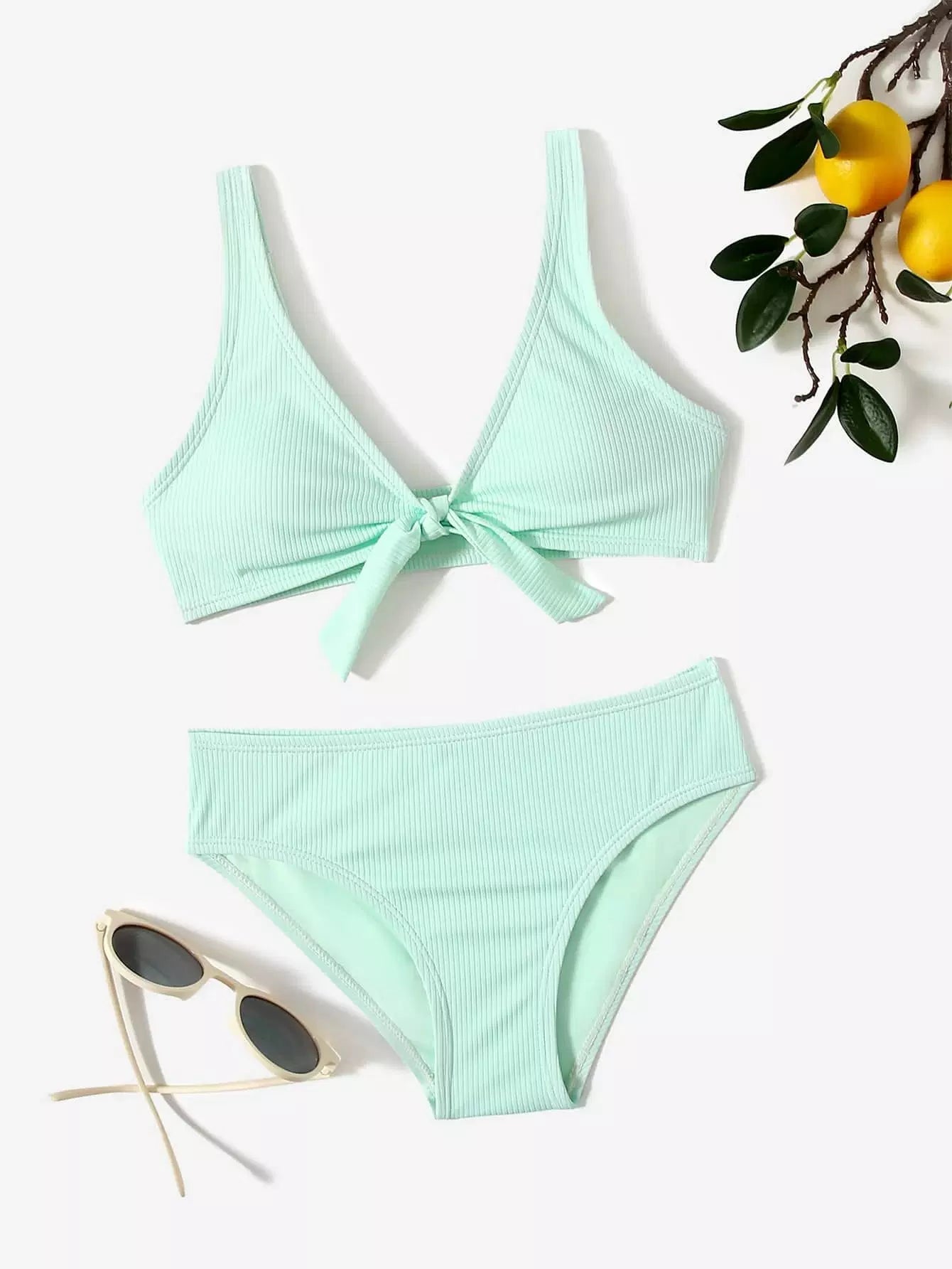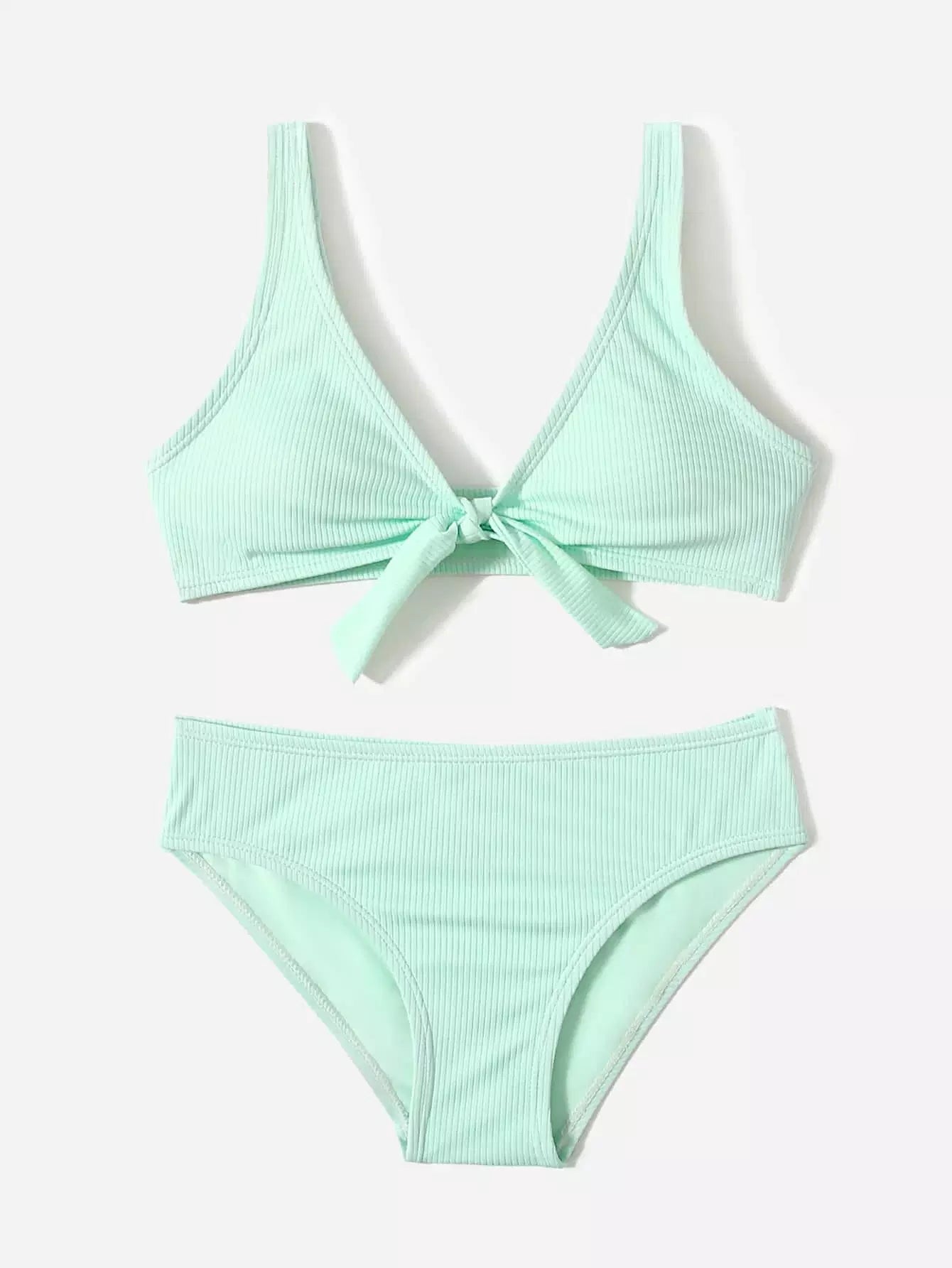Girls Solid Rib Knot Front Bikini Swimsuit