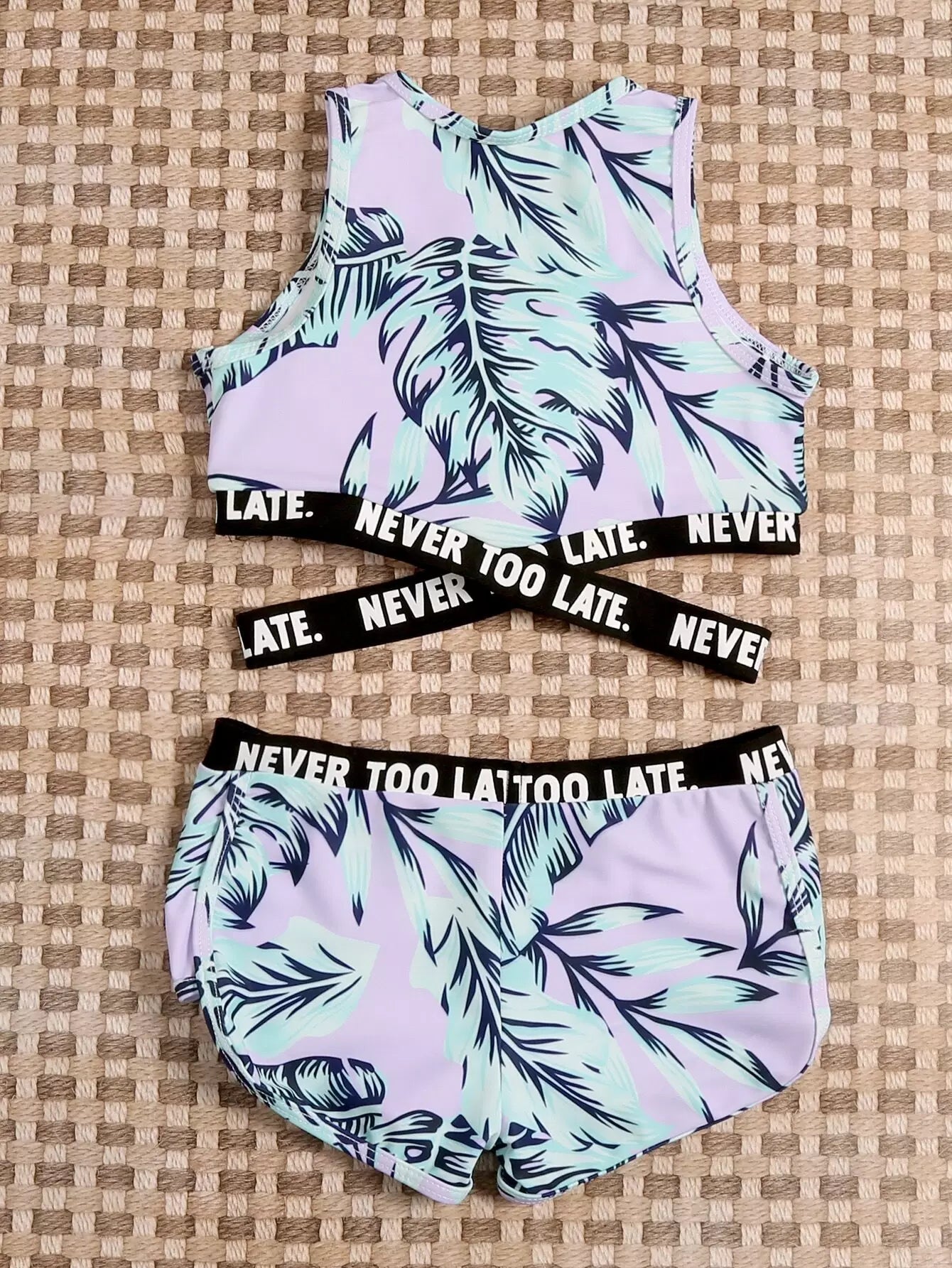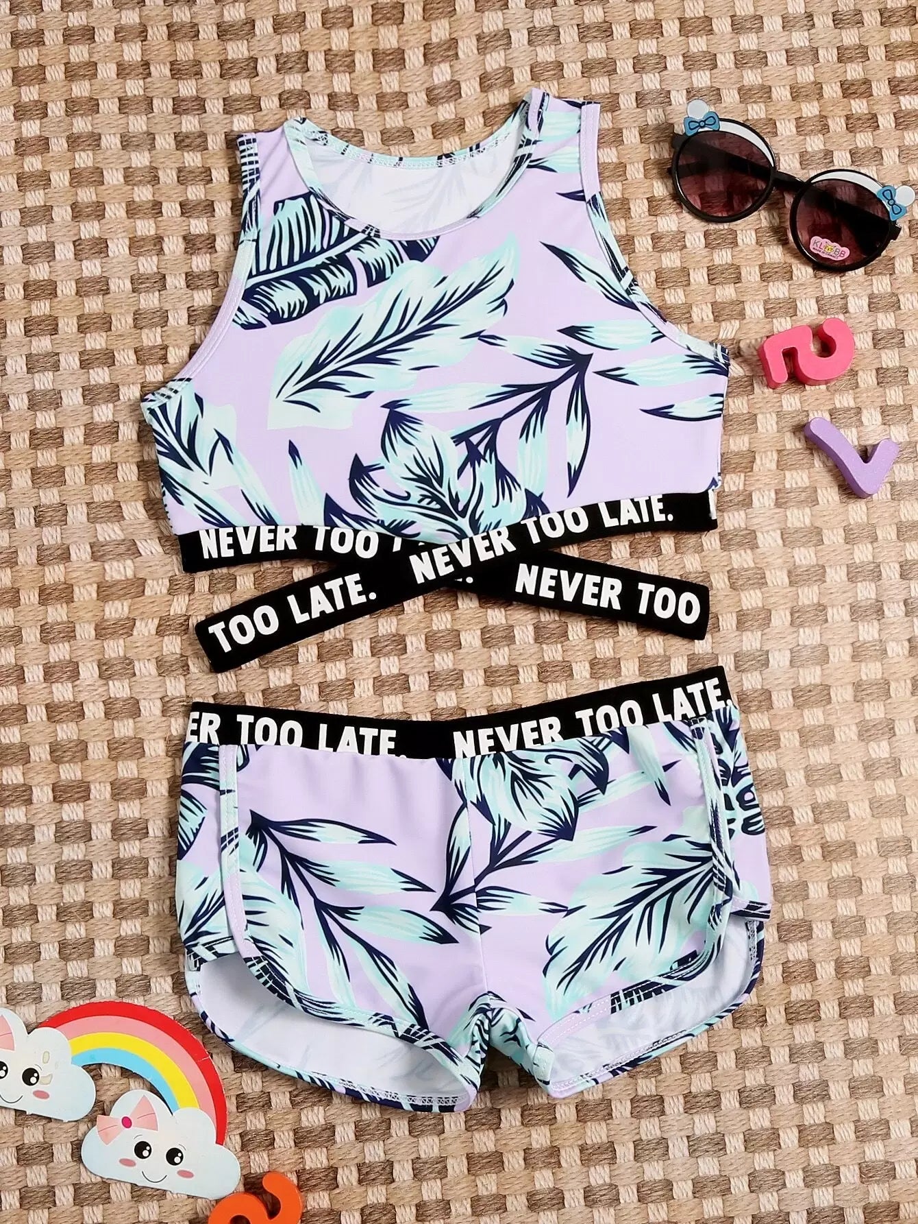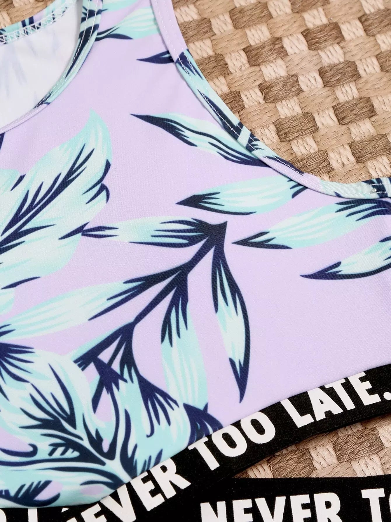 Kids - Girls Tropical Letter Tape Bikini Swimsuit