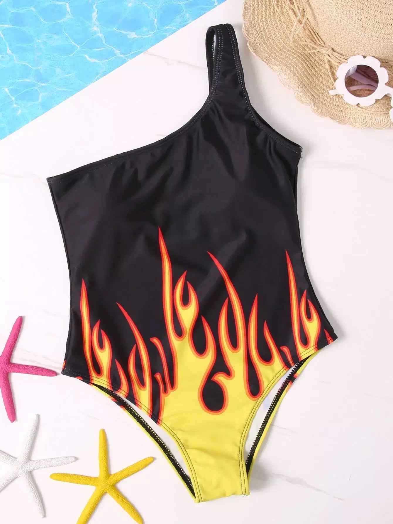 Girls Flame Print One Piece Swimsuit