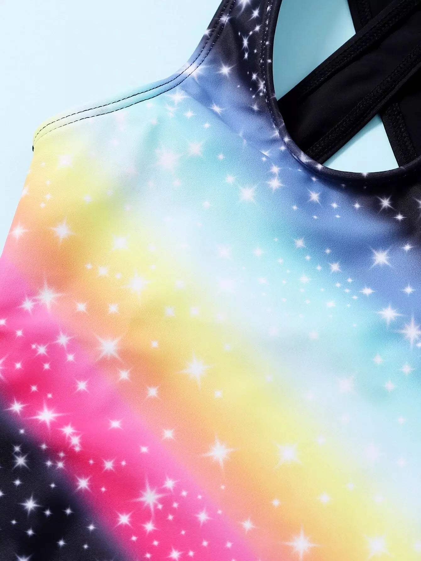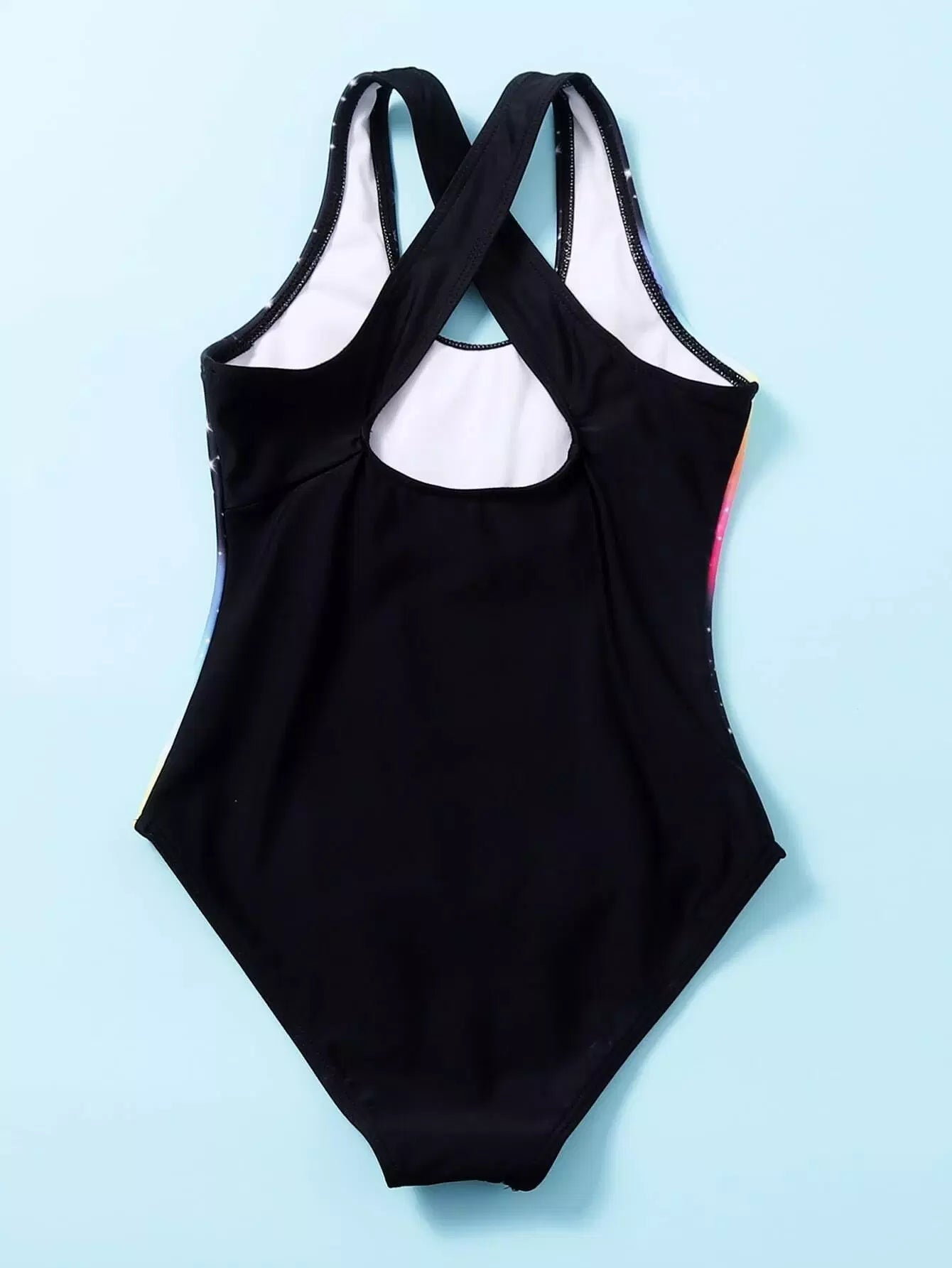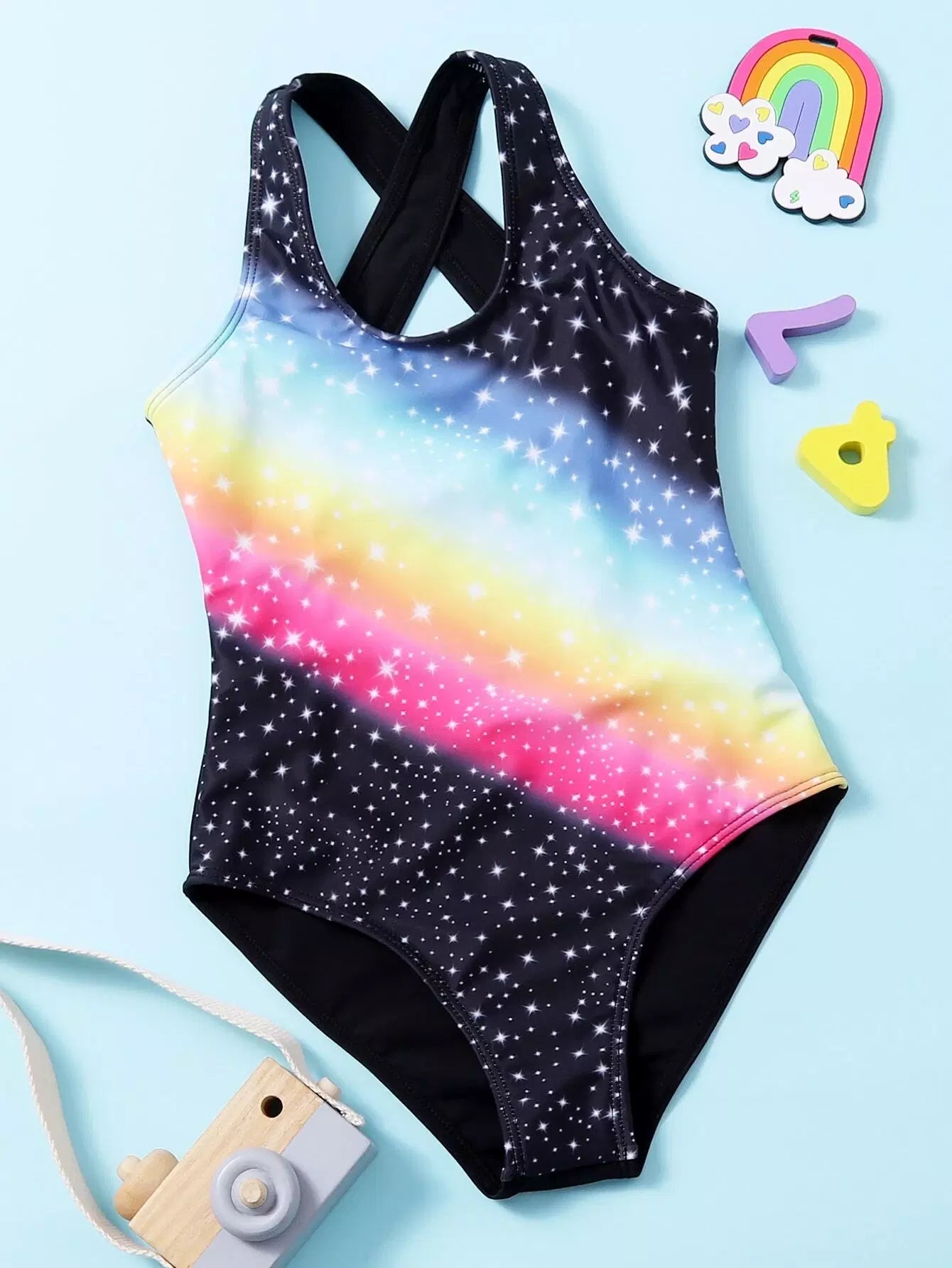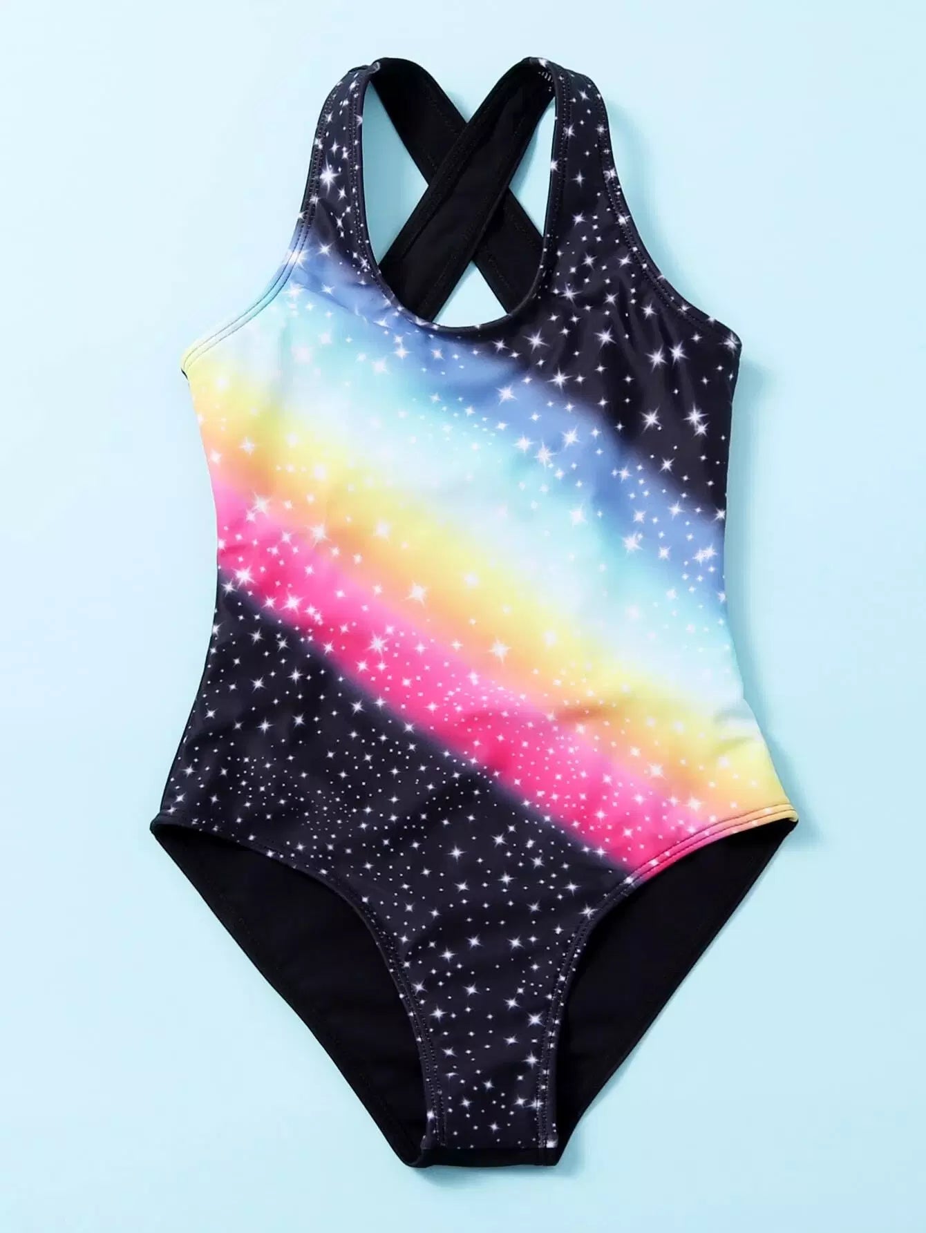 Kids - Girls Star & Rainbow Print One Piece Swimsuit