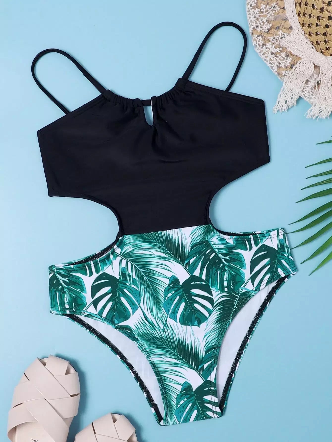Girls Tropical Cut-out One Piece Swimsuit