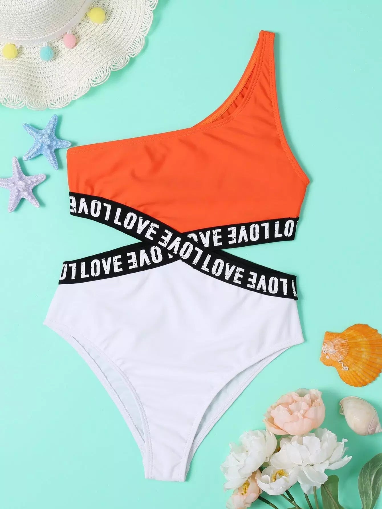 Girls Two Tone Cut-out One Piece Swimsuit