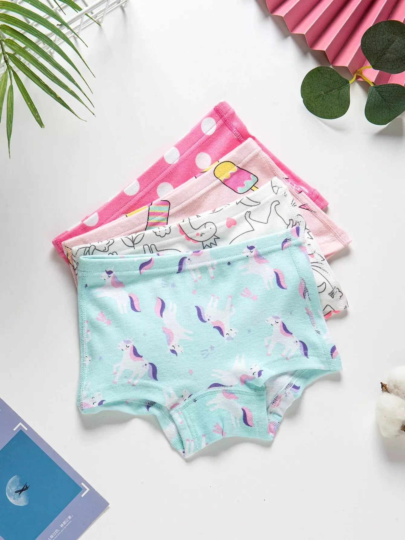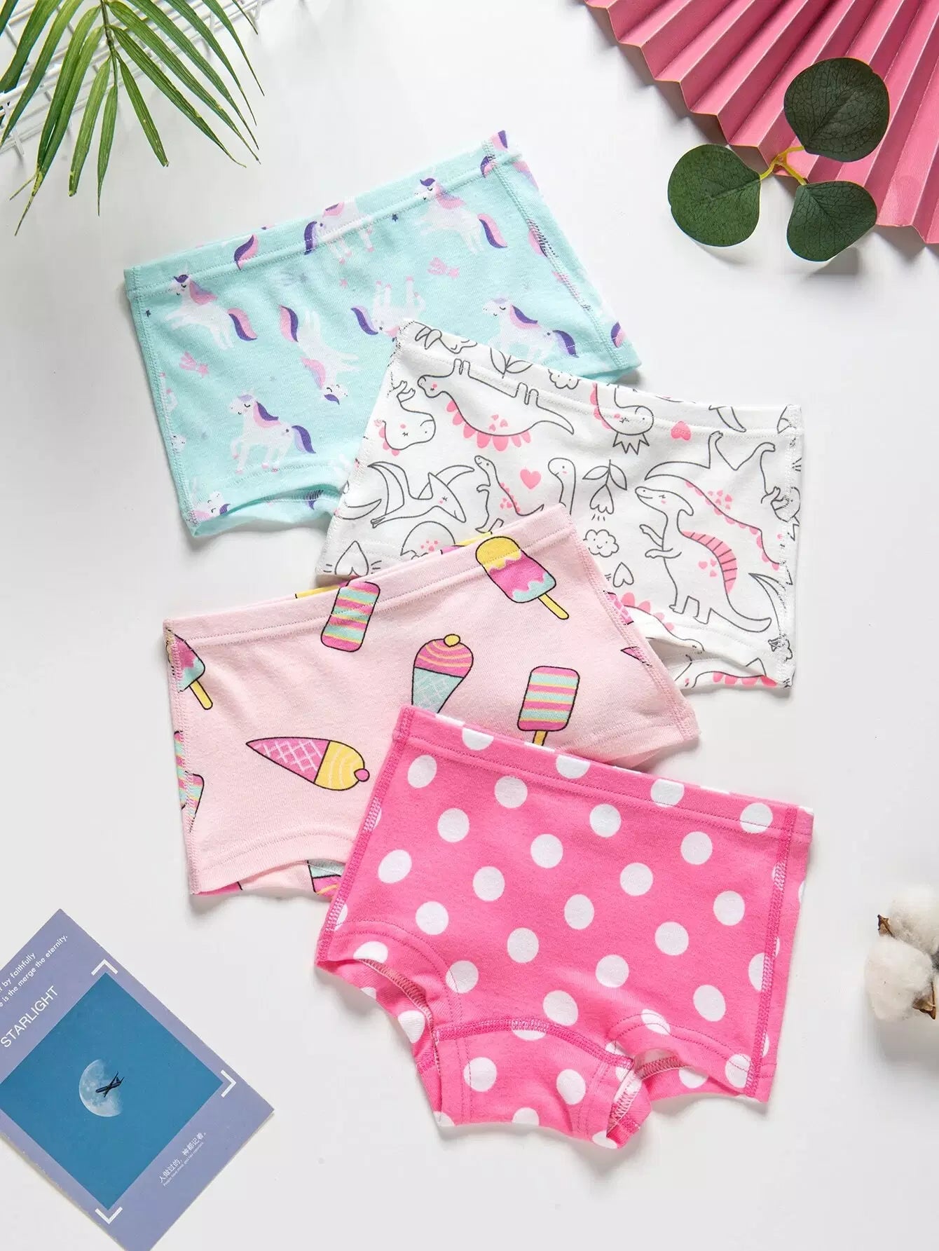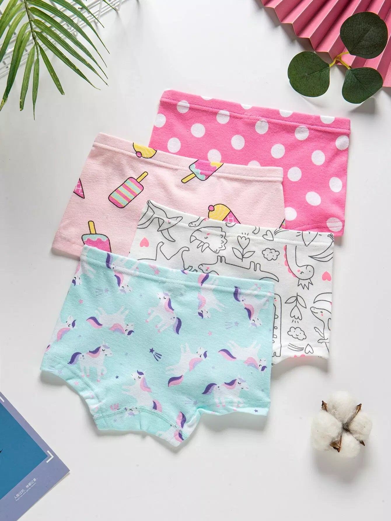 Girls 4pcs Cartoon & Polka Dot Print Shortie Brief