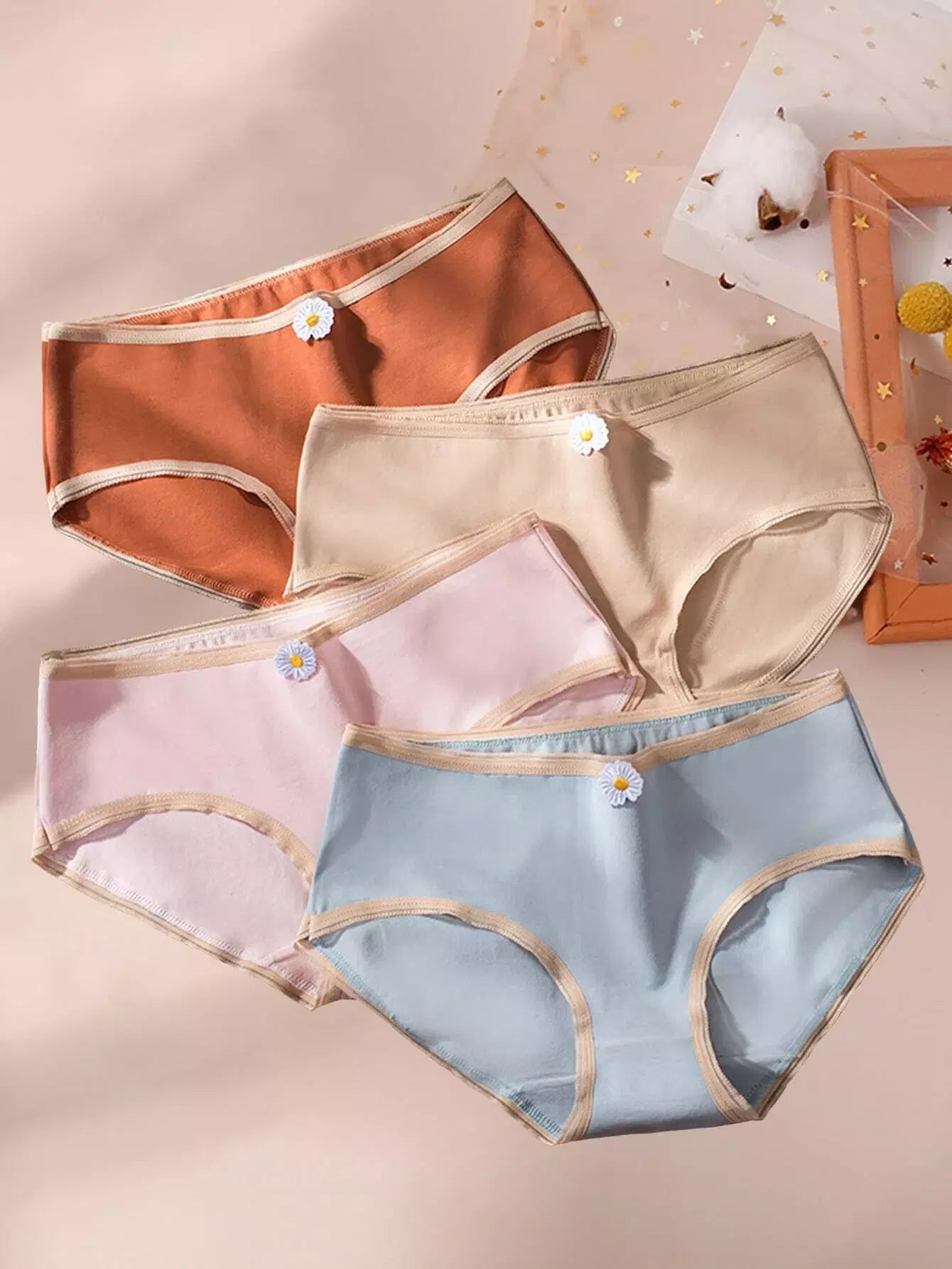 Girls 4pcs Floral Patched Contrast Binding Panties