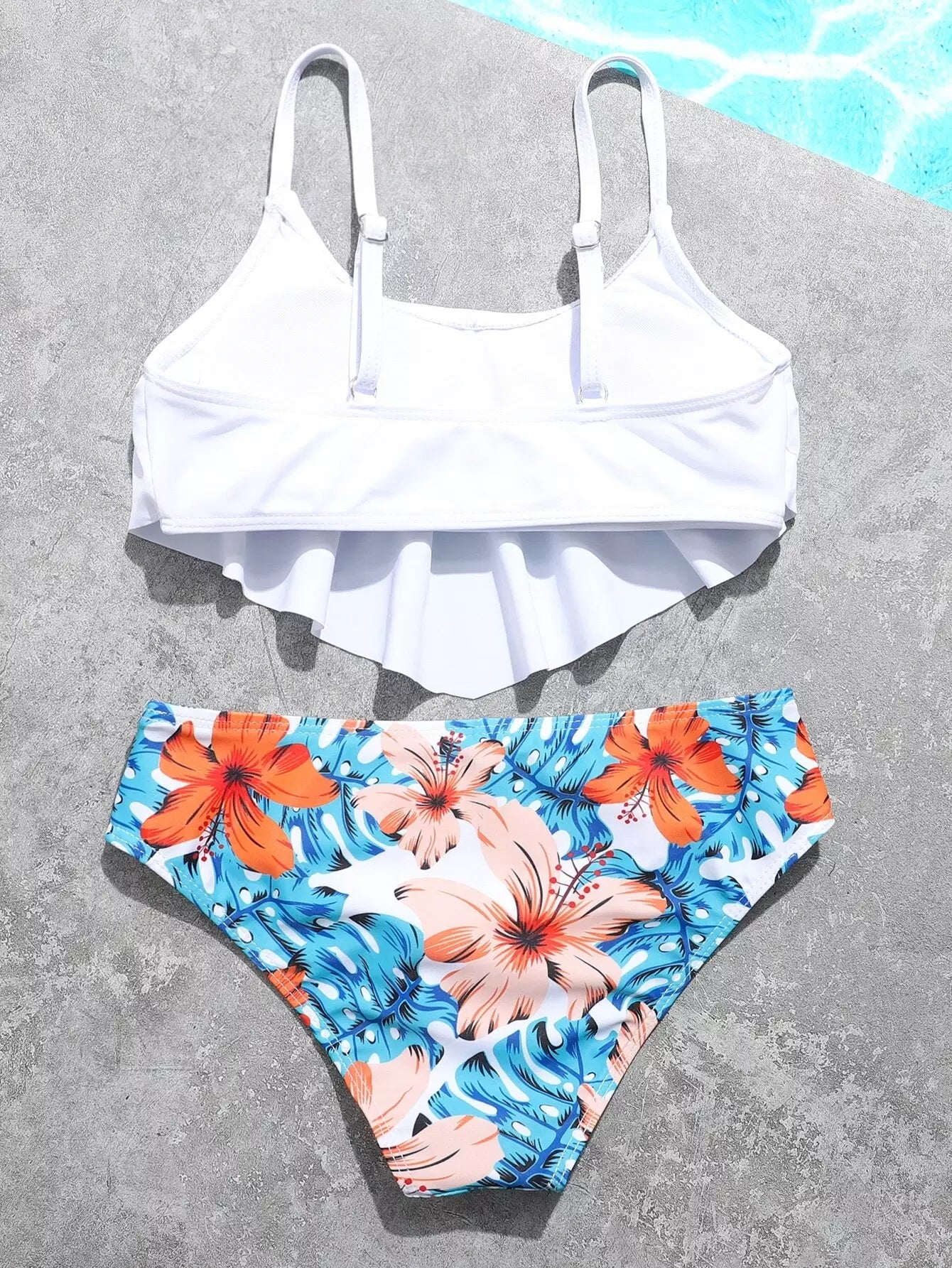 Girls Tropical Hanky Hem Bikini Swimsuit