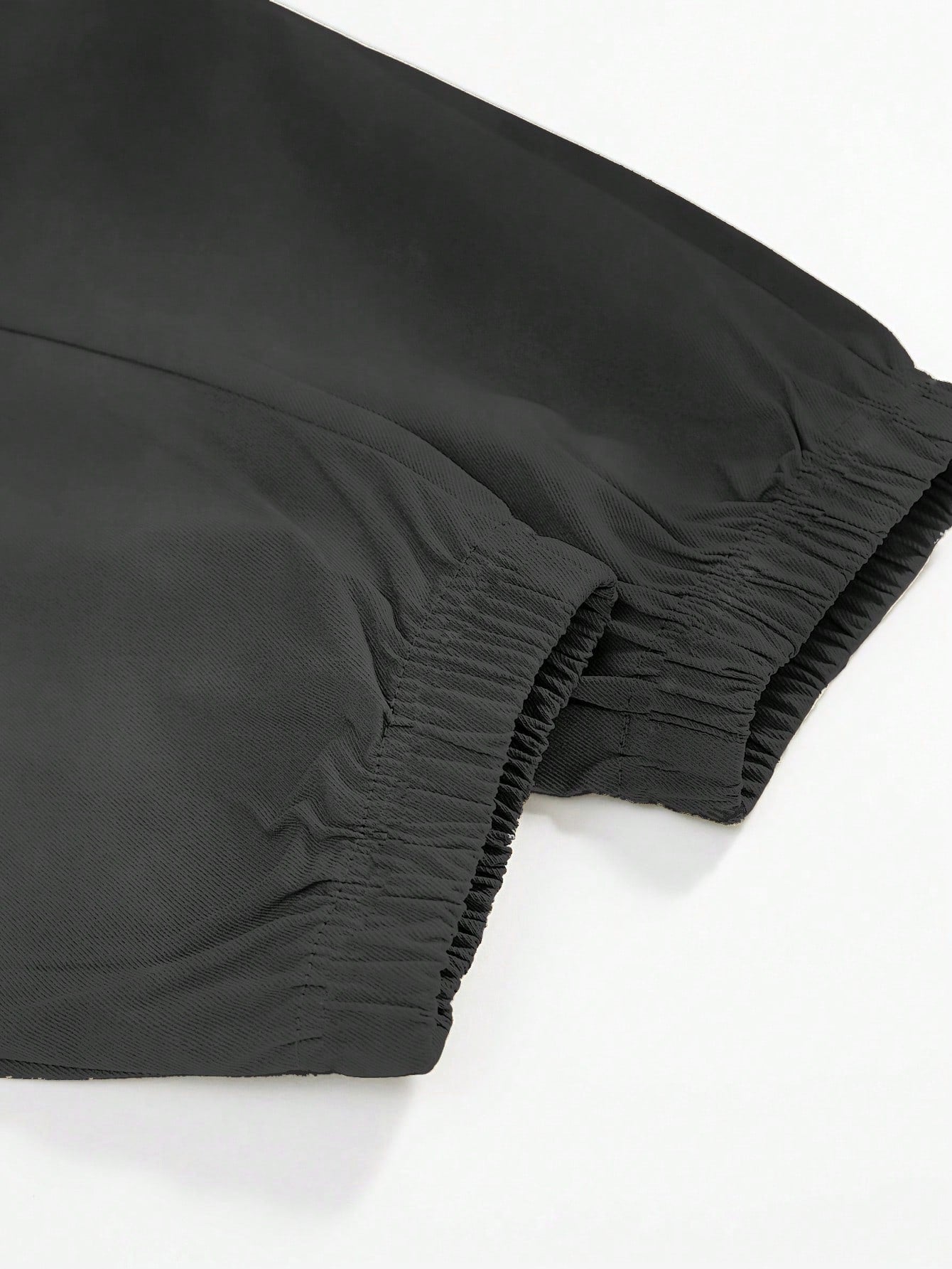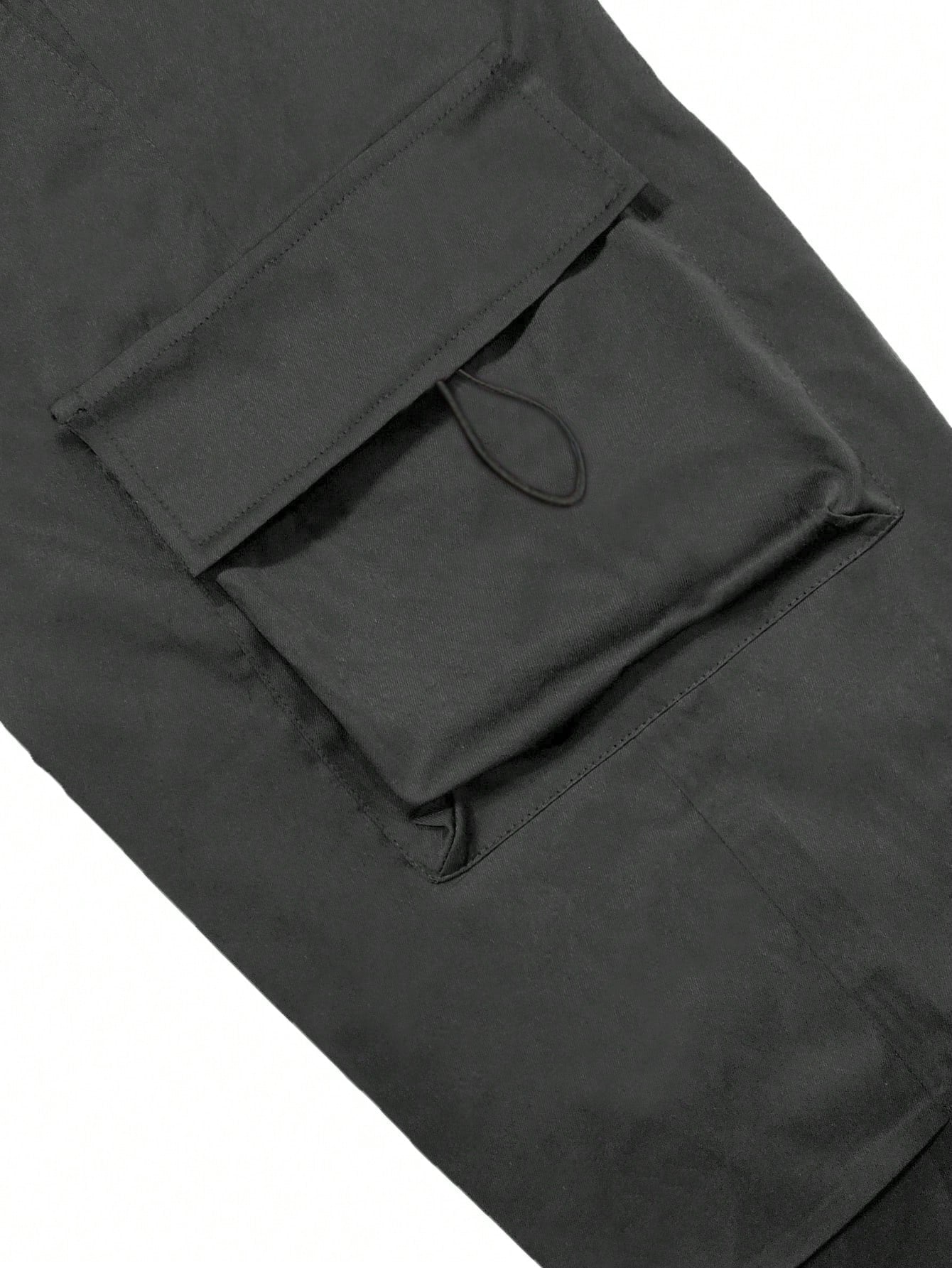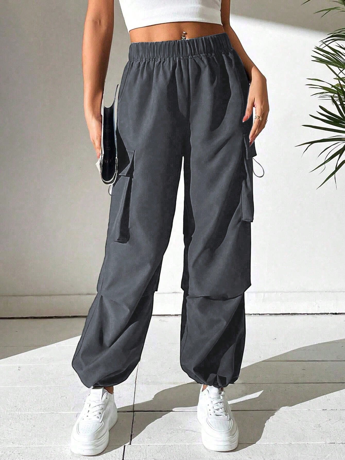 1pc Teen Girl Loose Versatile Fold-Over Pocket Drawstring Side Cargo Style Dress Pants, Outdoor Jumpsuit,