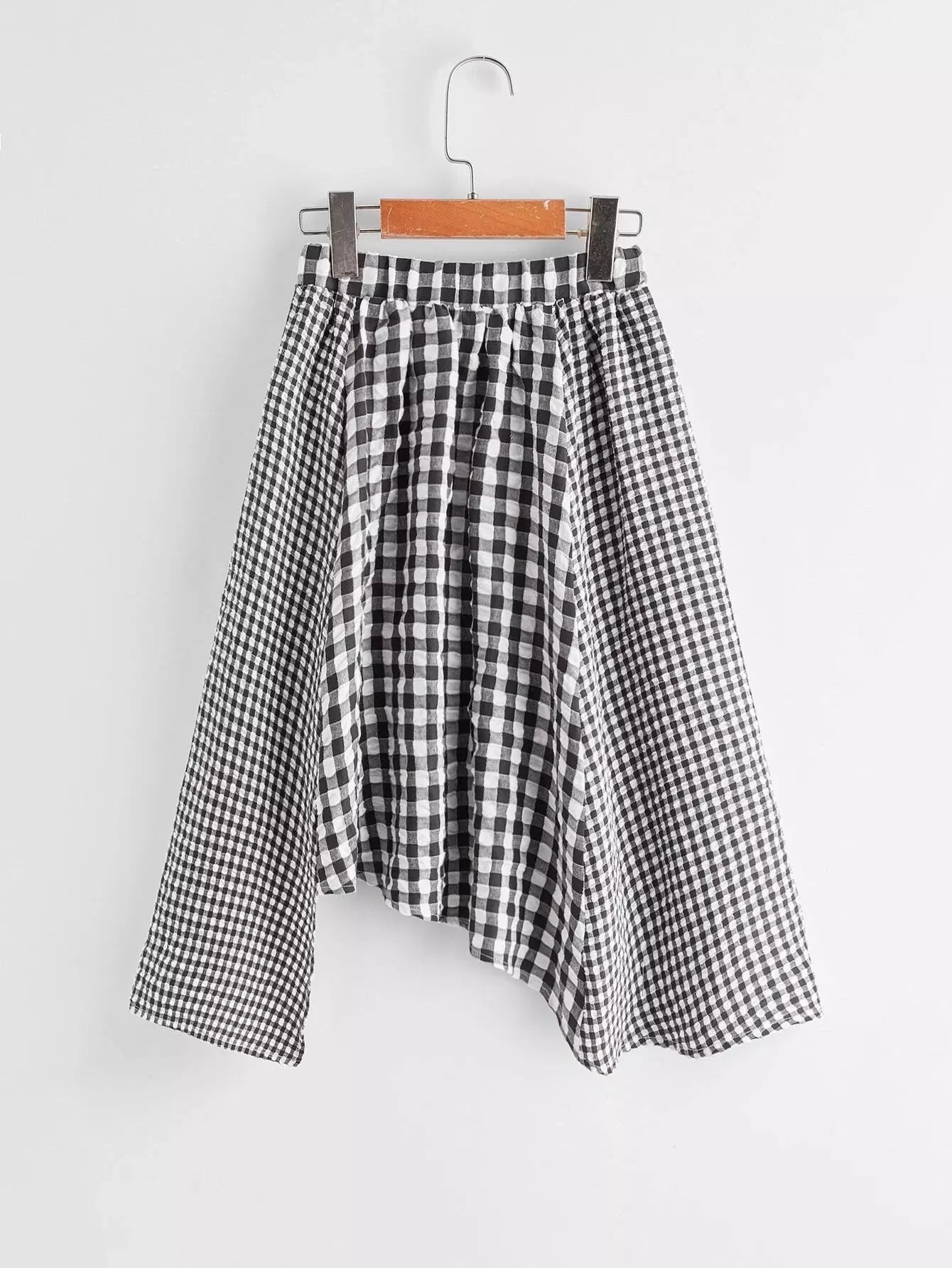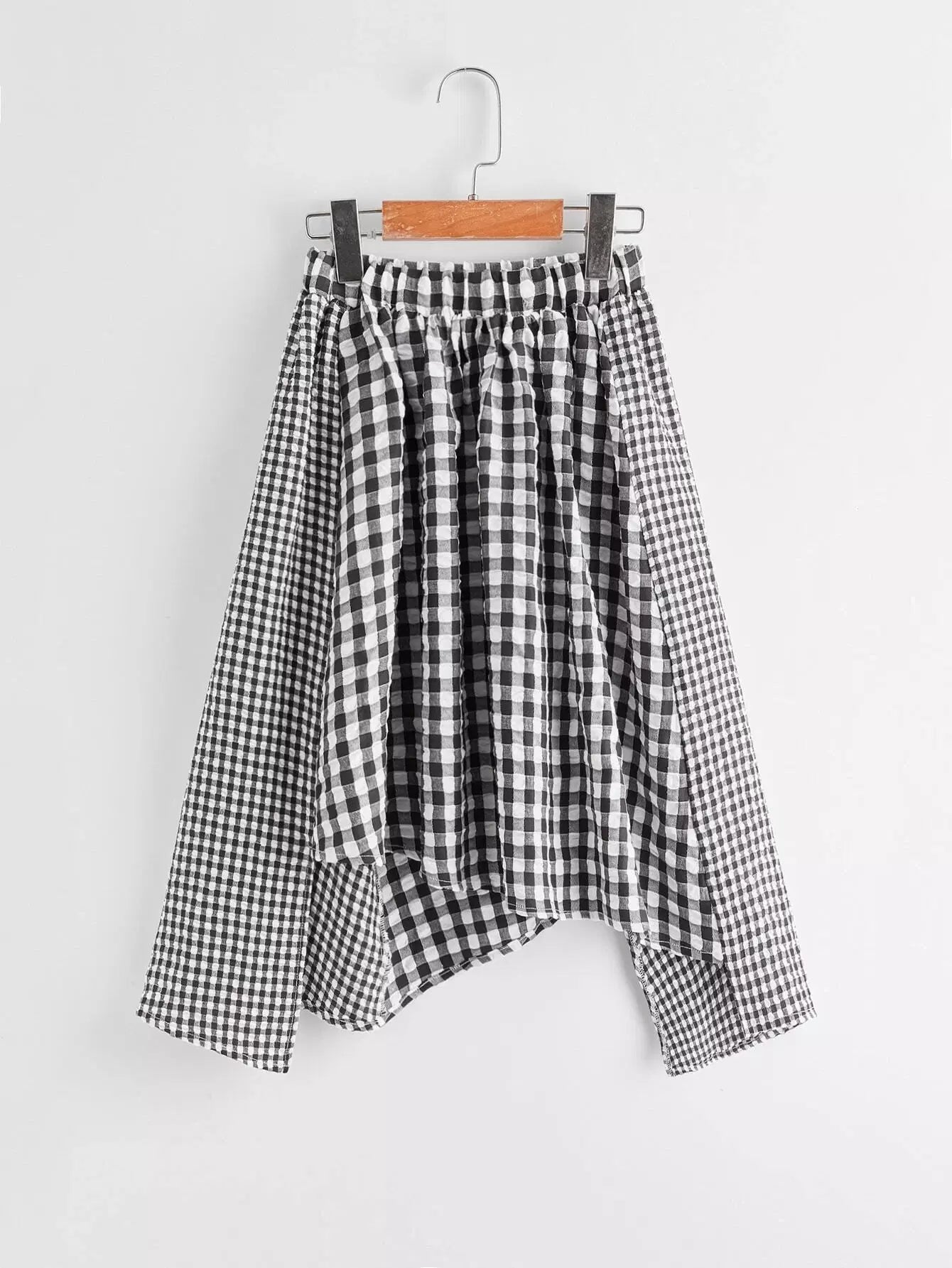 Kids - Girls Asymmetrical Hem Gingham Skirt