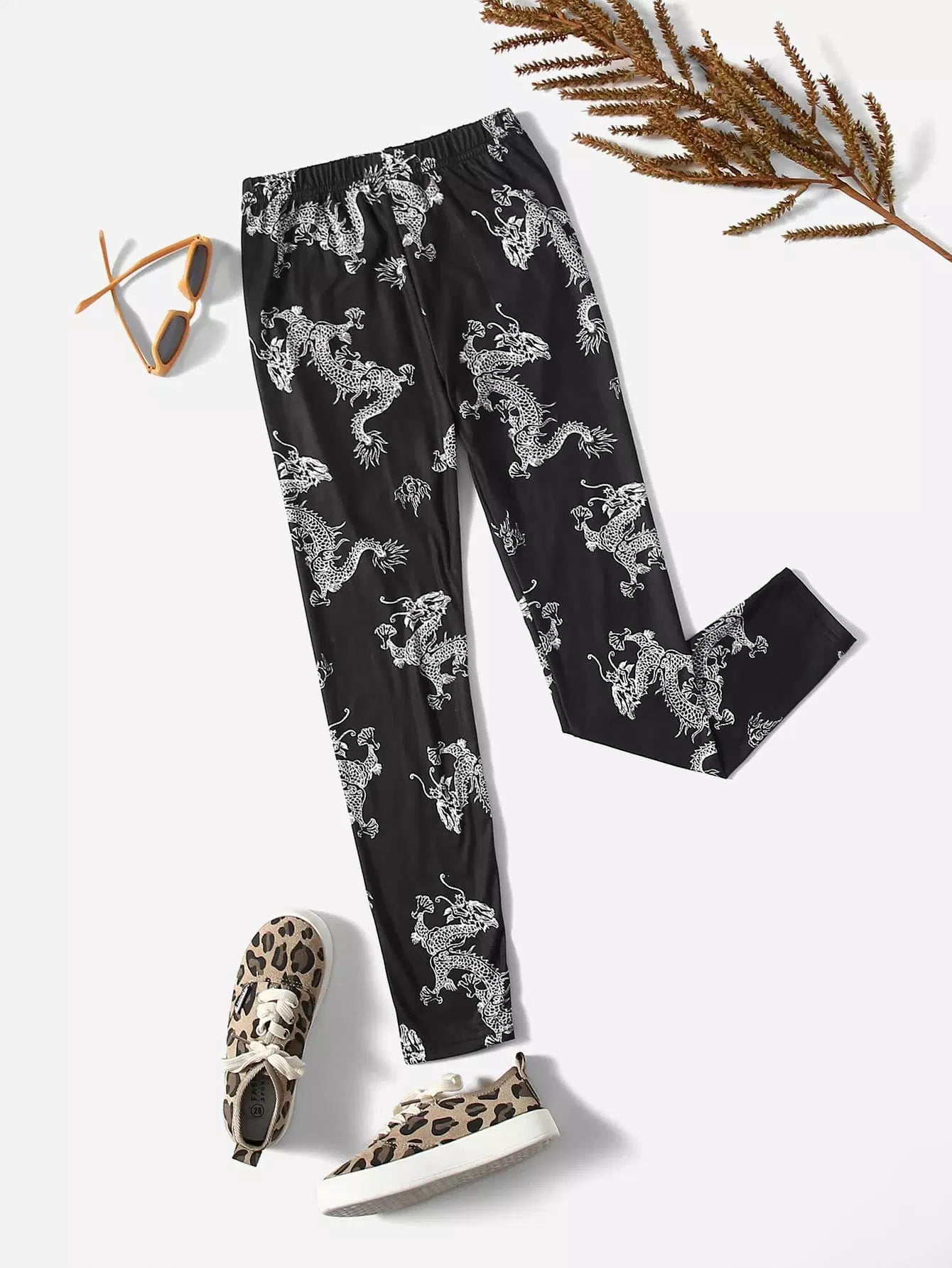 Girls Chinese Dragon Print Leggings