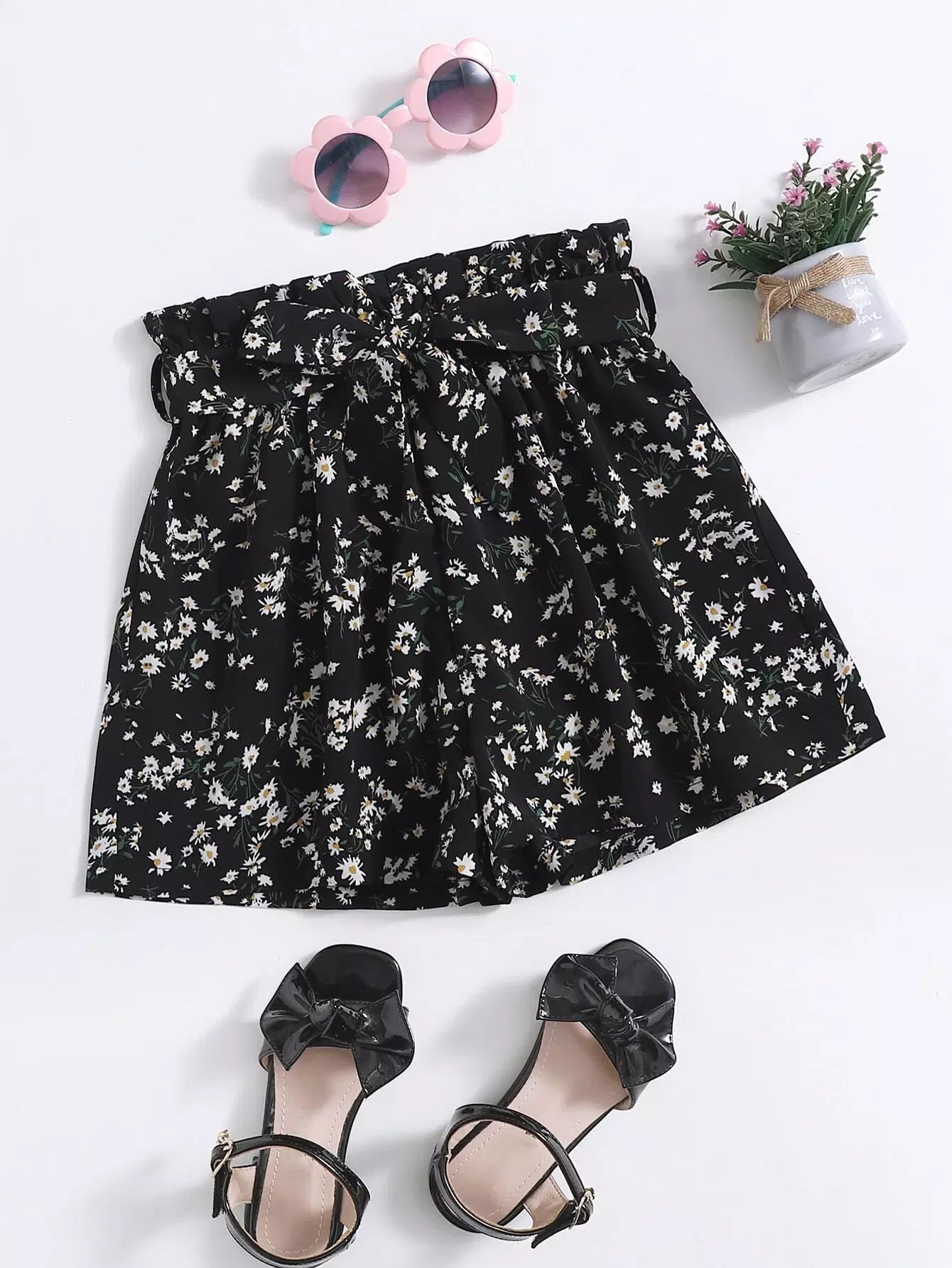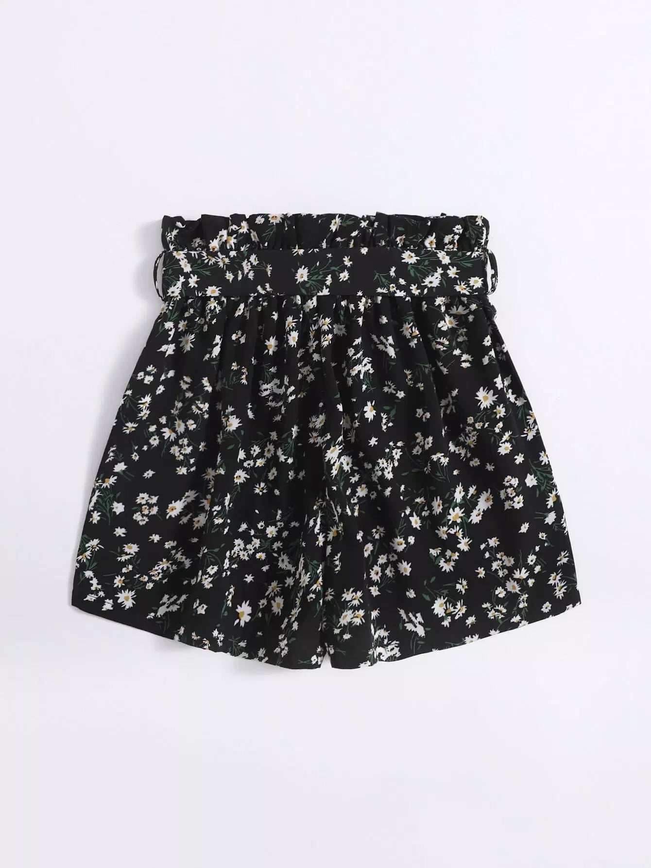 Girls Ditsy Floral Paperbag Waist Shorts Without Belt