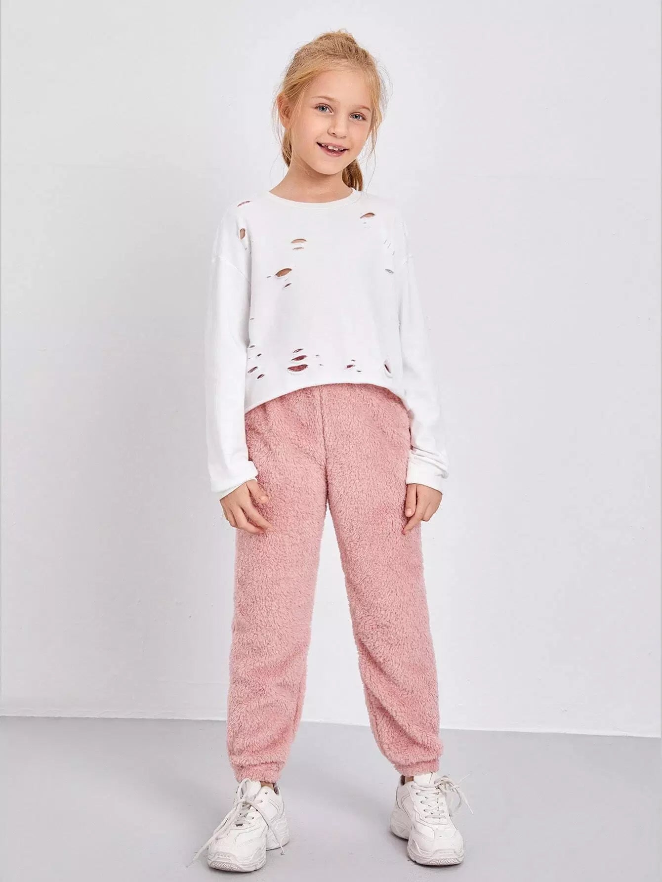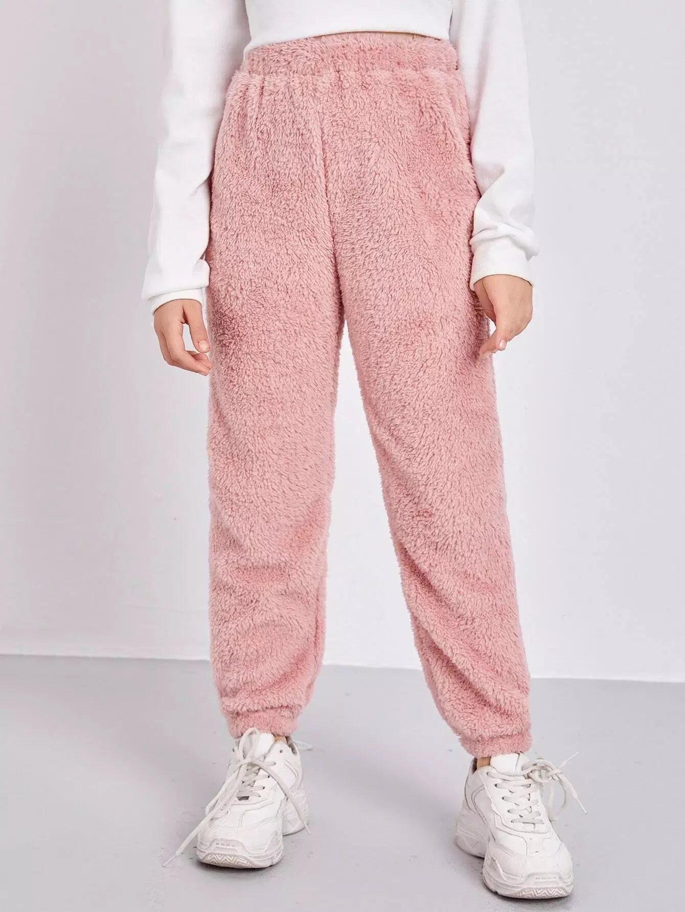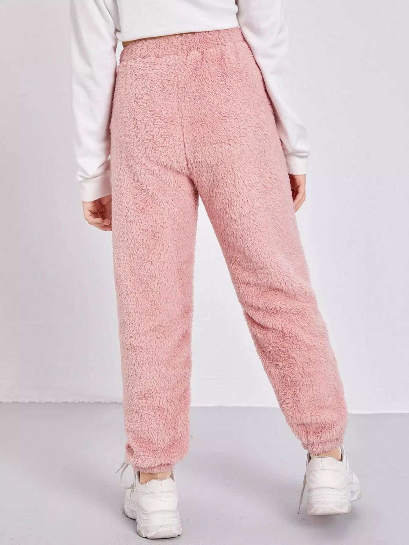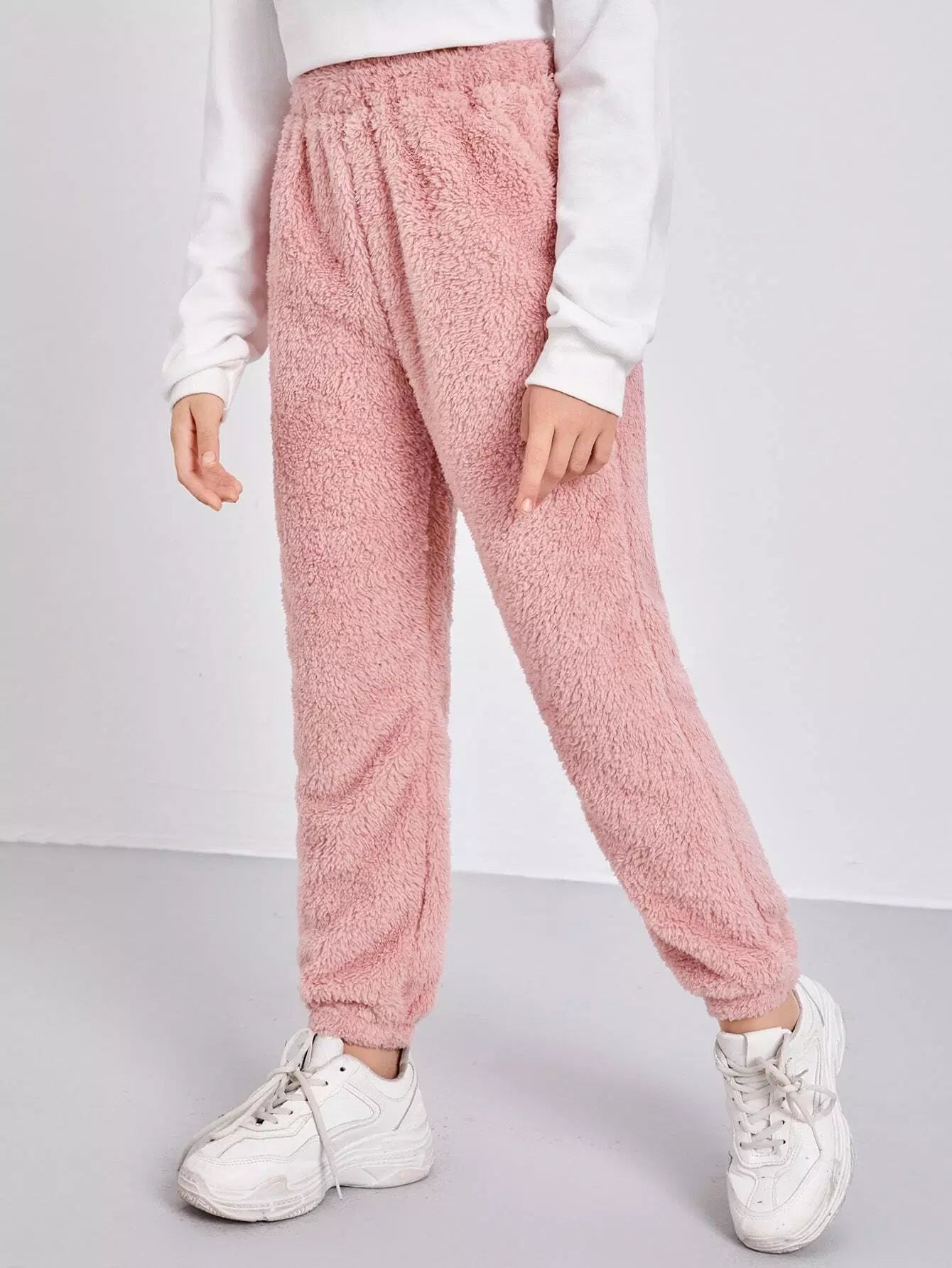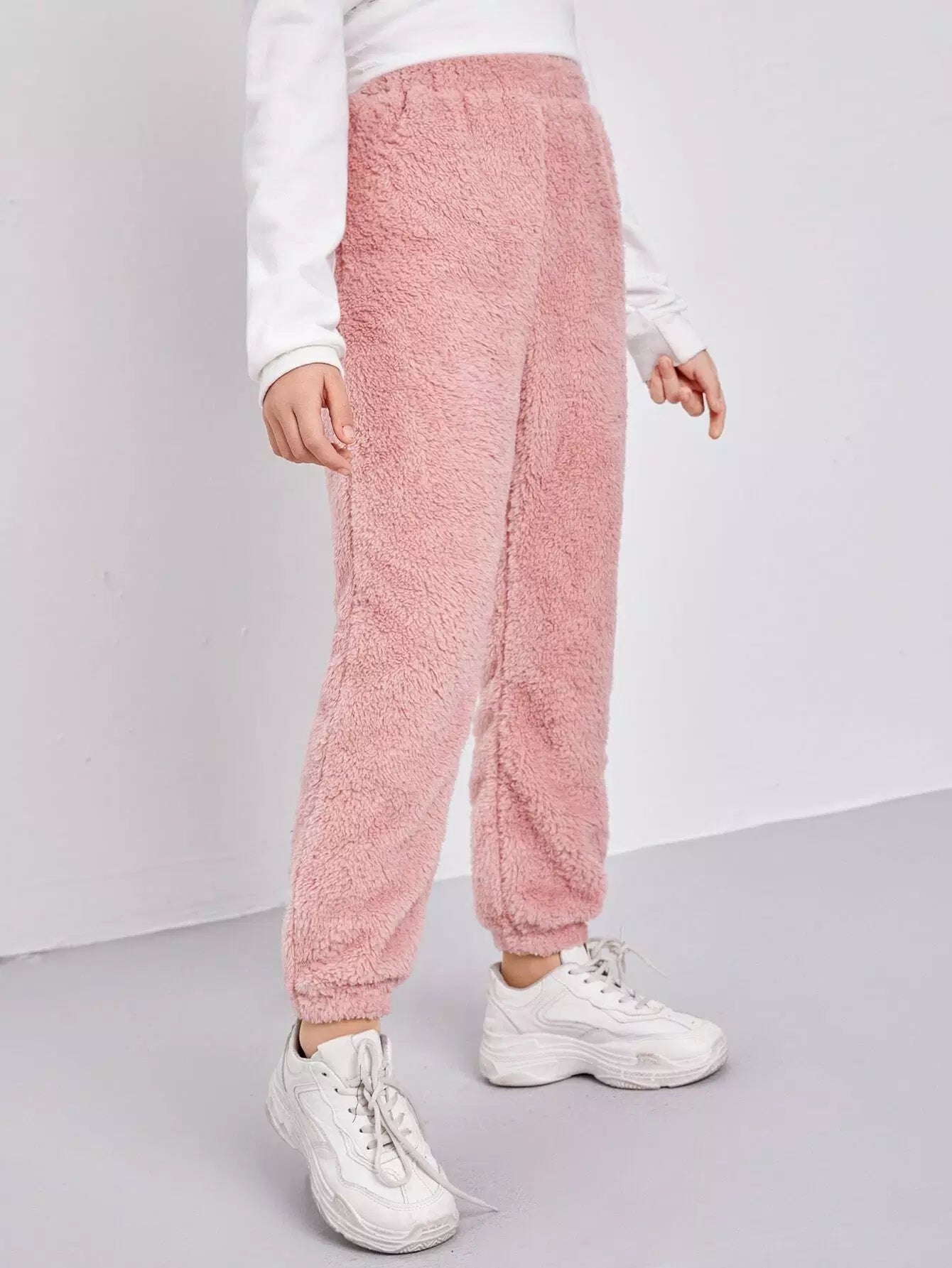 Kids - Girls Elastic Waist Solid Teddy Pants