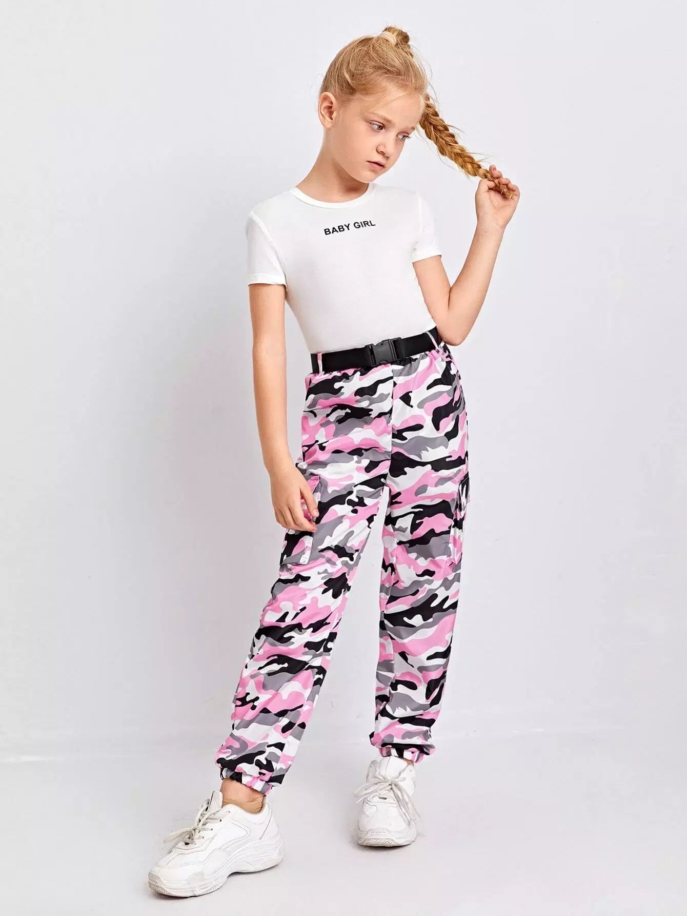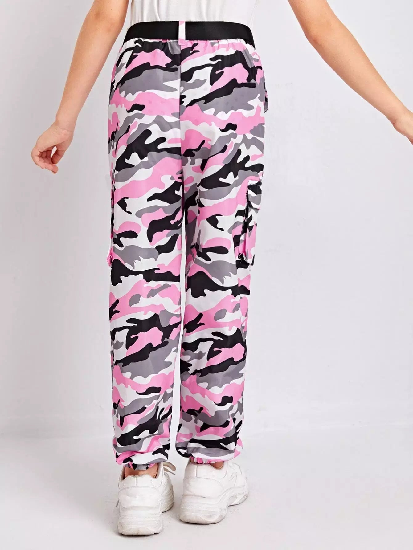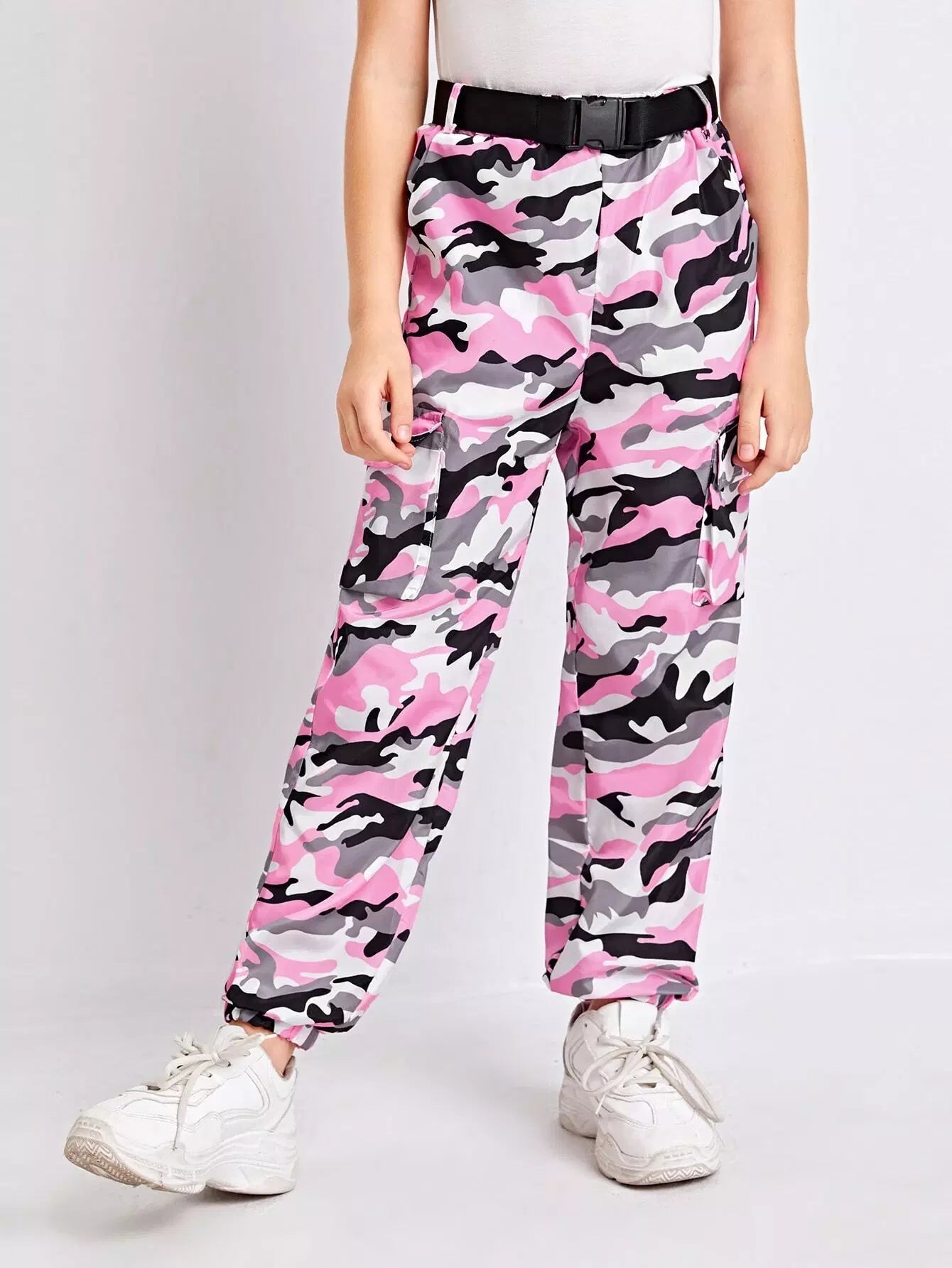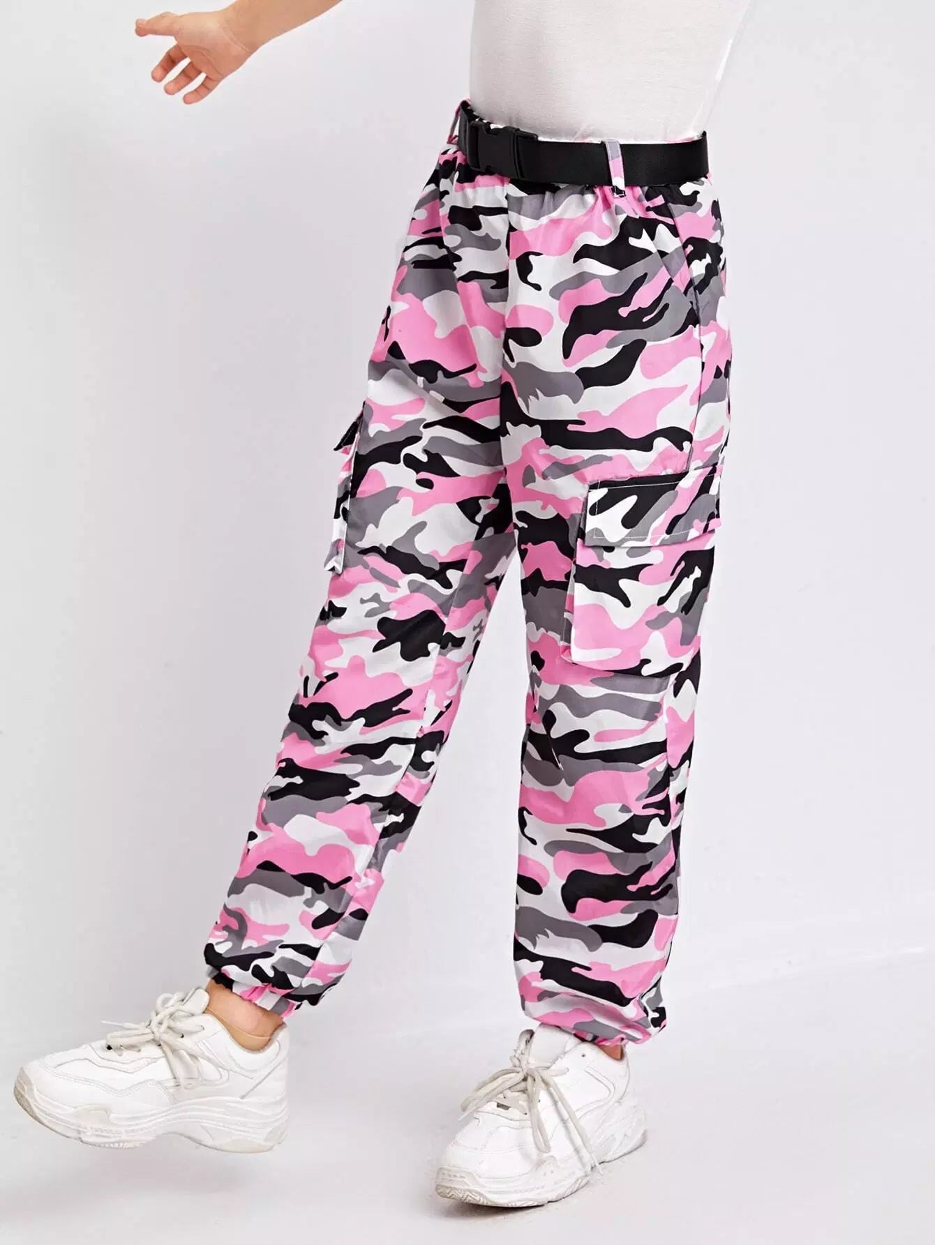 Girls Flap Pocket Side Buckle Camo Pants Without Belt