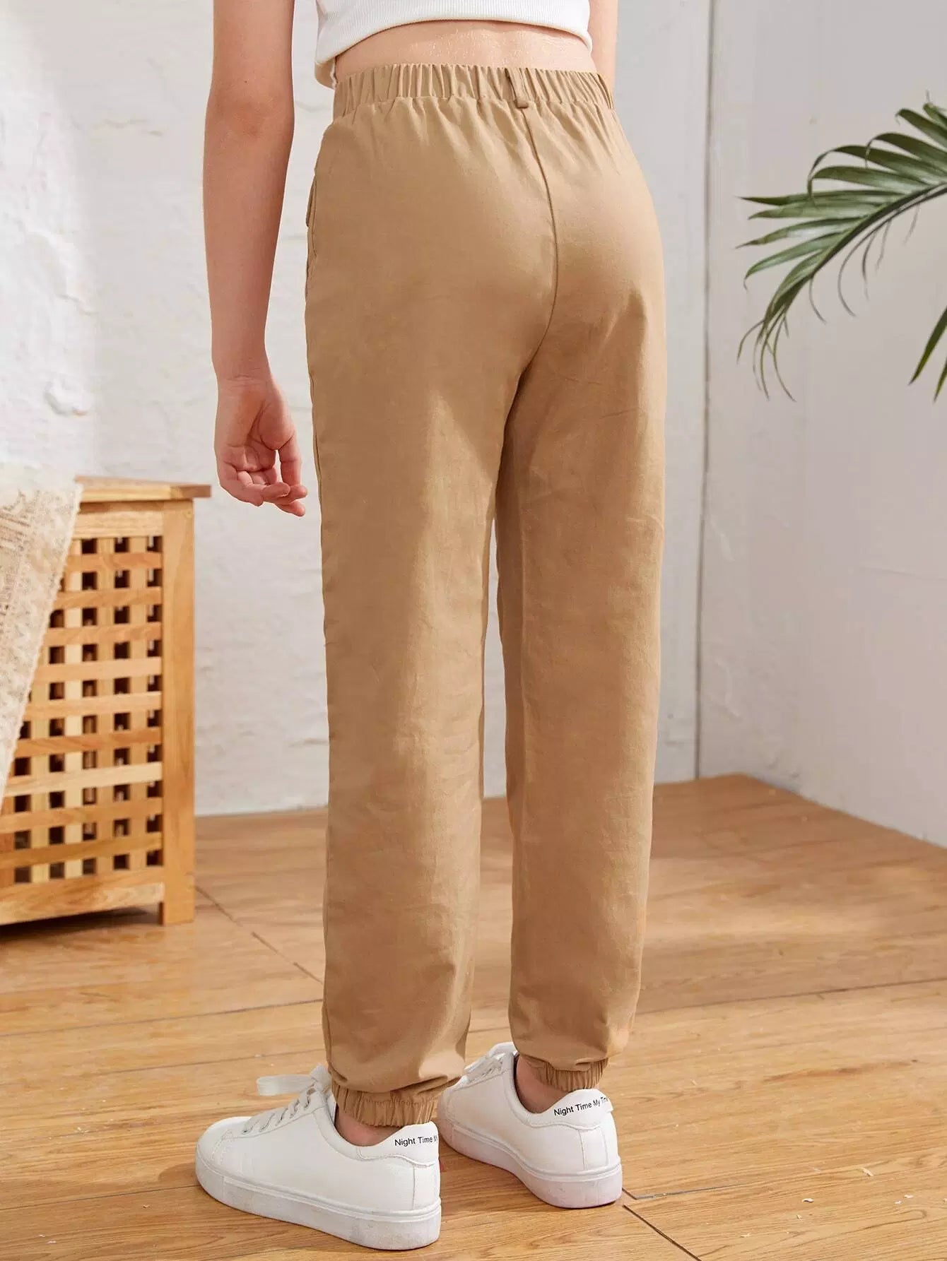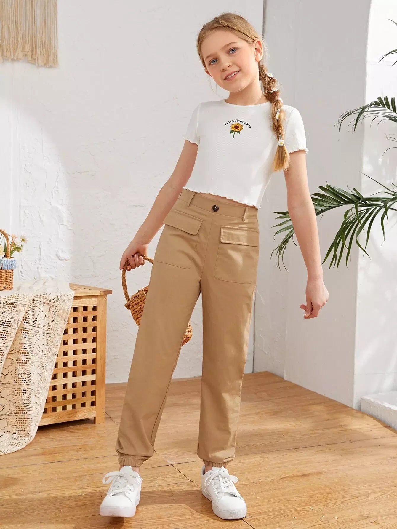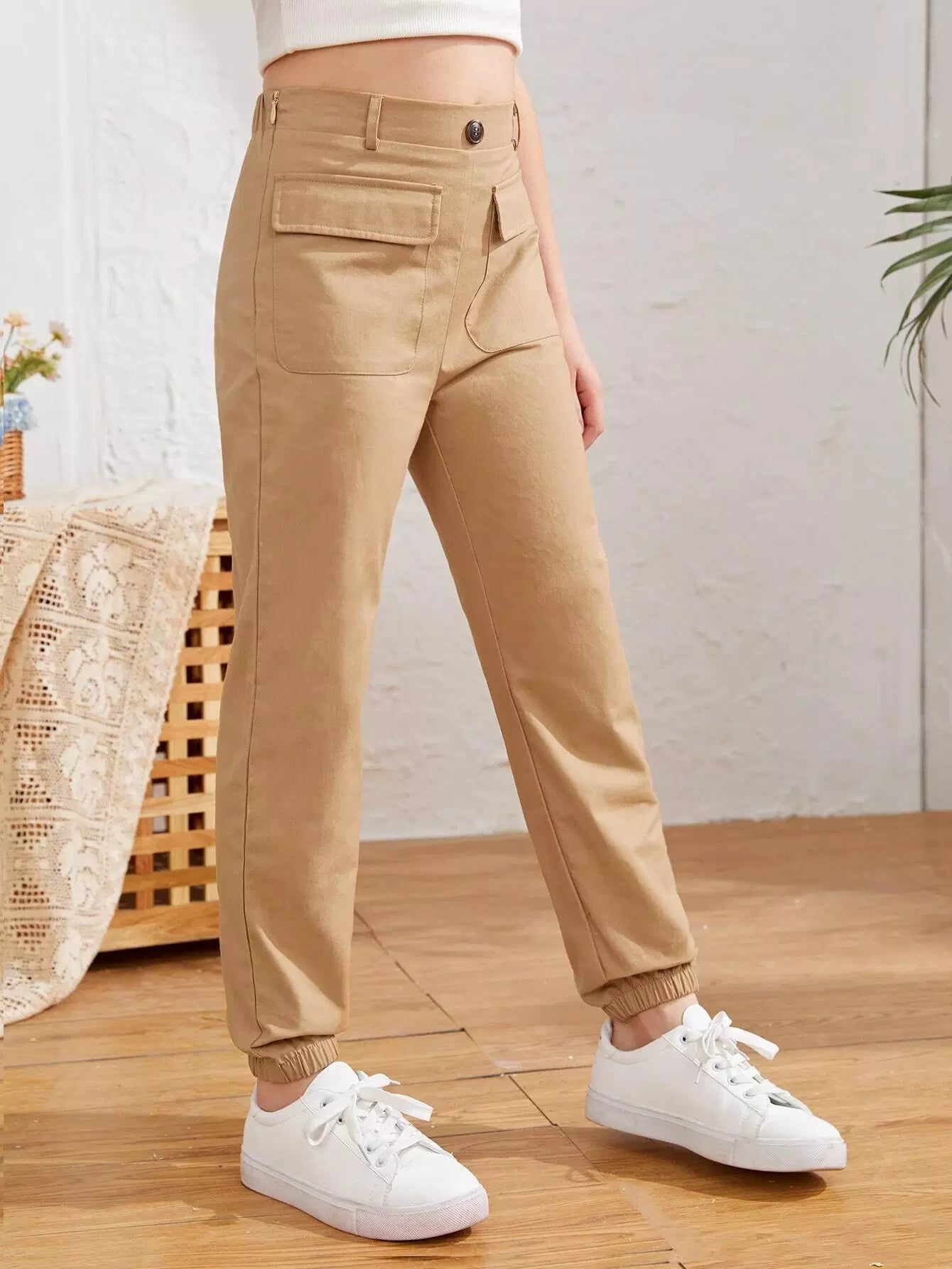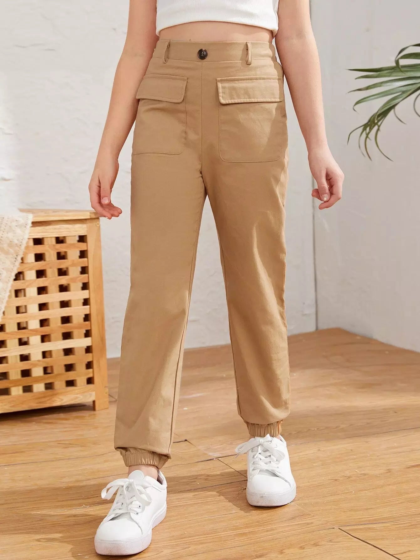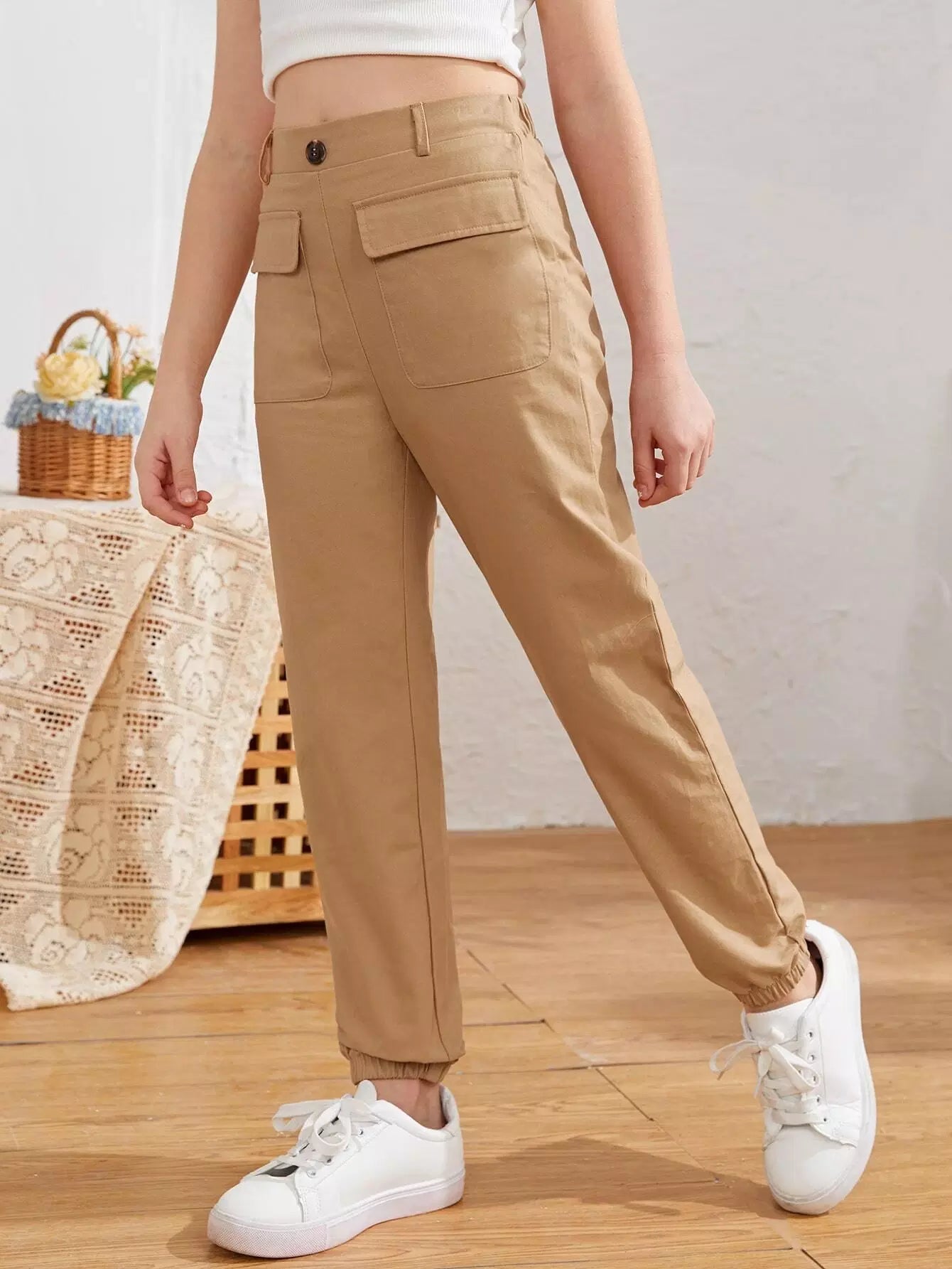 Girls Flap Pocket Solid Pants