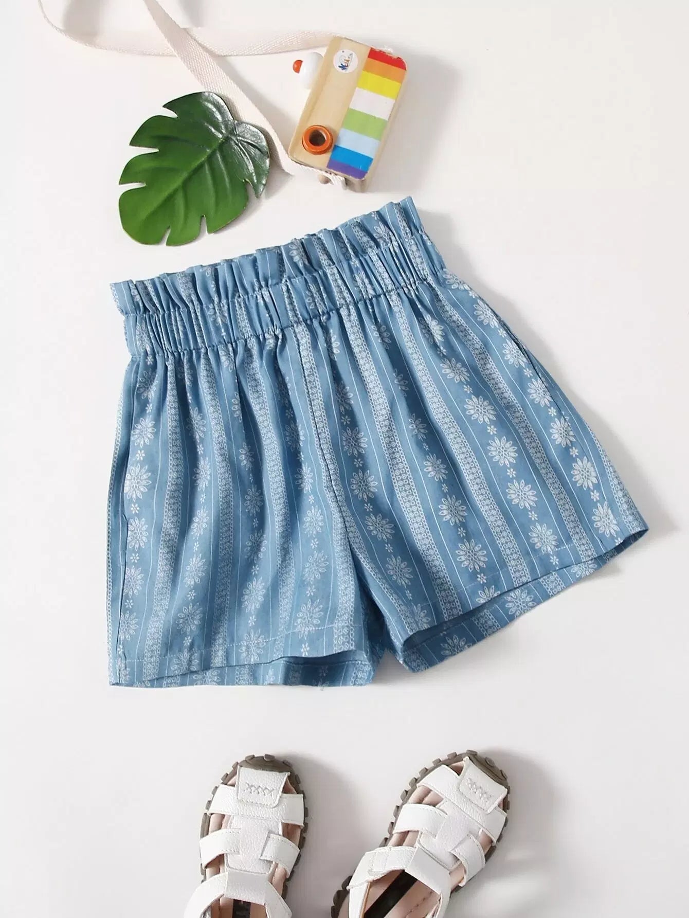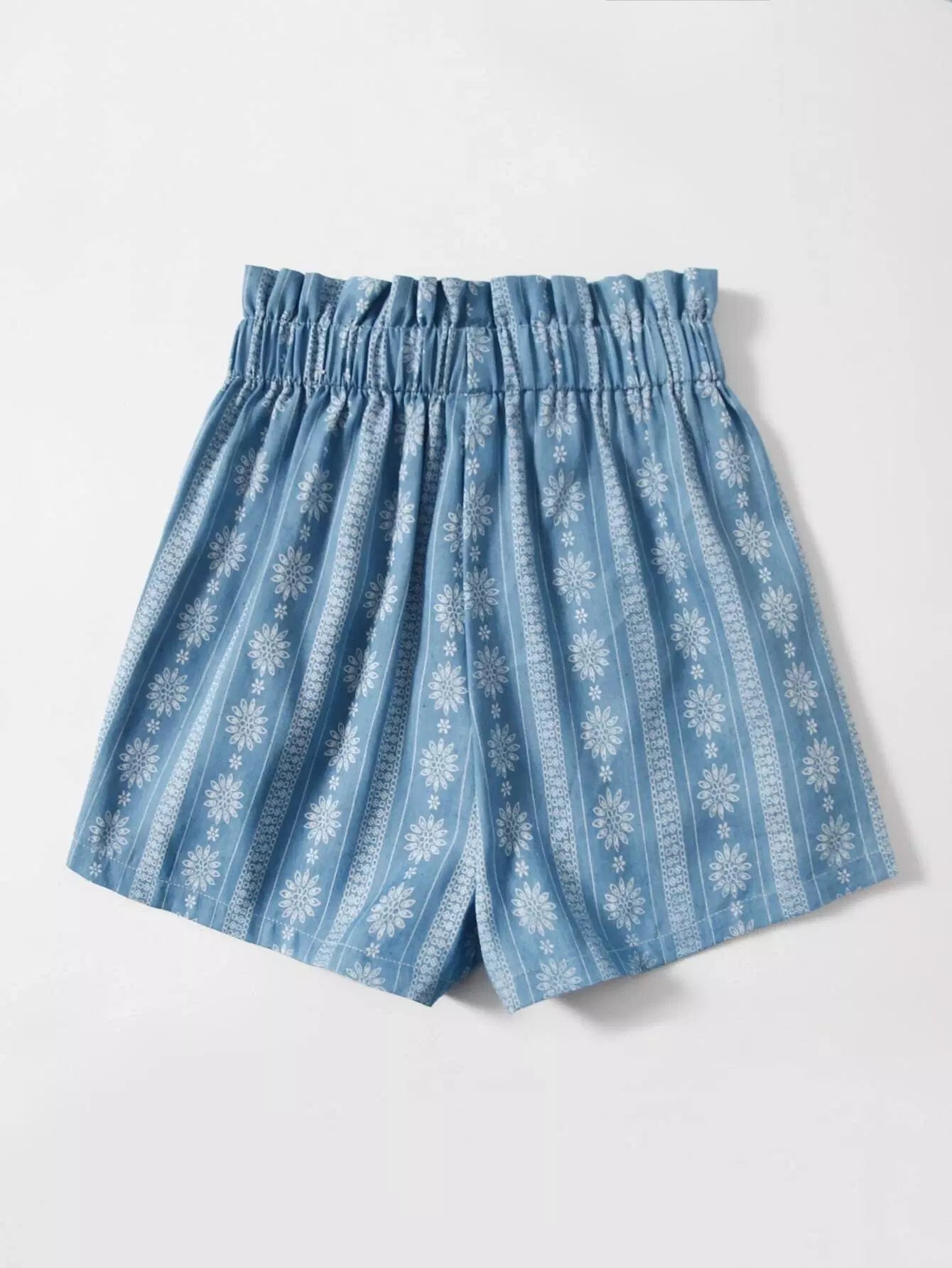 Girls Floral Paper Bag Waist Shorts