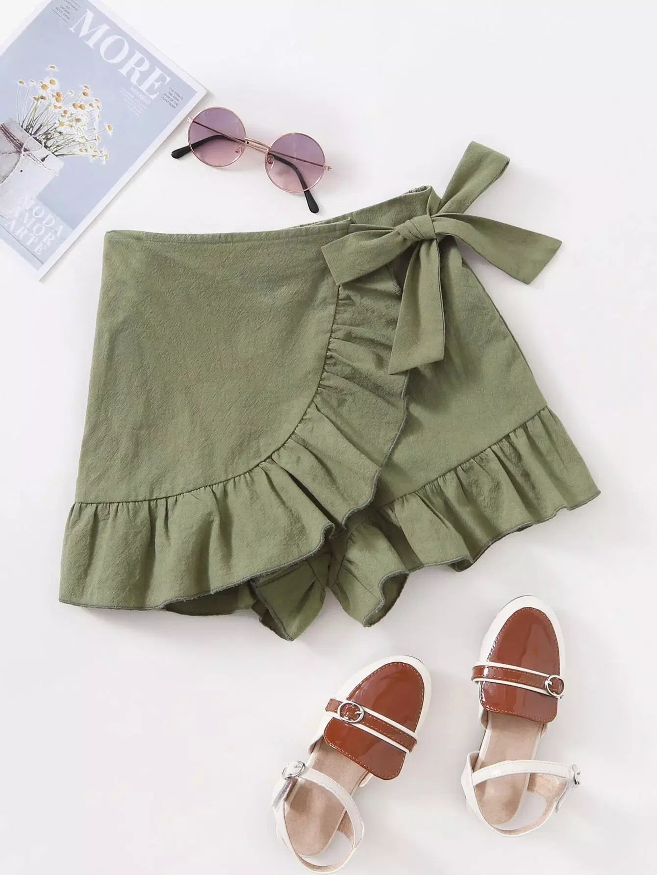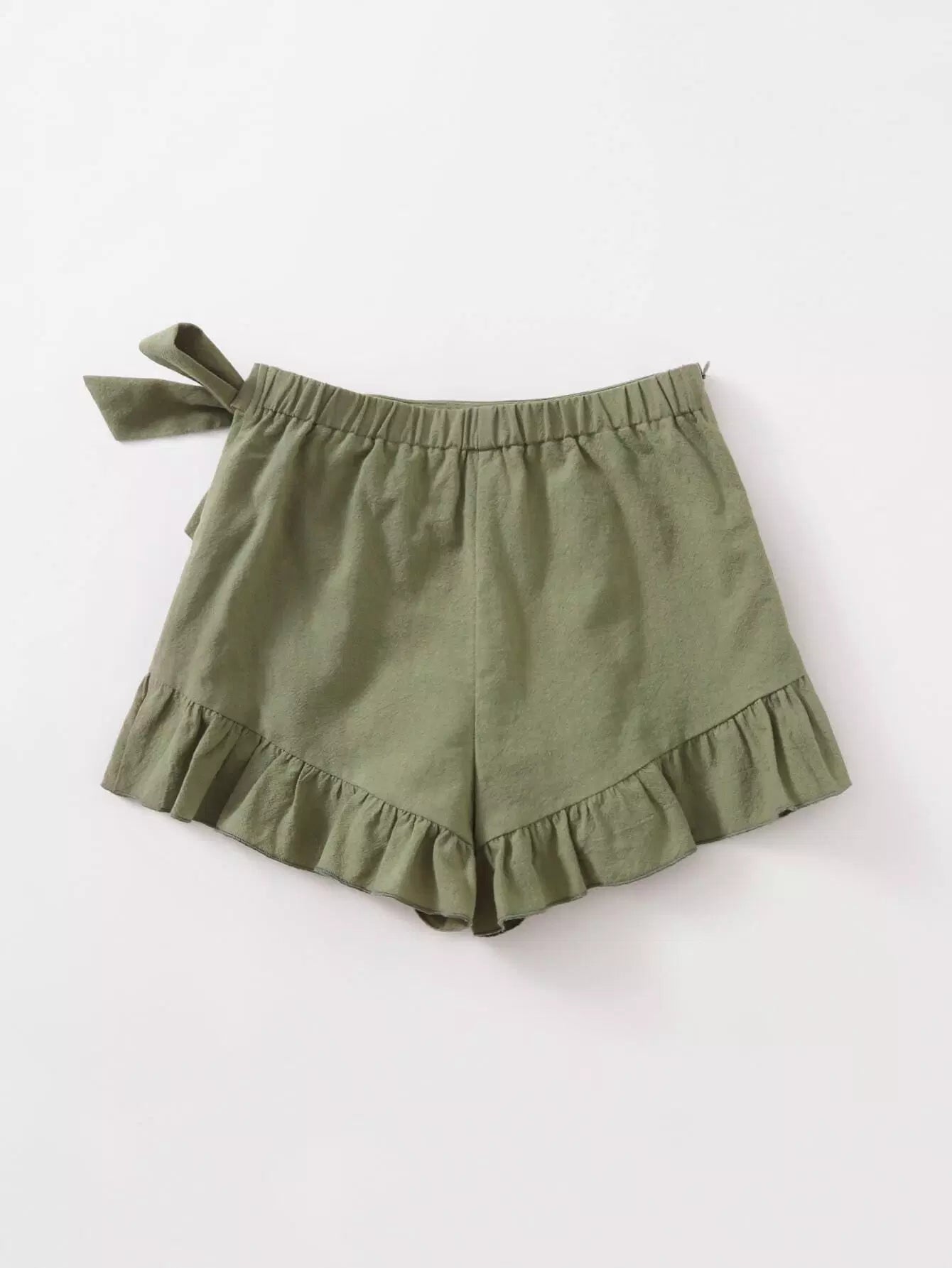 Girls Knot Side Ruffle Hem Shorts