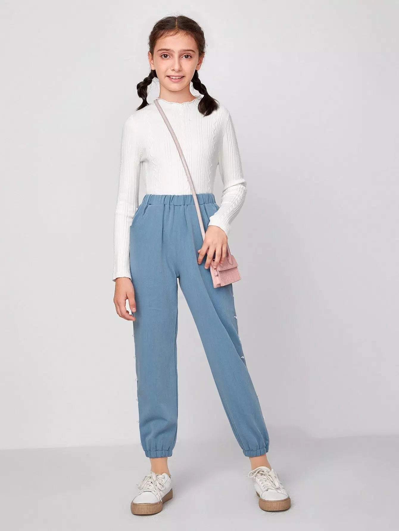 Kids - Girls Pearl Beaded Slant Pocket Pants