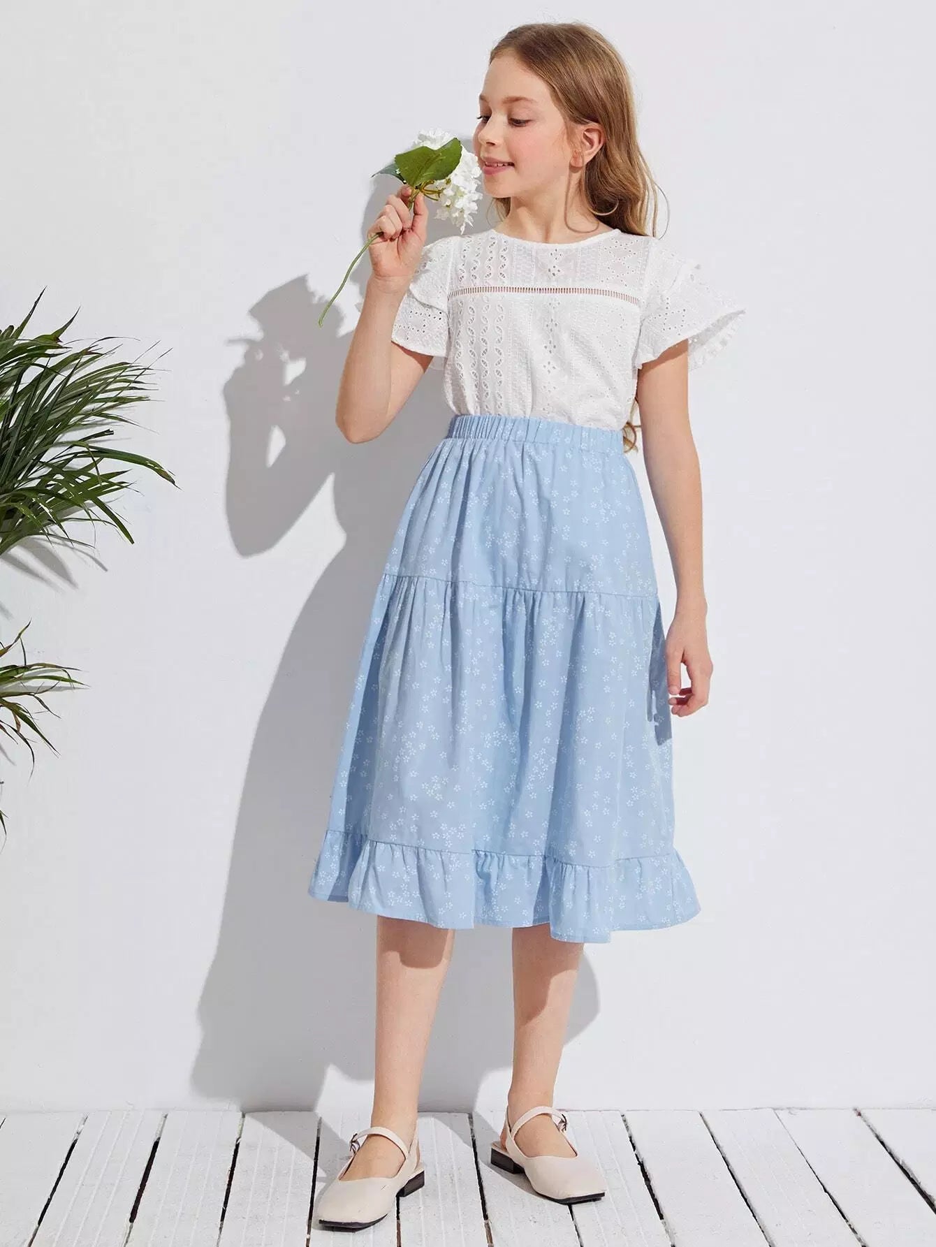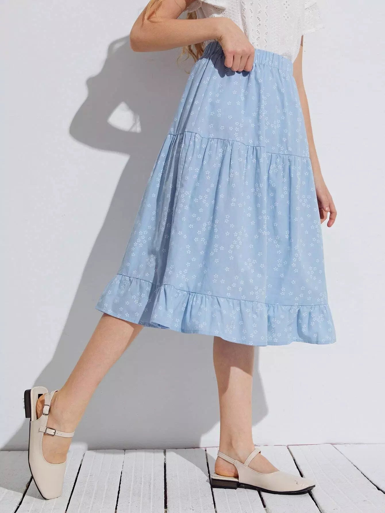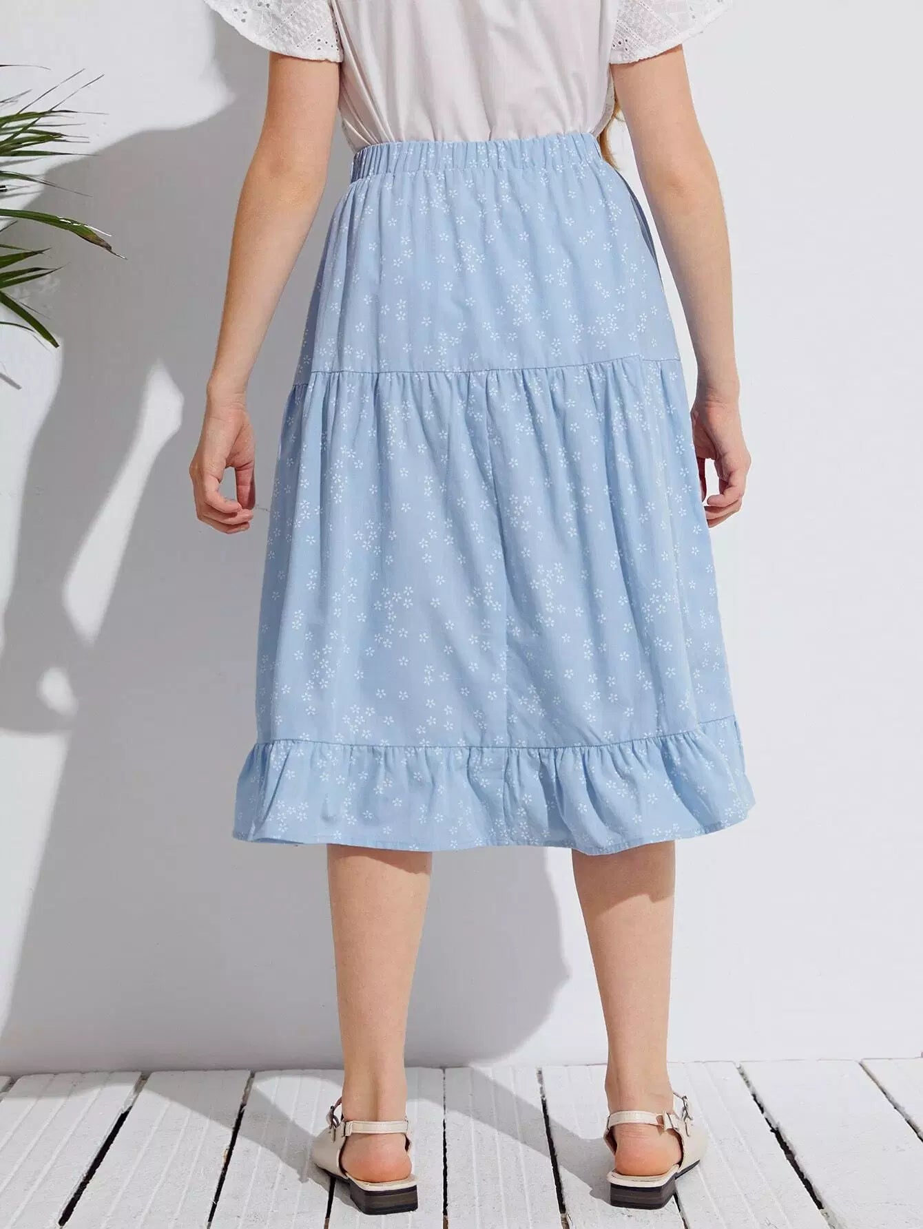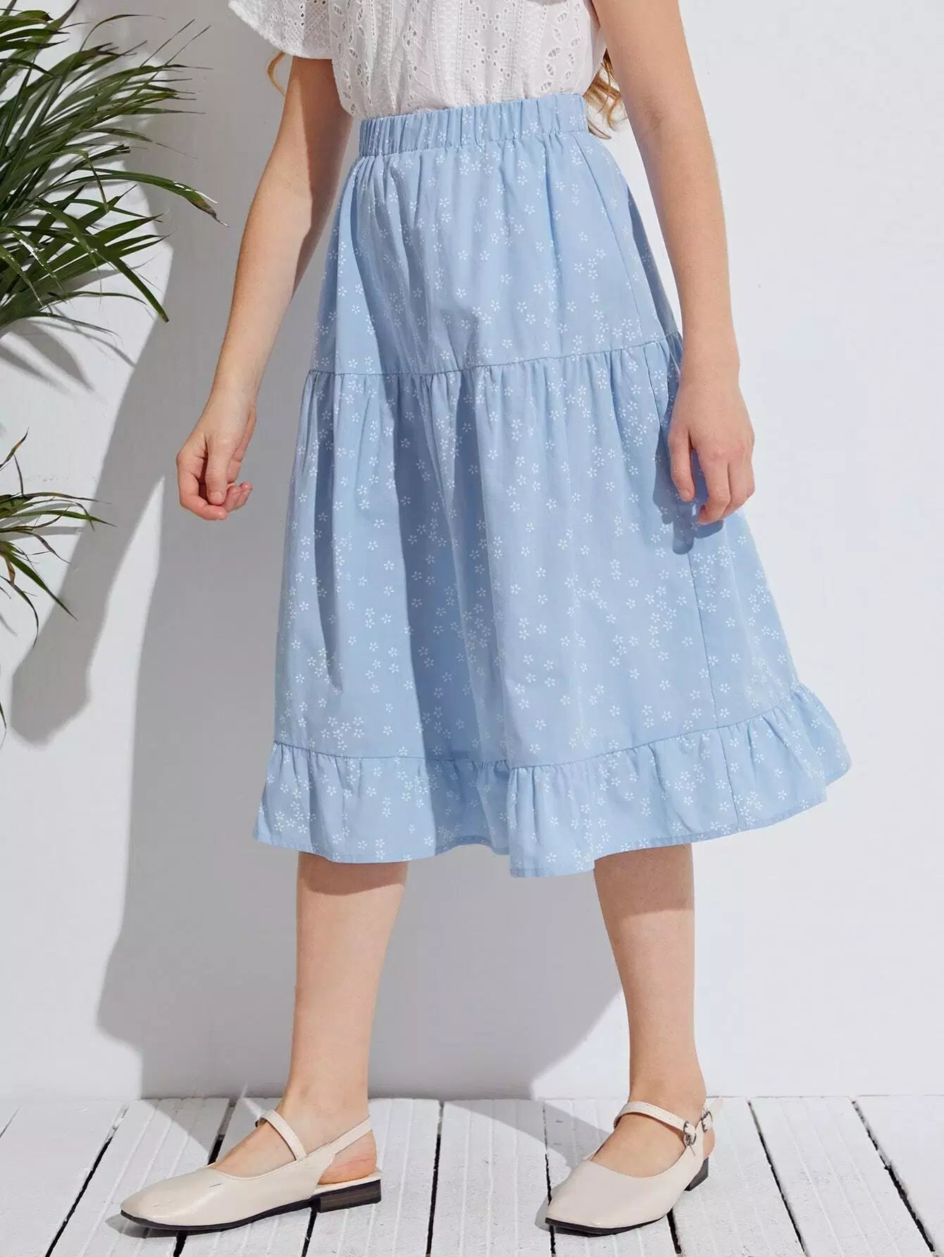 Girls Ruffle Hem Ditsy Floral Skirt