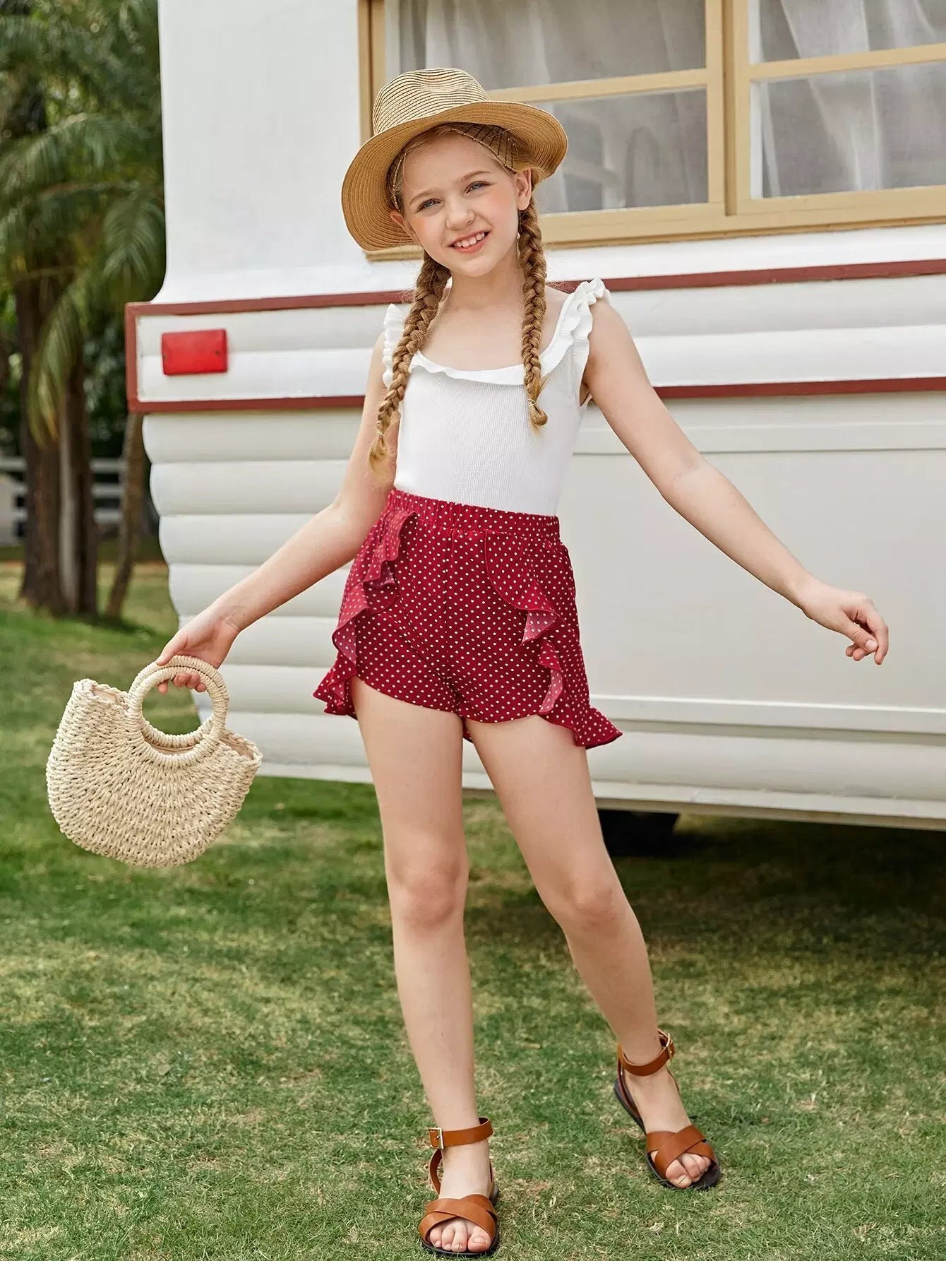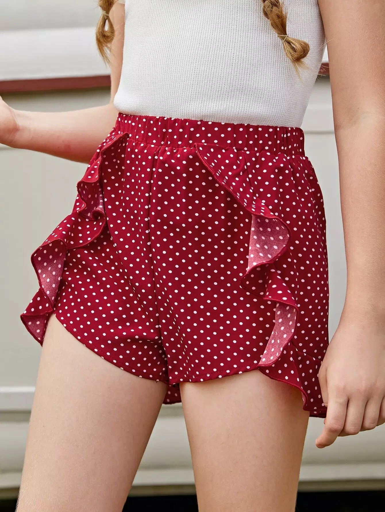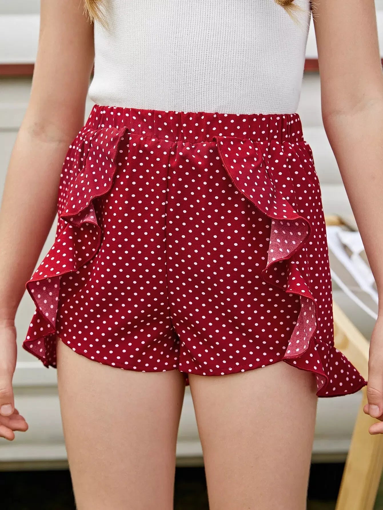Girls Ruffle Trim Polka Dot Shorts