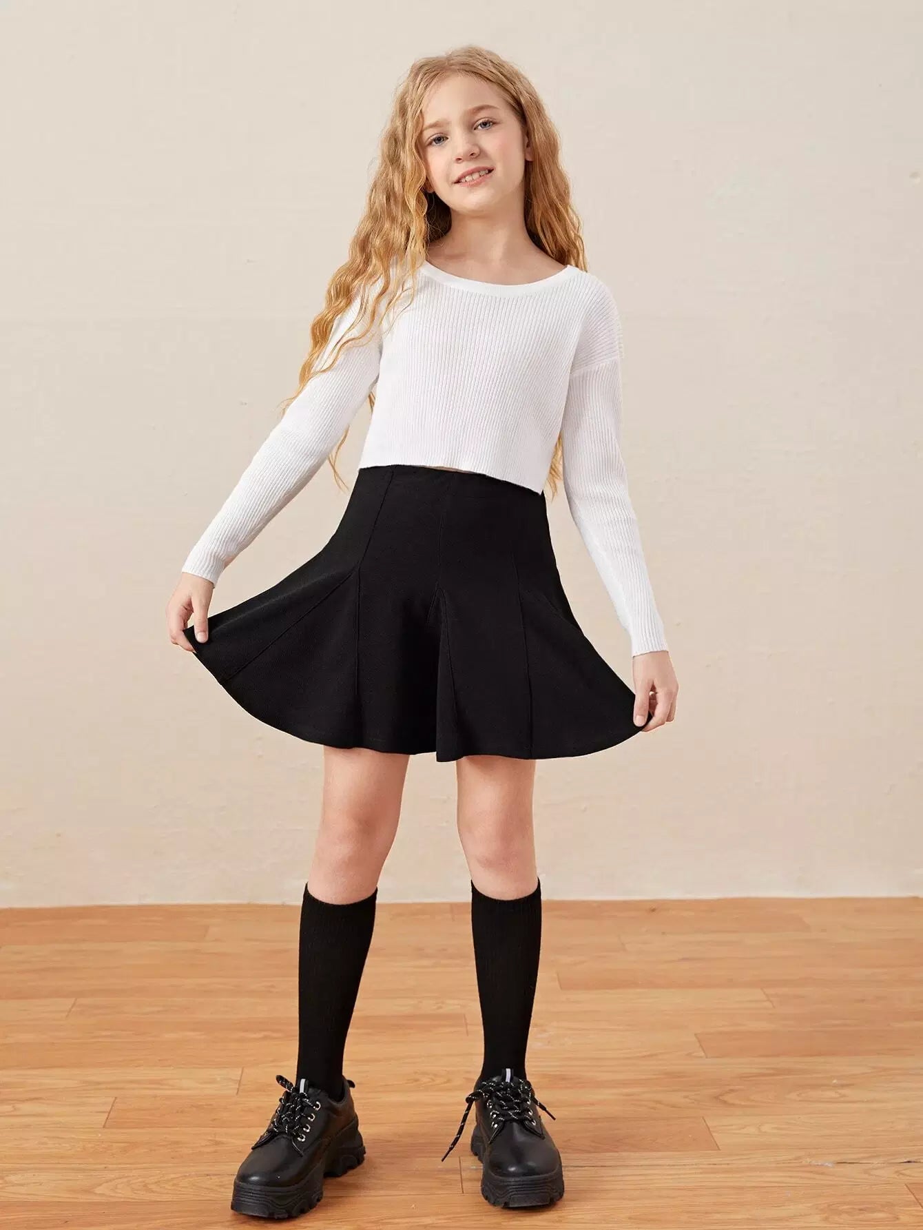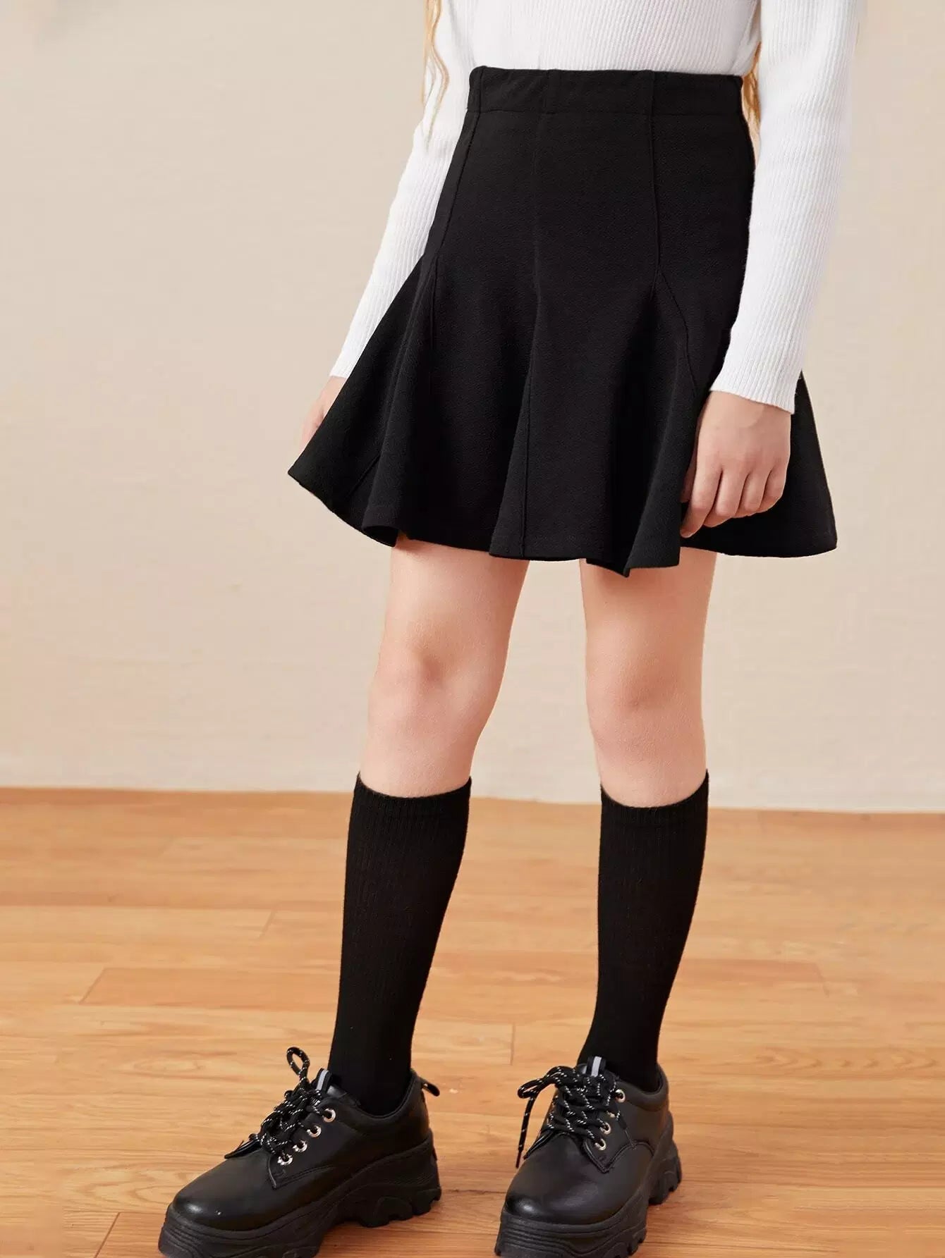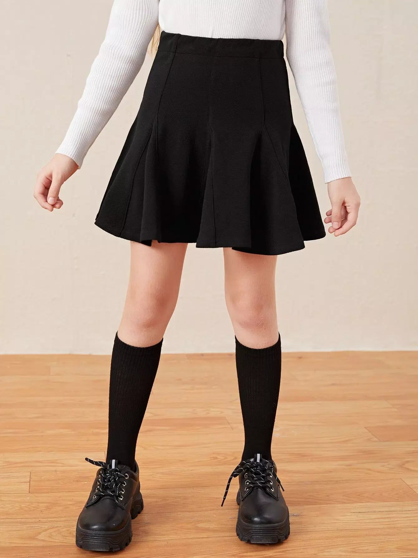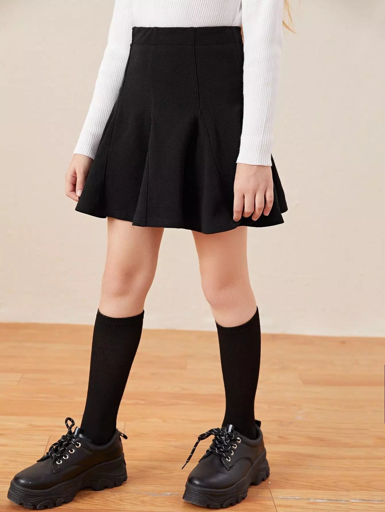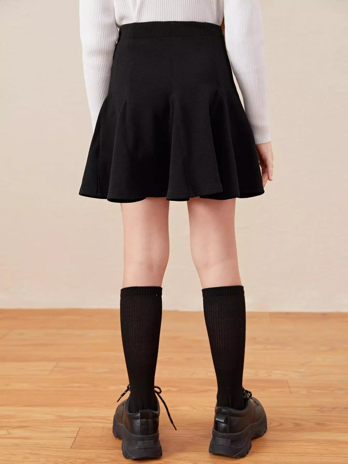 Girls Solid Plicated Hem Skirt