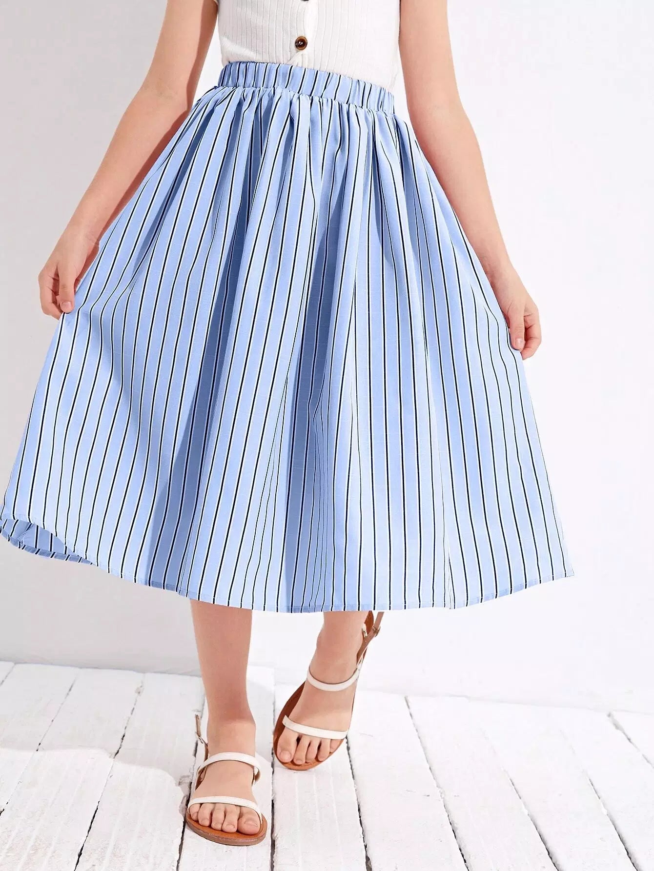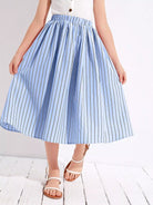 Girls Striped Elastic Waist Skirt