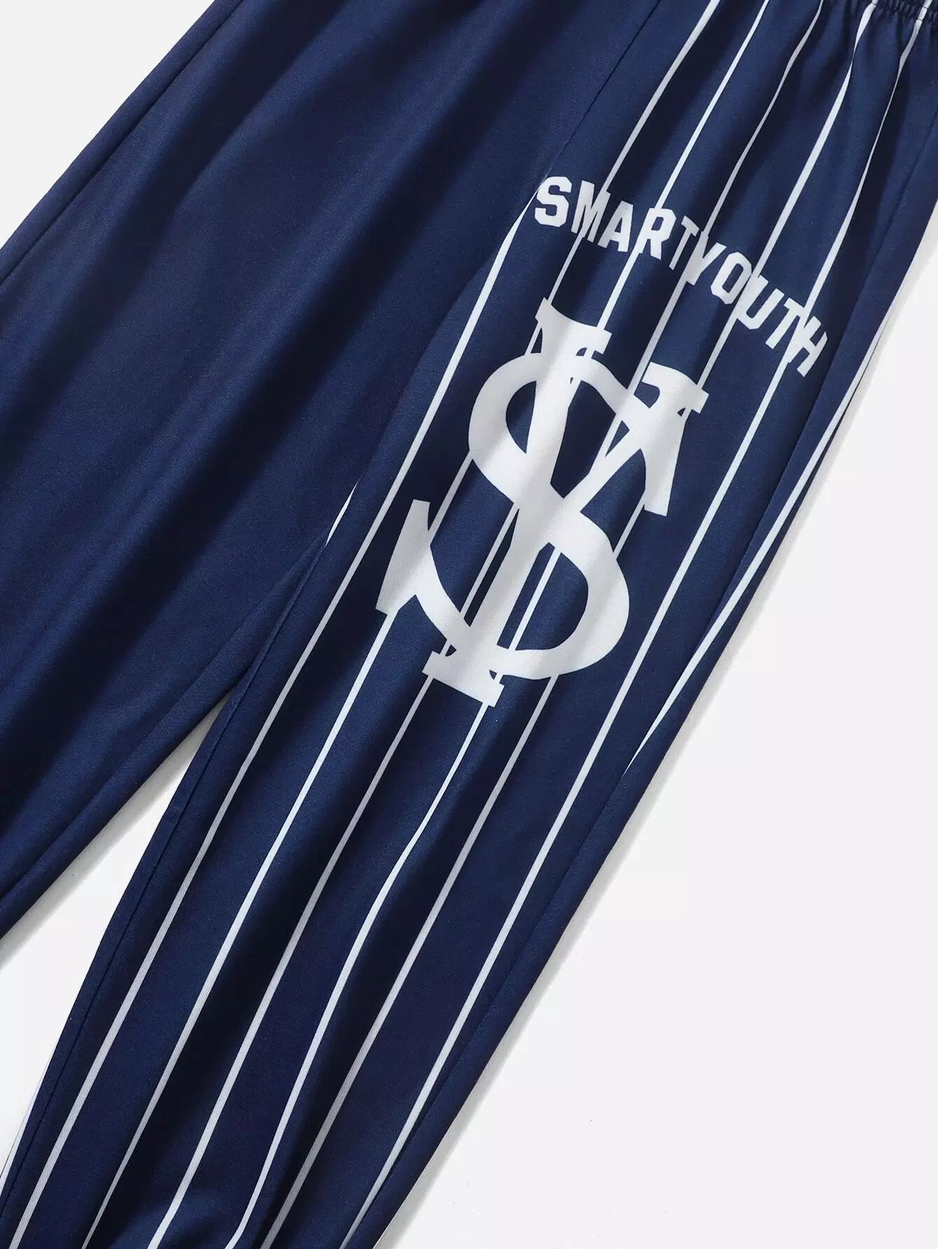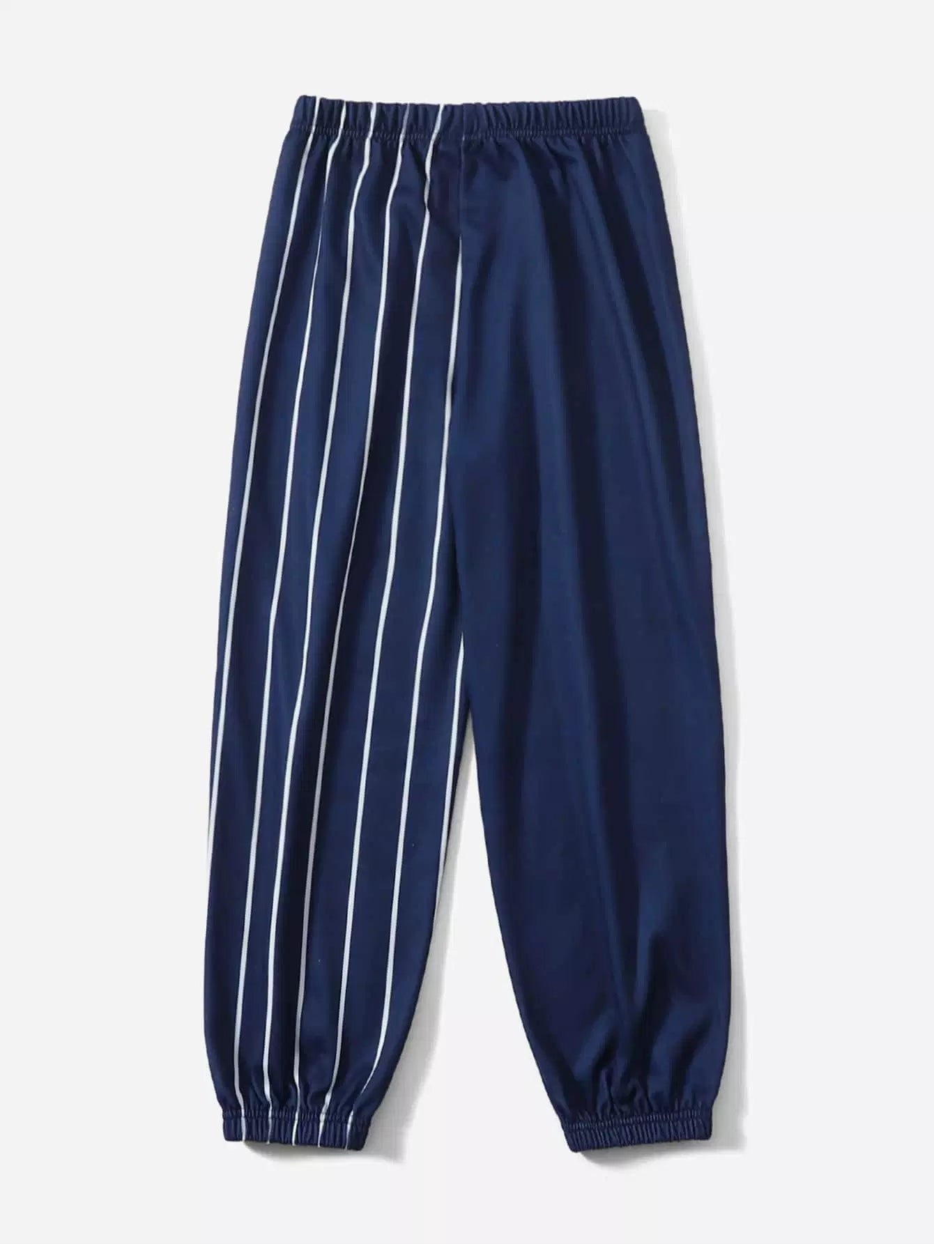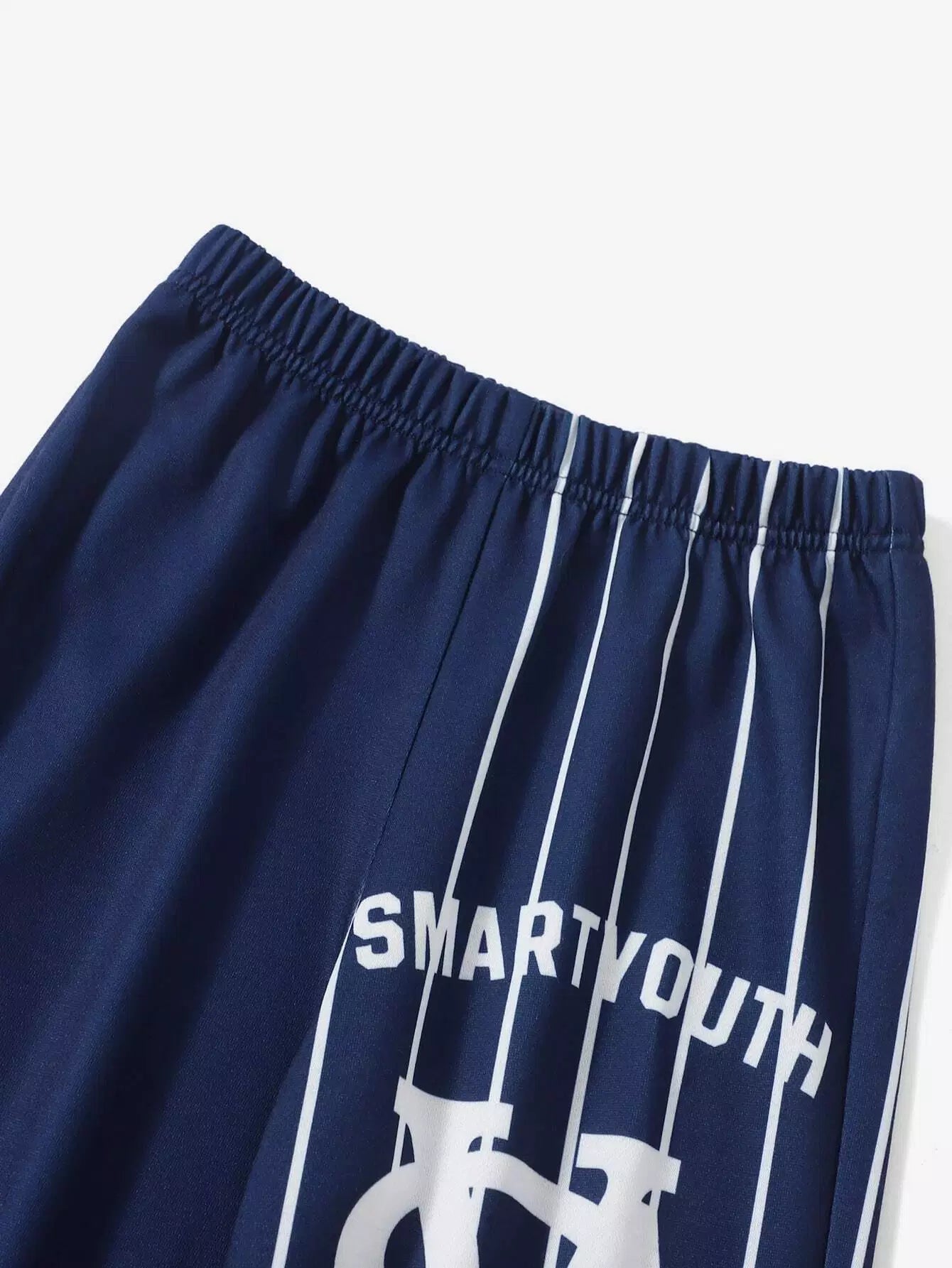 Girls Vertical Stripe & Letter Graphic Sweatpants
