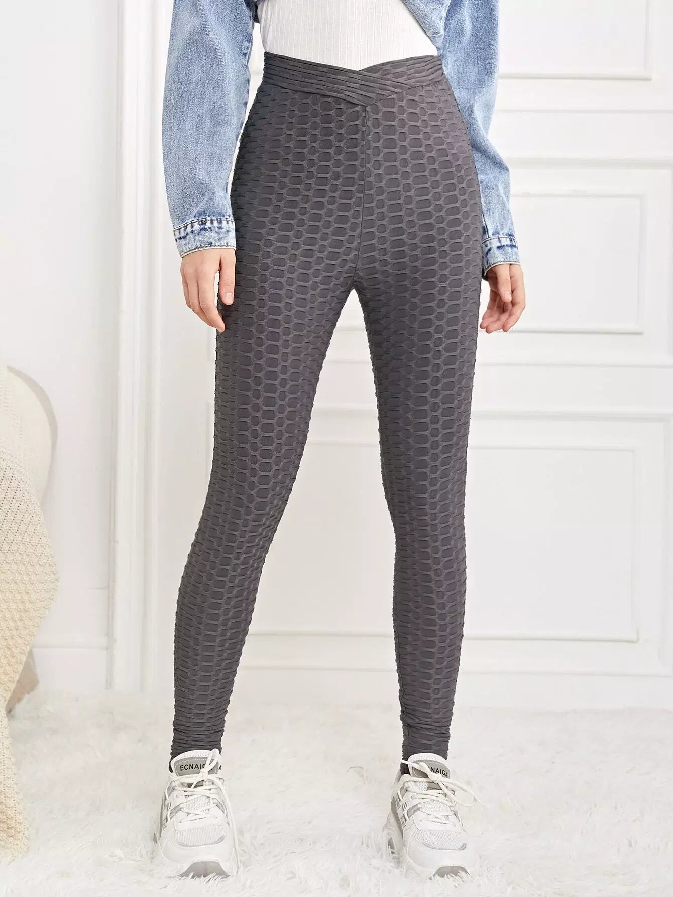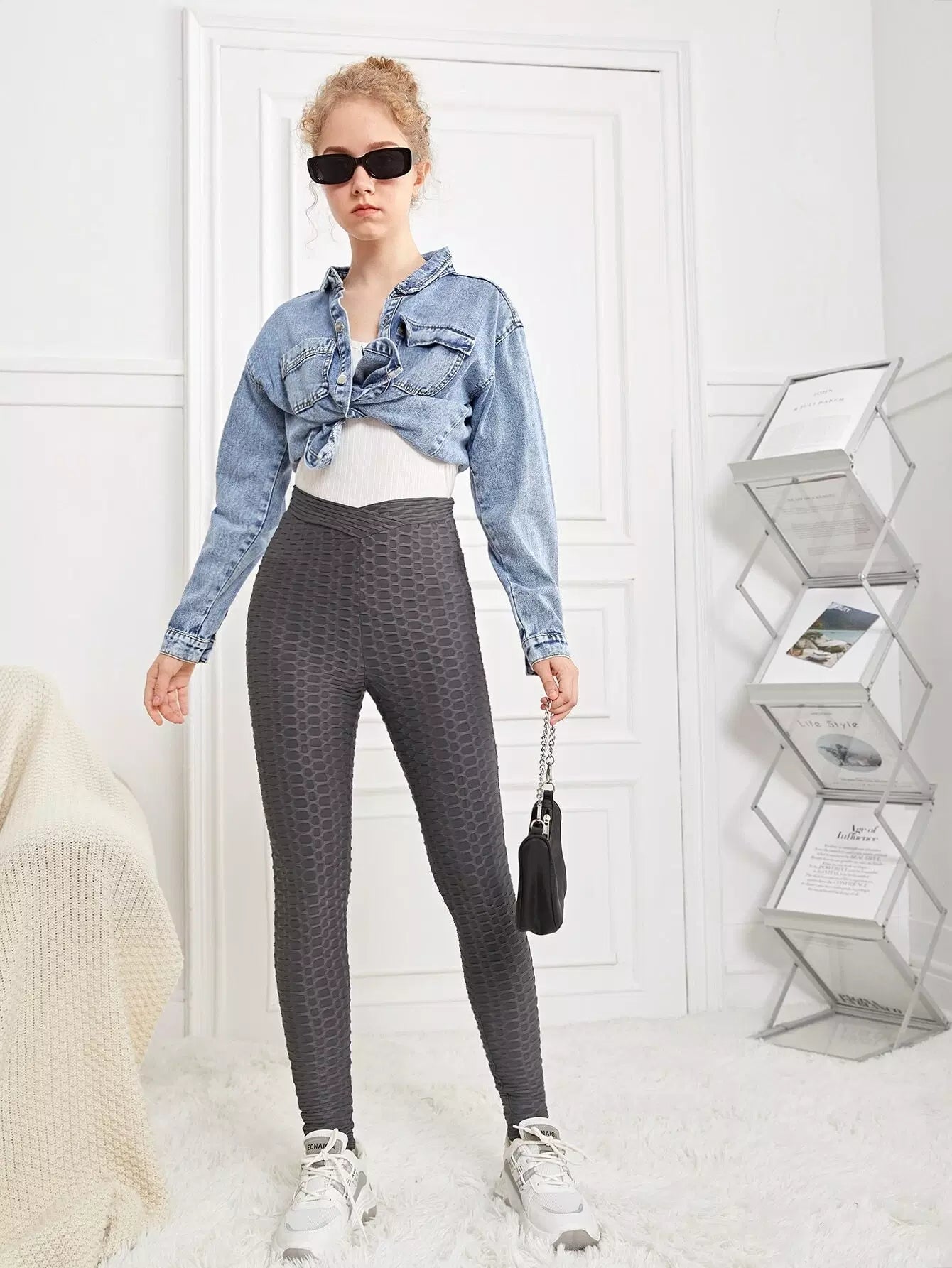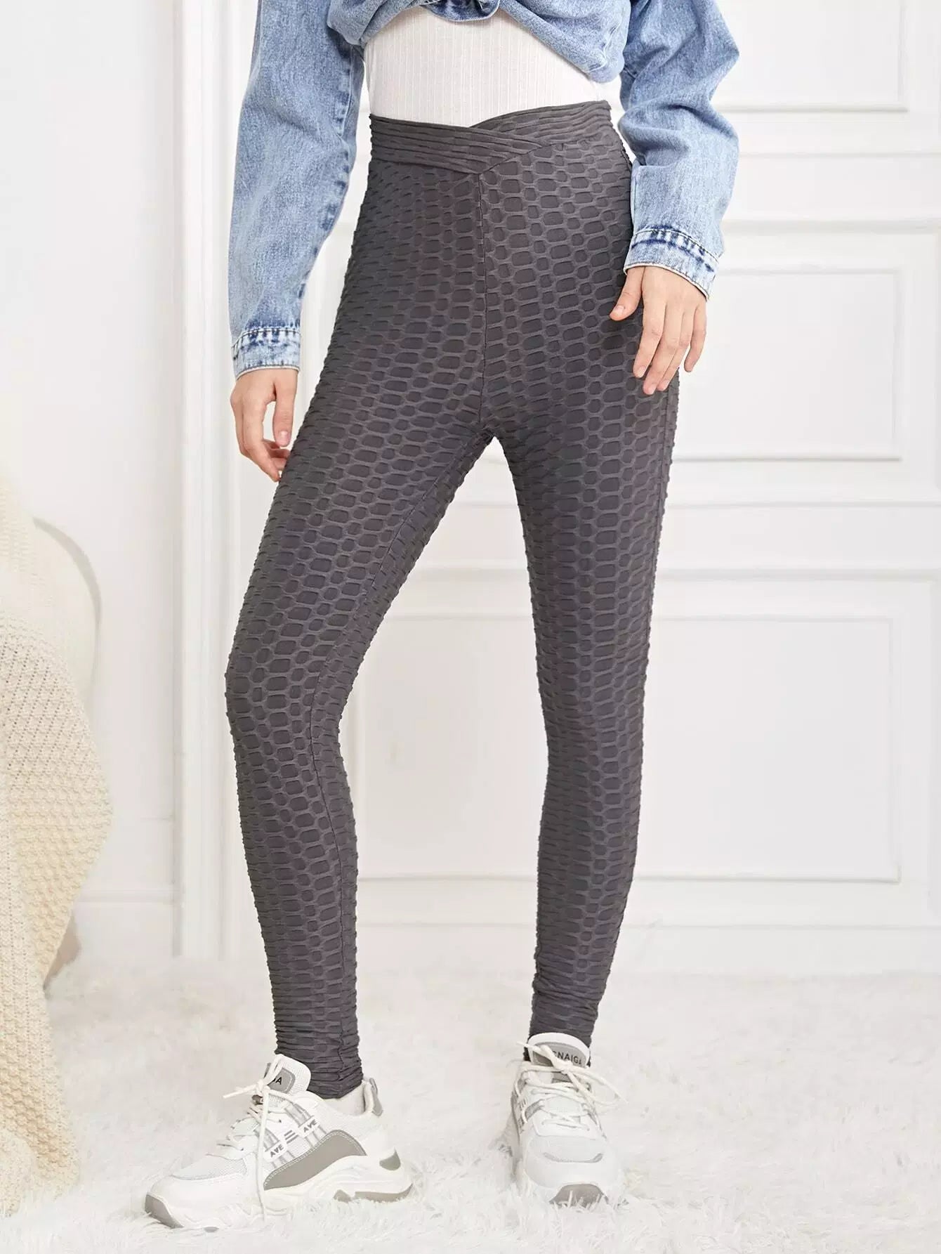 Teen Girls Overlap Waist Honeycomb Textured Leggings