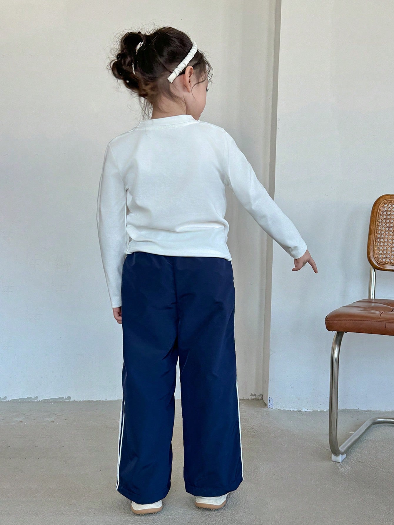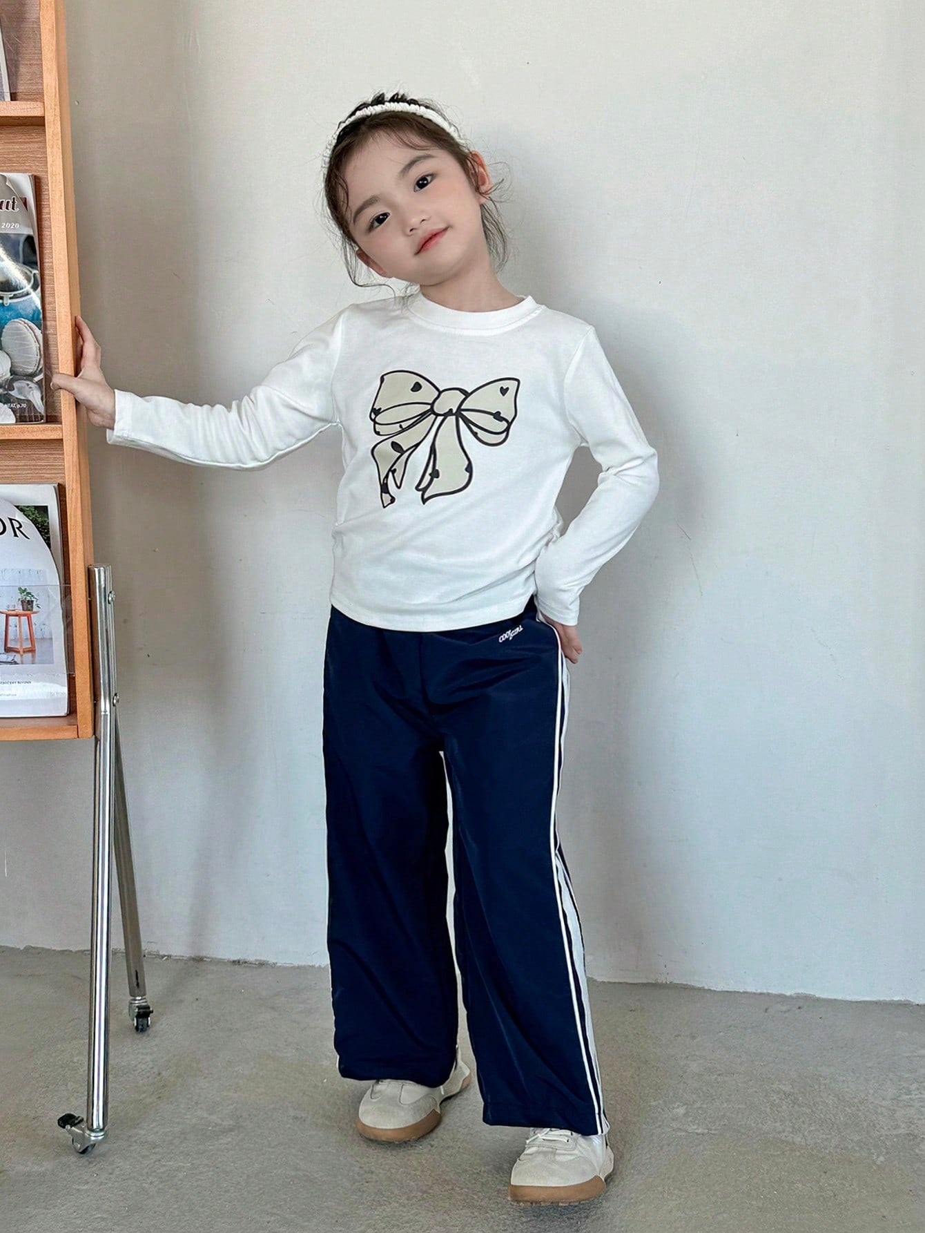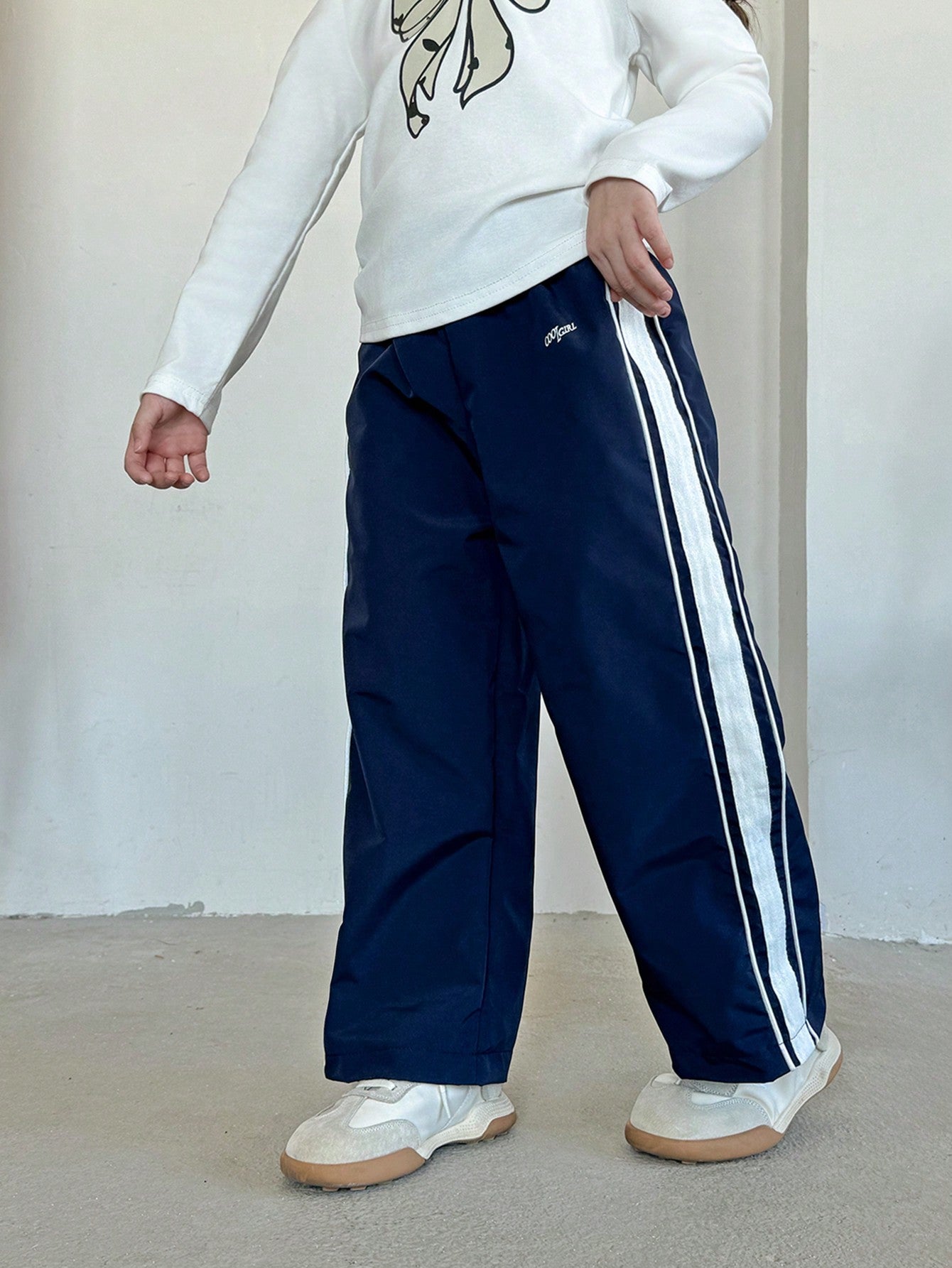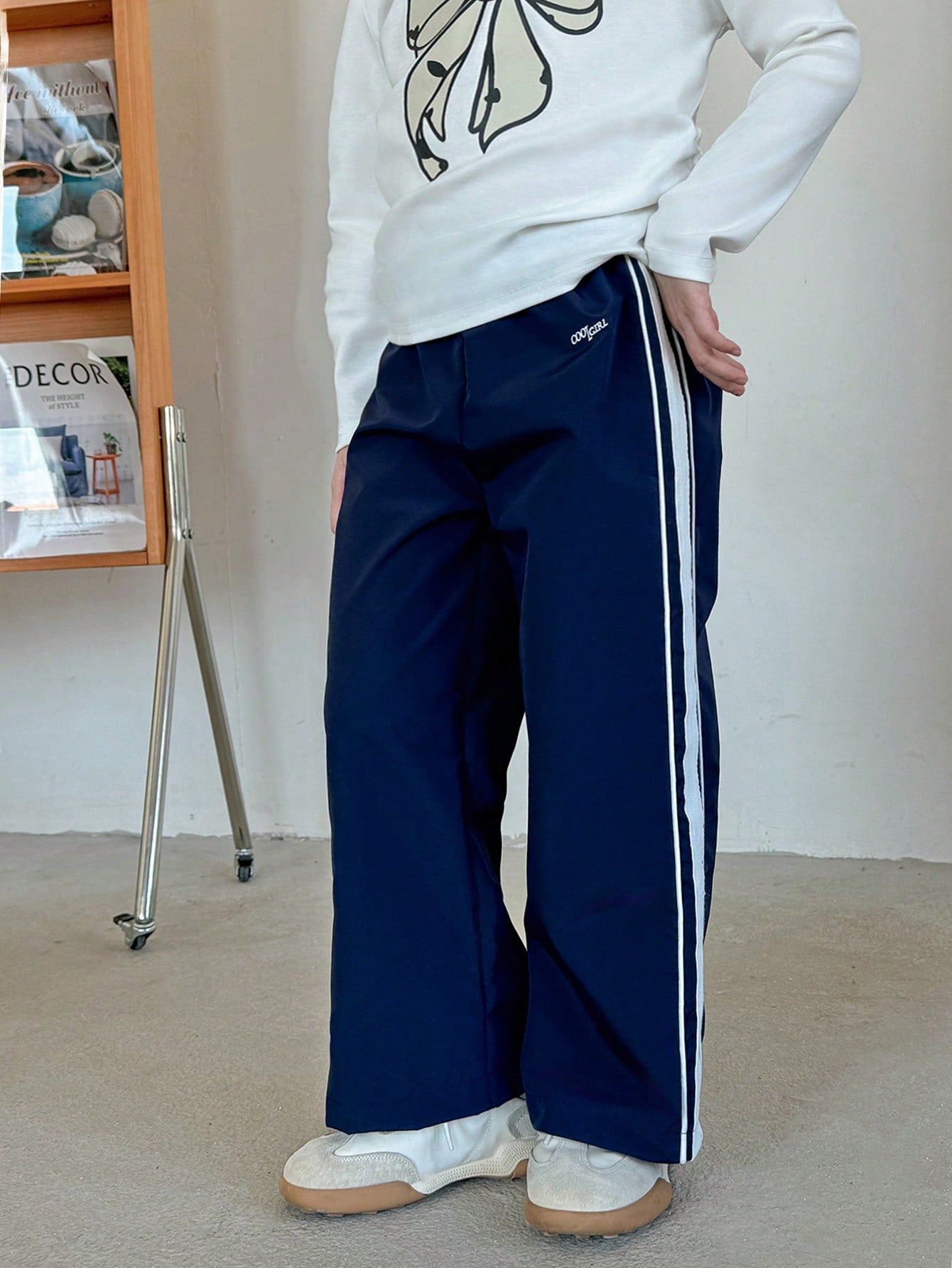 Young Girl Letter Print Striped Side Wide Leg Loose Casual Pants