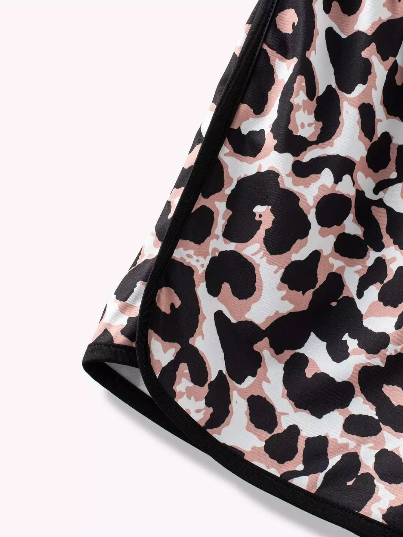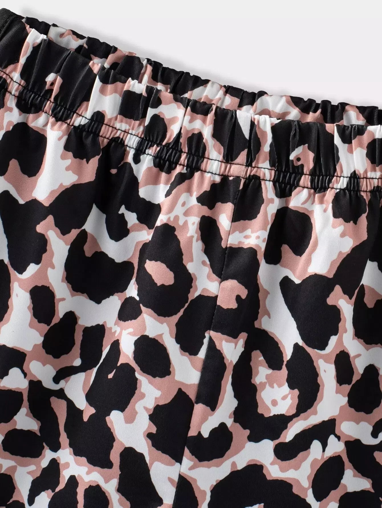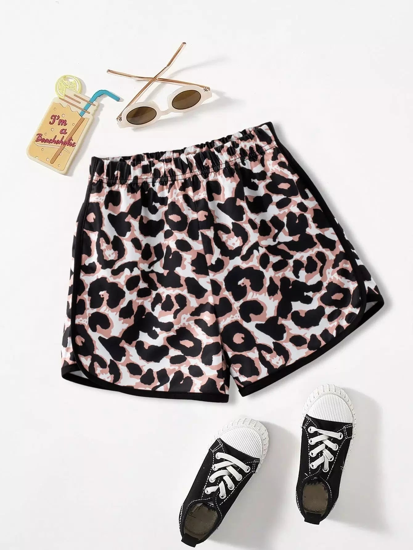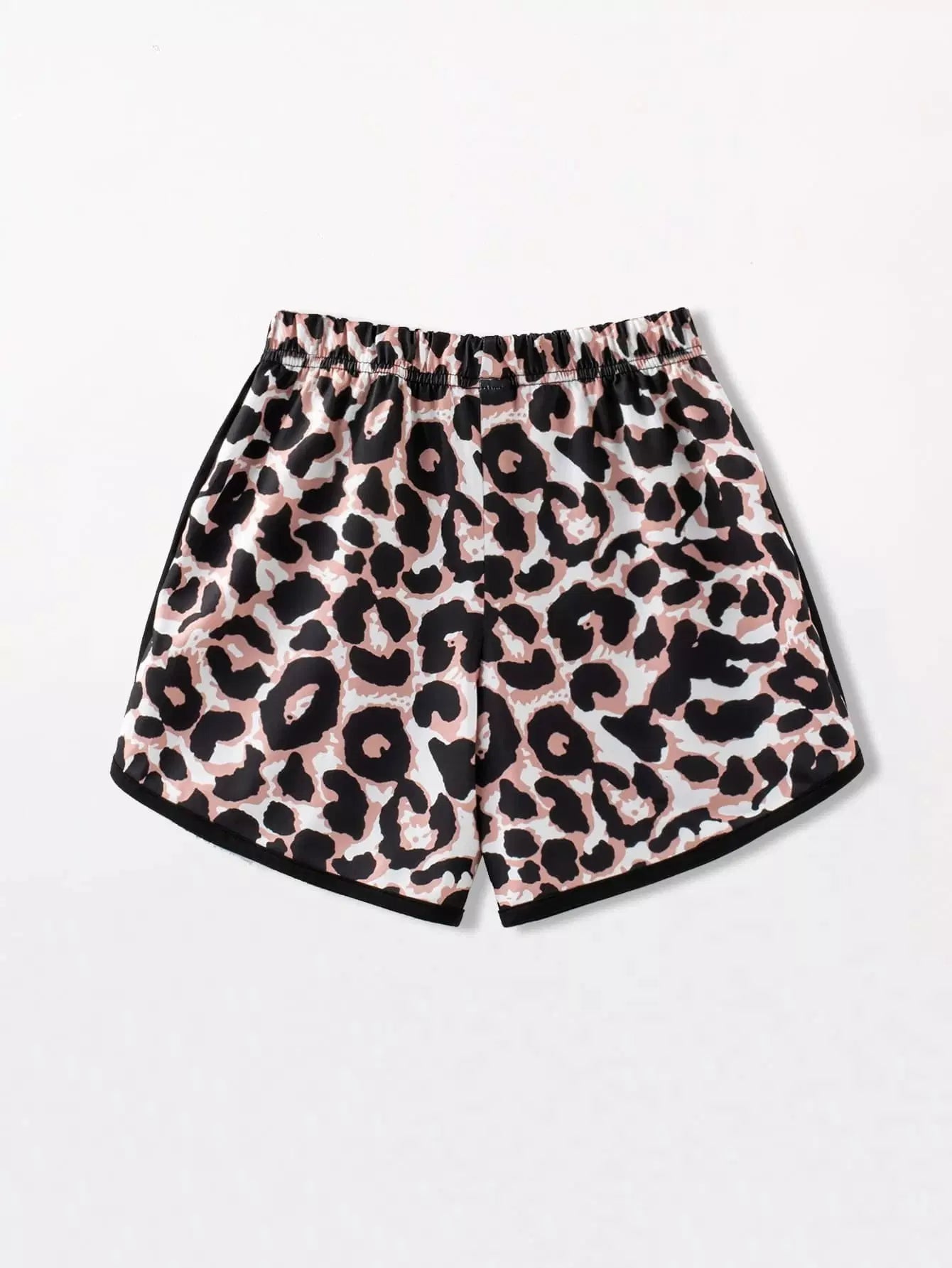 Kids - Girls Leopard Print Contrast Binding Shorts