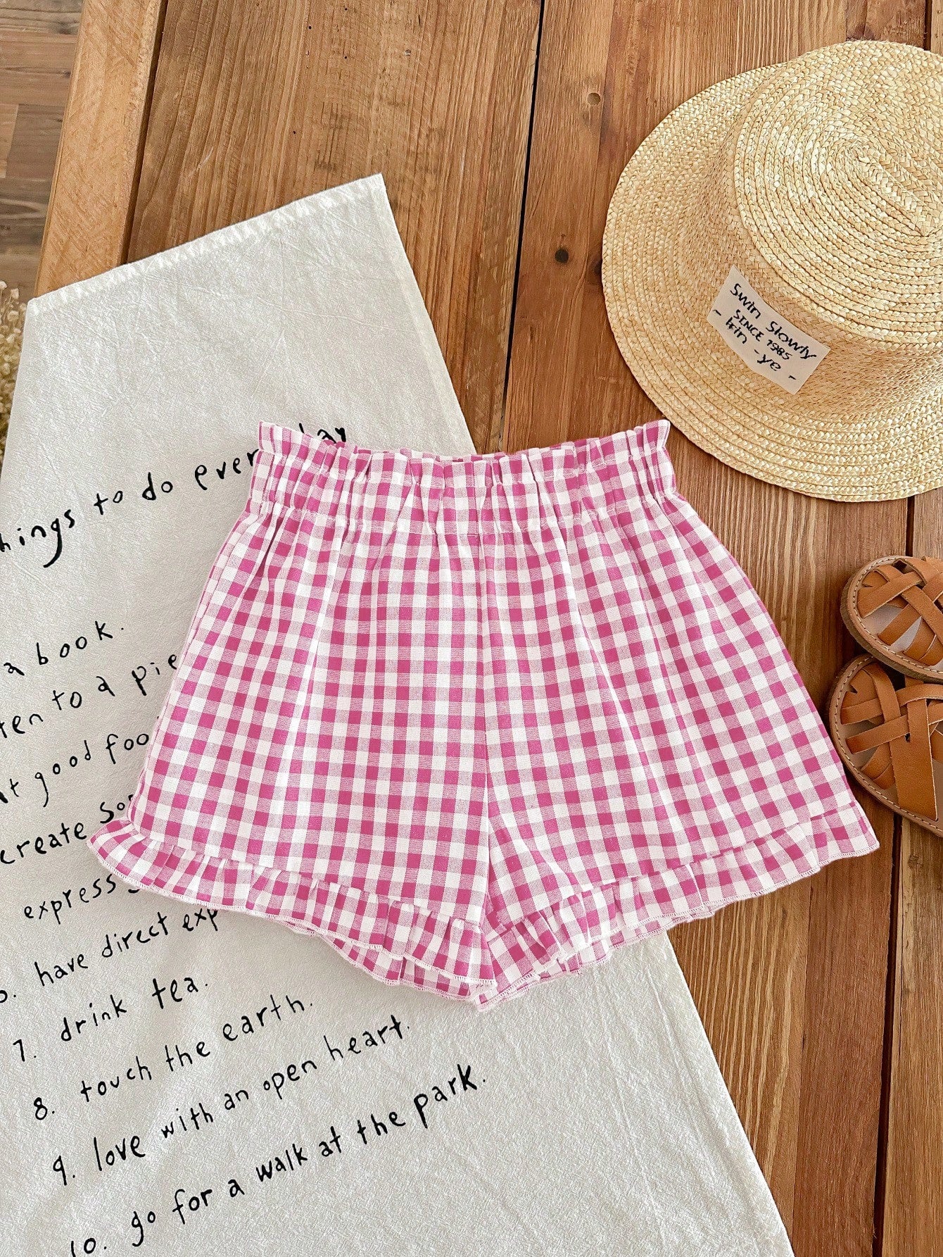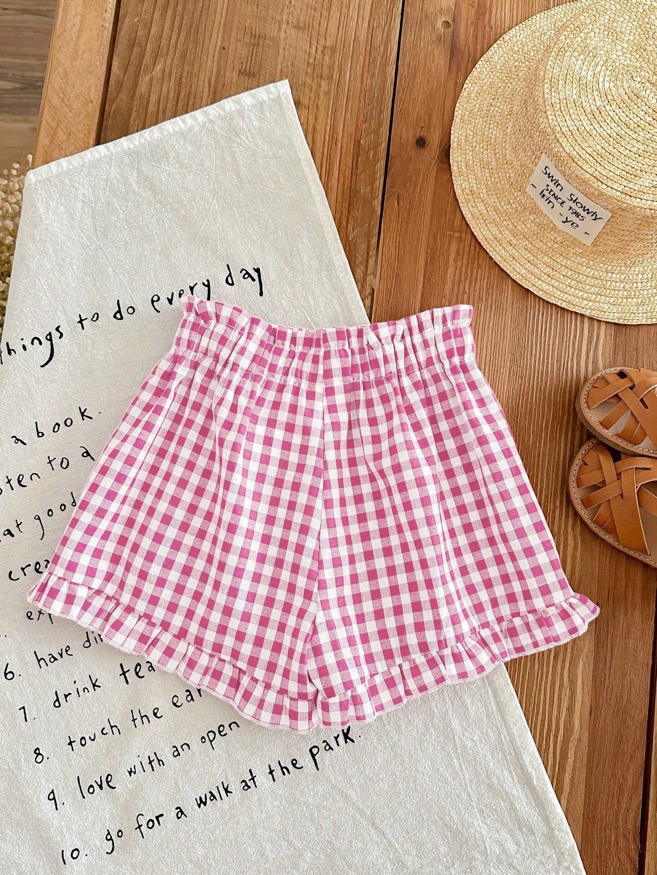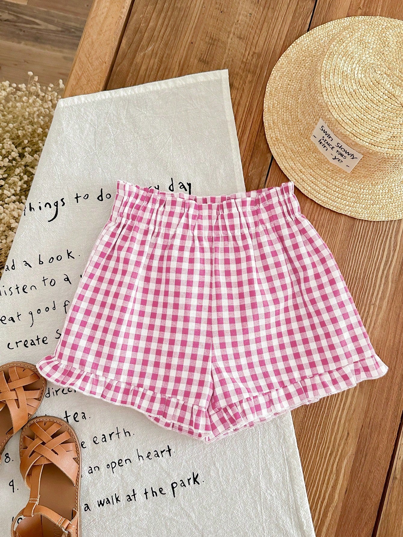 LMoss Kids LMoss Young Girl Young Girl's Loose Fit Casual Plaid Woven Shorts