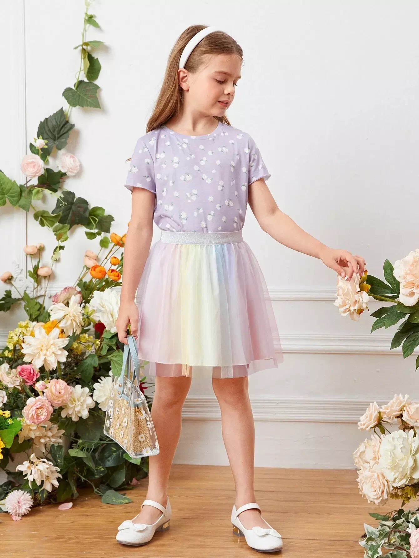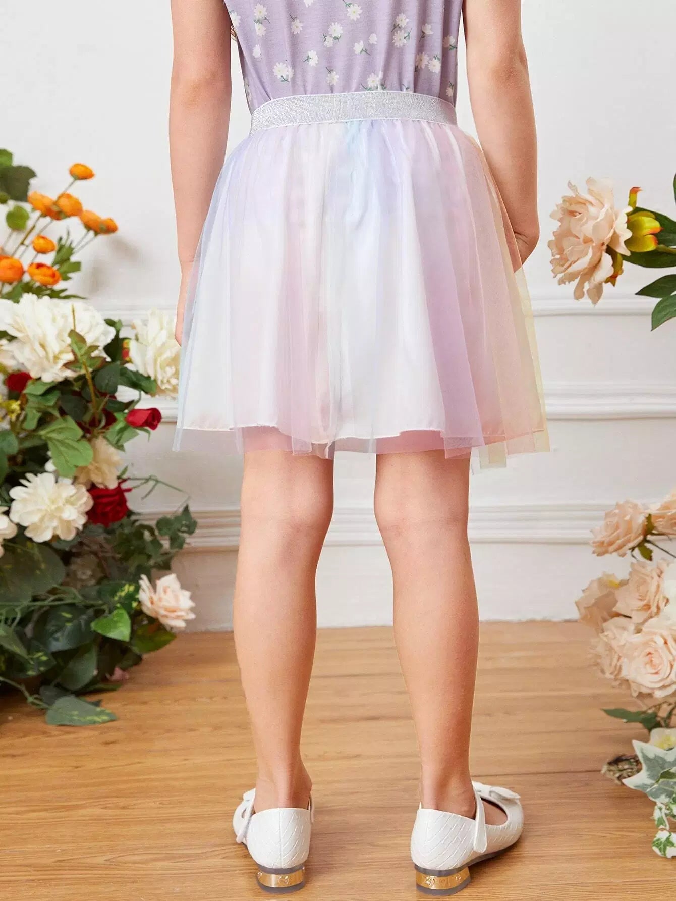 Girls Ombre Mesh Overlay Skirt